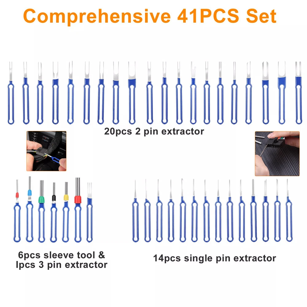 41Pcs Car Terminal Plug Removal Tool Wire Connectors Pin Extractor Kit with Bag