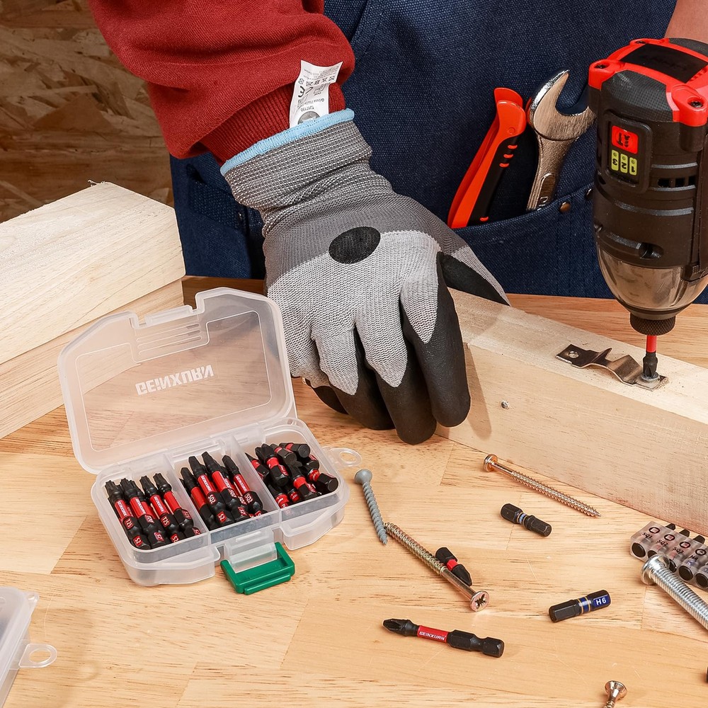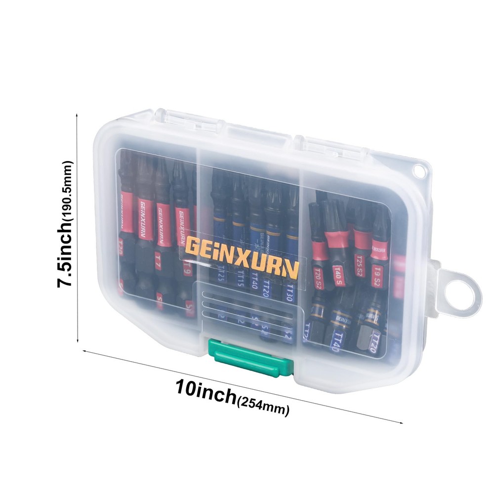 41Pieces Screwdriver Bit Set 1Inches Torx Bits (T7,T8,T9,T10,T15,T20,T25,T27,T30,T40); 1Inches Security Torx Bits (TT7,TT8,TT9,TT10,TT15,TT20,TT25,TT27,TT30,TT40); 2Inches Torx Bits (T7,T8,T9,T10,T15,T20,T25,T27,T30,T40); 2Inches Security Torx Bits (TT7,TT8,TT9,TT10,TT15,TT20,TT25,TT27,TT30,TT40); 1Pieces- 3Inches Impact Magnetic Screwdriver Bit Holder. Material: Advanced metallurgy hardened S2 alloy steel Shank: 1/4 in. hex Strong Magnetic Anti-impact and tough, great wear resistant. These impact tough bits are an impact rated line of screw driving bits and bit holders that have been enhanced to handled a new generation of higher torque impact drivers. Provide 10X longer bit life than standard impact bits. Impact Rated Screwdriver Bit Impact Shock Absorbent Zone stands up to punishment from high-torque impact drivers. Long-lasting engineered tips provide enhanced strength that can handled high-torque impact drivers, so it can tightening or loosening screws easier. TORX SCREWDRIVER BITS: 40 pieces T7-T40 multi star driver bits and 1Pc Bit holder with storage box, the box is customized for bits, you can take it easy to anywhere or hang it up when you don't use it IMPACT RATED BITS: Impact Shock Absorbent Zone stands up to impact drivers. It can be handled a new generation of higher torque impact drivers Quality Assurance: This batch of head made of S2 high quality steel material, it owns the features of high hardness and good toughness and resistance through strictly heat treatment, durable and suitable for any industrial use Precision Tips Head: Precision-engineered bit tips, deliver a better fit and less cam-out, each edge can accurately lock the screw, stabilizes without slipping and improves work efficiency. Avoid damaging the screw and screwdriver head Wide Range of Uses: Made to fit 1/4 In. hex impact drivers drill screw bit set is not only work with impact driver, but also magnetic screwdriver bit perfect for any regular drill, electric and hand screwdrivers, power drills, corded drills, cordless drills, cordless driver and more