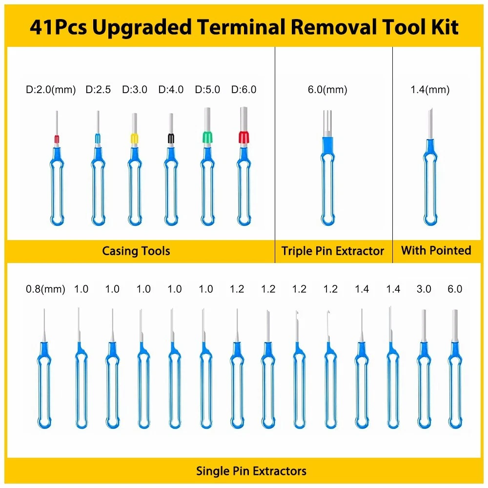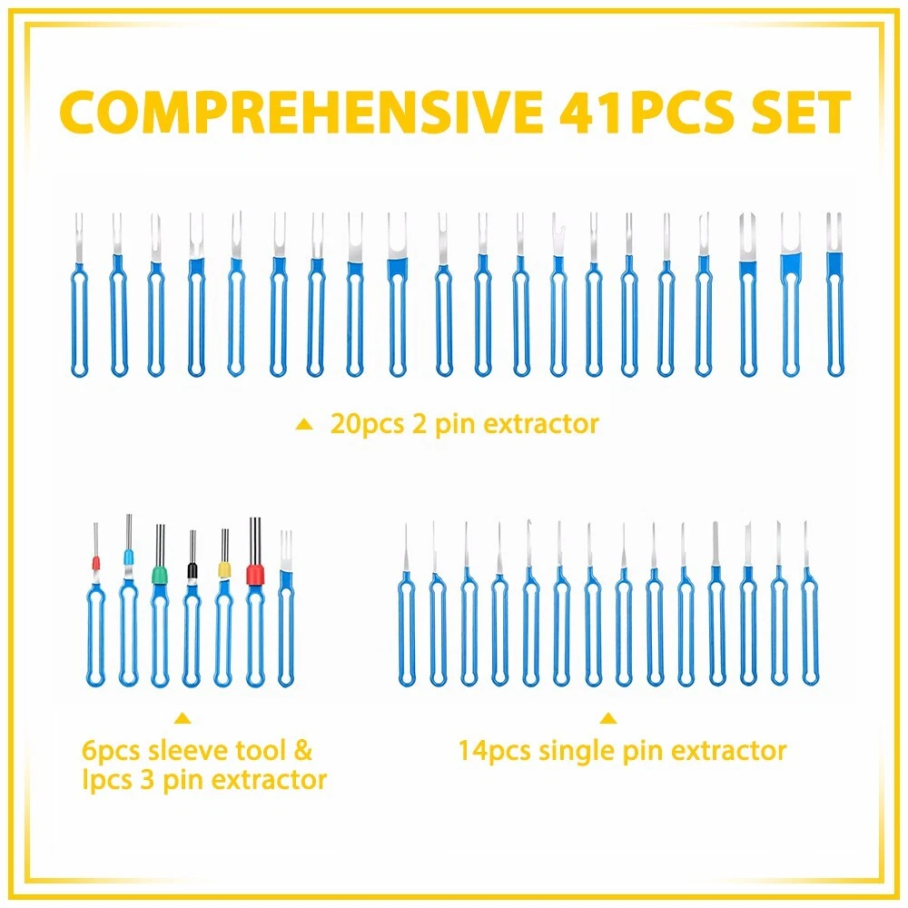 Fit for: Compatible with most connector terminals, our kit suits various applications—cars, home appliances, motorcycles, and more. Specifications: Product Material: Stainless steel 301+plastic Color: Blue ? Features: *High-quality Terminal Tool Made of high-quality stainless steel and durable plastic to ensure our long-term use without deformation. *Easy to Use The electric needle removal tool is easy to use, push and pull the terminal pin with the connector needle removal tool, you can effortlessly remove from the wire harness connector without causing any damage. *Portable 41X Puller Ejector Set Pin Wire Car Terminal Removal Tool with Protective Bag Fit for: Compatible with most connector terminals, our kit suits various applications—cars, home appliances, motorcycles, and more. Specifications: Product Material: Stainless steel 301+plastic Color: Blue ? Features: *High-quality Terminal Tool Made of high-quality stainless steel and durable plastic to ensure our long-term use without deformation. *Easy to Use The electric needle removal tool is easy to use, push and pull the terminal pin with the connector needle removal tool, you can effortlessly remove from the wire harness connector without causing any damage. *Portable The pin removal tool set includes a protective bag for easy storage and portability. Small and lightweight, it is suitable for use anytime,anywhere. *Wide Application Suitable for various connector terminals in automobiles, motorcycles and electronic vehicles, the terminal ejection kit is widely used and reliable. *Quality Test All products were tested for performance and to ensure the accurate parameter for your vehicle. Packaging Include: 41 x Terminal Removal Tools 1 x Protective Bag Item Specifics Brand : Unbranded Universal Fitment : Yes Product Material : Stainless steel 301 plastic Color : Blue Type : Terminal Removal Tool Design : Long-handle design Manufacturer Warranty : 1 Year Packaging Include 1 : 41 x Terminal Removal Tools Packaging Include 2 : 1 x Protective Bag Features 1 : High-quality Terminal Tool Features 2 : Easy to Use Features 3 : Portable Features 4 : Wide Application Features 5 : Quality Test Fit for 1 : Compatible with most connector terminals, Fit for 2 : cars, home appliances, motorcycles, and more. Payment (1) Instant PayPal payment is the preferred method of payment. (2) We also accept payment via PayPal, DebitCard, Visa, MasterCard, Discover. (3) We will only ship to the confirmed PayPal shipping address given with the payment. (4) If you want to ship to other address, please change your PayPal shipping address before you make payment. (5) To avoid initiating an unpaid item claim, please pay within 7 days. Shipping (1) We will ship your item(s) within 24 hours. (2) We ship this item to US usually via USPS first class mail. It usually takes 3-6 working days to deliver. Returns (1) We offer free return & money back guarantee. If you are not satisfied with your purchase for any reasons, you can return the item for refund or replacement/exchange. All returns must include the original packaging. (Please refer to our return policy for details.) (2) If you don't return goods within 60 days from date of purchase, your right to cancel will be revoked. Any items damaged because of incorrect installation will not be refunded. Please contact us for return or troubleshooting help prior to returning any products. (3) Unauthorized reselling of AUXITO products is strictly prohibited and we can't honor the warranty if purchasing from the unauthorized reseller. Contact Us [Our office hours are MONDAY - Saturday 9:00PM - 6:00PM PST, but we will response you once we get your message .There will be some delay on respons if you send message or E-Mail on Sundy.] (1).Negative feedback will not help resolve any problems you have, please contact us via eBay messages before leaving negative feedback, our customer service will make best effort to help you with the issues. (2).We maintain high standards of excellenceand strive for 100% customer satisfaction! Feedback is very important to us. We request that you contact us immediately BEFORE you give us neutral or negative feedback, so that we can satisfactorily address your concerns. FAQ Why swith to LED? LEDs not only give your vehicle a clean, modern look but, with proper use, will outlast any halogen bulb and HID bulb! Low energy draw, high lumen output, and instant on/off LED technology out shines stock bulbs in every way. Which bulbs are used in my vehicle? Check Sylvania automotive lamp replacemnt guide, you can select the year, make, and model of your vehicle, then select the application you want to replace or upgrade from stock. What does CAN Bus mean? CAN Bus means Controller Area Network Bus. This system monitors your vehicle and reports operating conditions. CAN Bus systems are commonly found in European vehicles such as BMW, Audi, Mercedes, Volkswagen, Porsche, and in many American vehicles. While most late model American vehicles have CAN Bus systems, it is always good to check with your vehicle dealer to see which system your vehicle has before purchasing electrical products. When do you need Warning Canceller? Some vehicles with cmplex internal computers(such as Audi,BMW,Jaguar,Mercedes,etc.) might report on-dash errors or flickering on the headlights. The warning canceller fixes the dashboard warning and flickering effect. Bulb Out Dashboard Error: On some vehicles, the dashboard will report as if you have a headlight bulb missing or burnt. It does not affect the headlights functioning, but the light on-dash will be on. The warning canceller fixes the issue. Flickering Issue: This happens when your vehicle does not recognize the new headlights installed. When turning the headlights on, the vehicle's computer does not understand the signal back from the headlights hence thinking they are still off. This triggers the headlight flickering effect. The warning canceller solves this issue. LED Advantag