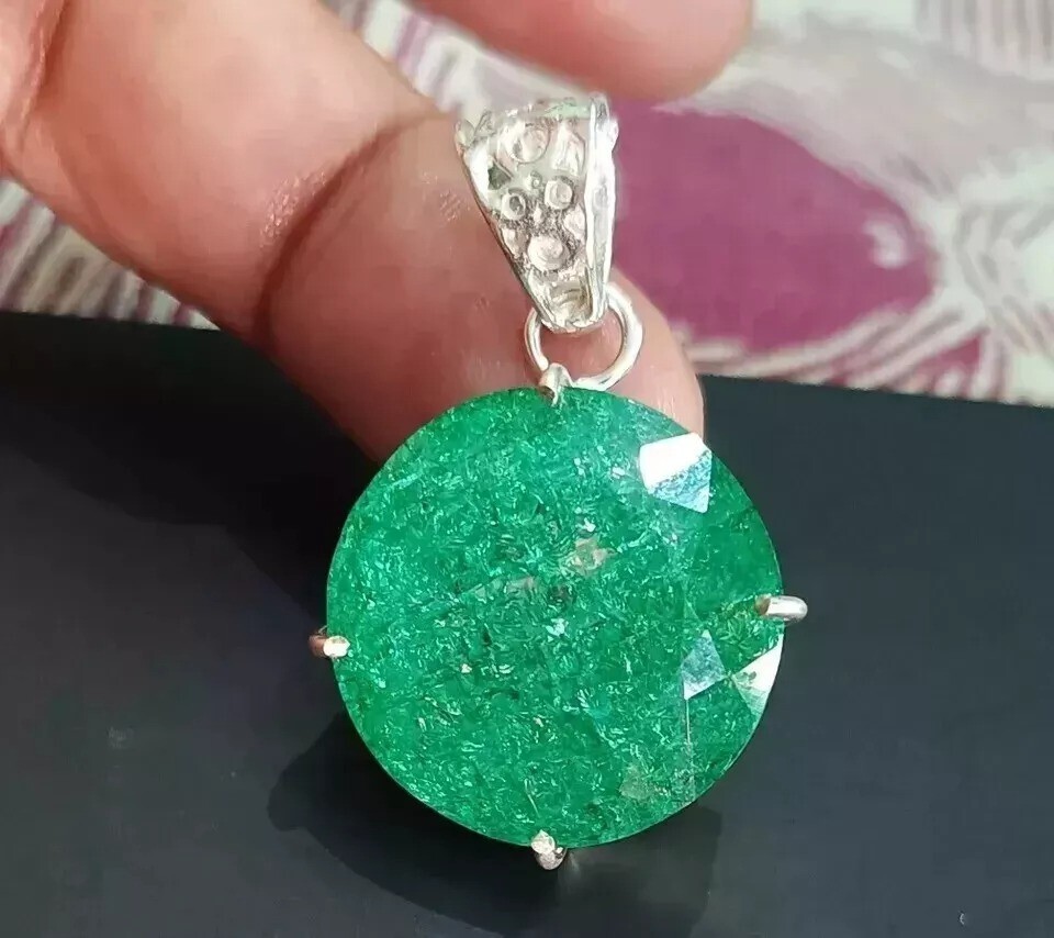 96 Ct+ Certified Natural Topaz 925 Solid Silver Round Pendant Loose Gemstone