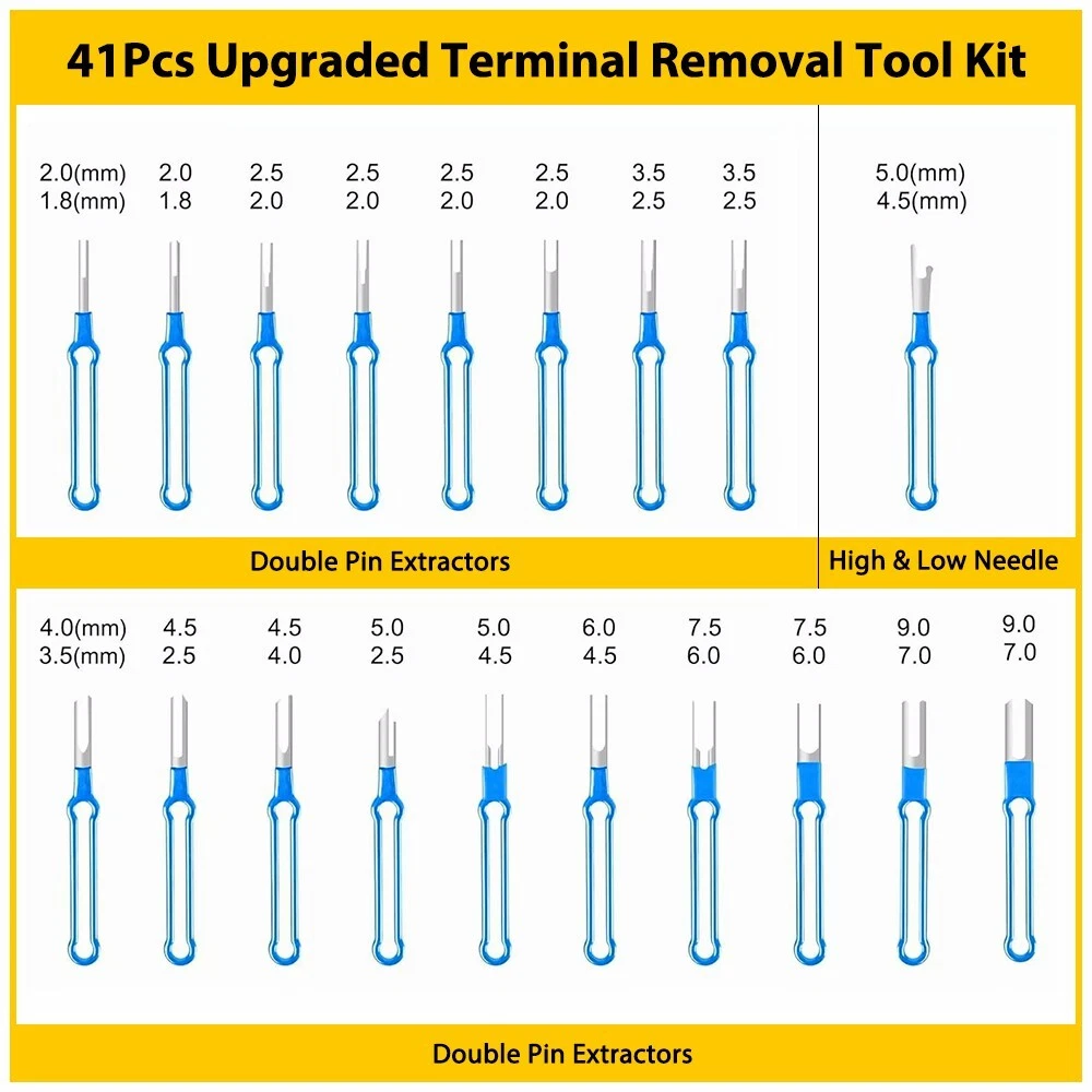 Fit for: Compatible with most connector terminals, our kit suits various applications—cars, home appliances, motorcycles, and more. Specifications: Product Material: Stainless steel 301+plastic Color: Blue ? Features: *High-quality Terminal Tool Made of high-quality stainless steel and durable plastic to ensure our long-term use without deformation. *Easy to Use The electric needle removal tool is easy to use, push and pull the terminal pin with the connector needle removal tool, you can effortlessly remove from the wire harness connector without causing any damage. *Portable 41pcs Puller Ejector Set Pin Wire Car Terminal Removal Tool with Protective Bag Fit for: Compatible with most connector terminals, our kit suits various applications—cars, home appliances, motorcycles, and more. Specifications: Product Material: Stainless steel 301+plastic Color: Blue ? Features: *High-quality Terminal Tool Made of high-quality stainless steel and durable plastic to ensure our long-term use without deformation. *Easy to Use The electric needle removal tool is easy to use, push and pull the terminal pin with the connector needle removal tool, you can effortlessly remove from the wire harness connector without causing any damage. *Portable The pin removal tool set includes a protective bag for easy storage and portability. Small and lightweight, it is suitable for use anytime,anywhere. *Wide Application Suitable for various connector terminals in automobiles, motorcycles and electronic vehicles, the terminal ejection kit is widely used and reliable. *Quality Test All products were tested for performance and to ensure the accurate parameter for your vehicle. Packaging Include: 41 x Terminal Removal Tools 1 x Protective Bag Item Specifics Brand : Unbranded Universal Fitment : Yes Product Material : Stainless steel 301 plastic Color : Blue Type : Terminal Removal Tool Design : Long-handle design Manufacturer Warranty : 1 Year Packaging Include 1 : 41 x Terminal Removal Tools Packaging Include 2 : 1 x Protective Bag Features 1 : High-quality Terminal Tool Features 2 : Easy to Use Features 3 : Portable Features 4 : Wide Application Features 5 : Quality Test Fit for 1 : Compatible with most connector terminals, Fit for 2 : cars, home appliances, motorcycles, and more. Payment (1) Instant PayPal payment is the preferred method of payment. (2) We also accept payment via PayPal, DebitCard, Visa, MasterCard, Discover. (3) We will only ship to the confirmed PayPal shipping address given with the payment. (4) If you want to ship to other address, please change your PayPal shipping address before you make payment. (5) To avoid initiating an unpaid item claim, please pay within 7 days. Shipping (1) We will ship your item(s) within 24 hours. (2) We ship this item to US usually via USPS first class mail. It usually takes 3-6 working days to deliver. Returns (1) We offer free return & money back guarantee. If you are not satisfied with your purchase for any reasons, you can return the item for refund or replacement/exchange. All returns must include the original packaging. (Please refer to our return policy for details.) (2) If you don't return goods within 60 days from date of purchase, your right to cancel will be revoked. Any items damaged because of incorrect installation will not be refunded. Please contact us for return or troubleshooting help prior to returning any products. (3) Unauthorized reselling of AUXITO products is strictly prohibited and we can't honor the warranty if purchasing from the unauthorized reseller. Contact Us [Our office hours are MONDAY - Saturday 9:00PM - 6:00PM PST, but we will response you once we get your message .There will be some delay on respons if you send message or E-Mail on Sundy.] (1).Negative feedback will not help resolve any problems you have, please contact us via eBay messages before leaving negative feedback, our customer service will make best effort to help you with the issues. (2).We maintain high standards of excellenceand strive for 100% customer satisfaction! Feedback is very important to us. We request that you contact us immediately BEFORE you give us neutral or negative feedback, so that we can satisfactorily address your concerns. FAQ Why swith to LED? LEDs not only give your vehicle a clean, modern look but, with proper use, will outlast any halogen bulb and HID bulb! Low energy draw, high lumen output, and instant on/off LED technology out shines stock bulbs in every way. Which bulbs are used in my vehicle? Check Sylvania automotive lamp replacemnt guide, you can select the year, make, and model of your vehicle, then select the application you want to replace or upgrade from stock. What does CAN Bus mean? CAN Bus means Controller Area Network Bus. This system monitors your vehicle and reports operating conditions. CAN Bus systems are commonly found in European vehicles such as BMW, Audi, Mercedes, Volkswagen, Porsche, and in many American vehicles. While most late model American vehicles have CAN Bus systems, it is always good to check with your vehicle dealer to see which system your vehicle has before purchasing electrical products. When do you need Warning Canceller? Some vehicles with cmplex internal computers(such as Audi,BMW,Jaguar,Mercedes,etc.) might report on-dash errors or flickering on the headlights. The warning canceller fixes the dashboard warning and flickering effect. Bulb Out Dashboard Error: On some vehicles, the dashboard will report as if you have a headlight bulb missing or burnt. It does not affect the headlights functioning, but the light on-dash will be on. The warning canceller fixes the issue. Flickering Issue: This happens when your vehicle does not recognize the new headlights installed. When turning the headlights on, the vehicle's computer does not understand the signal back from the headlights hence thinking they are still off. This triggers the headlight flickering effect. The warning canceller solves this issue. LED Advant