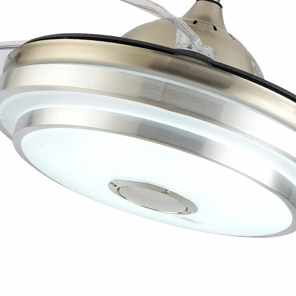 42" Modern Ceiling Fan Light 7 Color Change Remote Control w/Music Speakers 36W SKU:HG-HCXLST-4453-US About this item: 【3 in 1 Ceiling Fan with Light】: Modern ceiling fan / led color chandelier / Bluetooth speaker with 3 major function combinations. The fan blade is retractable, which can promote the air circulation. Modern ceiling fan / led color chandelier / Bluetooth speaker can work alone. 【Music Speakers and Color Change】: The built-in Bluetooth speaker of the music ceiling fan provides 3D stereo surround music with amazing sound quality. Use the i-lamp Bluetooth app,Support 7 color changes, you can set the color to automatically change with the melody of the music when attending a party. 【Remote Control】: The fan rotation speed and light of the fan chandelier can be controlled by 42" Ceiling Fan Light 7 Color LED Pedant Lamp Bluetooth Player 3 Speed w/RC 42" Modern Ceiling Fan Light 7 Color Change Remote Control w/Music Speakers 36W About this item: 【3 in 1 Ceiling Fan with Light】: Modern ceiling fan / led color chandelier / Bluetooth speaker with 3 major function combinations. The fan blade is retractable, which can promote the air circulation. Modern ceiling fan / led color chandelier / Bluetooth speaker can work alone. 【Music Speakers and Color Change】: The built-in Bluetooth speaker of the music ceiling fan provides 3D stereo surround music with amazing sound quality. Use the i-lamp Bluetooth app,Support 7 color changes, you can set the color to automatically change with the melody of the music when attending a party. 【Remote Control】: The fan rotation speed and light of the fan chandelier can be controlled by the remote control. The fan has 3 speed adjustments: high / medium / low, and supports timing (1/2/4/8 hours). 3 dimming methods: white light / warm white light / yellow light. The fan or lighting can be turned on separately. 【Silent Energy Saving】: The uniquely designed blade provides greater wind and less noise. With energy-saving purity copper silent motor, ceiling fan light provides a quiet sleeping environment for you and your family. Fan Chandelier Features: ★Material: Stainless Steel+ABS fan ★Style: modern ★ Size: 42in\107cm ★Type of Bulb:LED ★Average Life:50000 hours ★Voltage: 110V ★Power: 36W ★Control method: remote control ★App remote control: i-Lamp ★Use For:Indoor ★Fan timing: 1h \ 2h \ 4h \ 8h ★Fan speed: high \ medium \ low (fan and lighting can be controlled separately) ★ Is the fan blade reversible: No ★Applicable area: 15㎡-30㎡ What you get: ceiling fan x 1 Screws sets x 1 Down rods x 2 (1 0 CM & 2 0 CM) (2 rods available) Remote control x 1 Instruction Manual x 1 Payment Delivery details Terms of sales About us Contact us Payment We accept ebay payment 。 Fees such as import duties, taxes are not included in the item price or shipping costs. These charges are the buyer's responsibility. Delivery details Shipping: 2-9 working days to: USA Terms of sales We maintain high standards of excellence and strive for hundred percent customer satisfaction. Feedback is very important to us. We hope that you contact us immediately before you give neutral or negative feedback, so that we can address your concerns. It is impossible to address issues if we do not know about them! About us Your satis faction is our ultimate goal. We work hard to earn your trust and future business. Our certified technicians have tested each item before shipping. The unit comes with 1 year limited warranty on all manufacturing defects. a) If you receive a defective item, you may return it or ask for a discount. Please contact us within 14 days after you receive the package. b) What you returned must be intact and in its original packaging as re? u. Customer is responsible for shipping costs of the returned item. c) We will cover the cost of shipping back t with the shipping rate indicated in the registration page. We will send you a new unit or refund the full payment you paid. Thank you. Contact us Business Hour Business Hour: Monday To Friday: 8:30 AM to 5:00 PM (Beijing China time) Due to time zones, our reply to your questions may not be immediately. But within above working time, we will reply your email within 24 hours. If it's non-workdays, please kindly be patient and wait till Monday. Please contact us with ebay message. Please feel free to contact us if you have any questions. Monday To Friday: 8:30 AM to 5:00 PM (Beijing China time) Due to time zones, our reply to your questions may not be immediately. But within above working time, we will reply your email within 24 hours. If it's non-workdays, please kindly be patient and wait till Monday. Please contact us with ebay message. Please feel free to contact us if you have any questions. On Nov 18, 2024 at 02:41:39 PST, seller added the following information:
