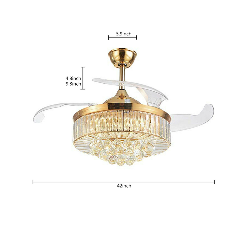 42" Invisible LED Ceiling Fan Light Crystal Retractable Chandelier Lamp W/Remote 42" Invisible LED Ceiling Fan Light Crystal Retractable Chandelier Lamp W/Remote Color:Rose Gold This modern ceiling fan with lights is a combination of ceiling fan and crystal chandelier: ★As for a ceiling fan, it has 4 retractable blades that can stretch out and put inside automatically when turned on and off. ★That means, when turned off, the blades will put inside and become 'invisible', totally a chandelier with crystal; ★When turned on, the blades will stretch out, and transfer to a traditional ceiling fan with lights. ★This chandelier fan is controlled by remote control, ceiling fan speed and LED light can be controlled separately by a single remote control. Fan Chandelier Features: ♥Pendant Lights Type: Crystal Pendant Lights ♥Material: Stainless Steel+k9 crystal+ABS fan ♥Size: 42 inches ♥Color: Gold/Rose Gold ♥Style: modern ♥Number of Blades: 4 ♥Lighting Features: dimmable, fan light ♥Application Type: Indoor ♥Light Bulb Type: LED ♥Number of lamps: 10 ♥Power: 41W (inclusive) -50W (including) ♥Applicable Places: living room/bedroom/kitchen/office and restaurant ♥Voltage: 110V Please Note: ▲The actual color of the chandelier may be deviated due to the color of the display and the angle of the picture. ▲Please receive the actual color of the goods as standard, thank you for your understanding and support. Payment Delivery details Terms of sales About us Contact us Payment We accept ebay payment 。 Fees such as import duties, taxes are not included in the item price or shipping costs. These charges are the buyer's responsibility. Delivery details Shipping: 2-9 working days to: USA Terms of sales We maintain high standards of excellence and strive for hundred percent customer satisfaction. Feedback is very important to us. We hope that you contact us immediately before you give neutral or negative feedback, so that we can address your concerns. It is impossible to address issues if we do not know about them! About us Your satis faction is our ultimate goal. We work hard to earn your trust and future business. Our certified technicians have tested each item before shipping. The unit comes with 1 year limited warranty on all manufacturing defects. a) If you receive a defective item, you may return it or ask for a discount. Please contact us within 14 days after you receive the package. b) What you returned must be intact and in its original packaging as re? u. Customer is responsible for shipping costs of the returned item. c) We will cover the cost of shipping back t with the shipping rate indicated in the registration page. We will send you a new unit or refund the full payment you paid. Thank you. Contact us Business Hour Business Hour: Monday To Friday: 8:30 AM to 5:00 PM (Beijing China time) Due to time zones, our reply to your questions may not be immediately. But within above working time, we will reply your email within 24 hours. If it's non-workdays, please kindly be patient and wait till Monday. Please contact us with ebay message. Please feel free to contact us if you have any questions. Monday To Friday: 8:30 AM to 5:00 PM (Beijing China time) Due to time zones, our reply to your questions may not be immediately. But within above working time, we will reply your email within 24 hours. If it's non-workdays, please kindly be patient and wait till Monday. Please contact us with ebay message. Please feel free to contact us if you have any questions. On Feb 10, 2025 at 23:24:11 PST, seller added the following information:
