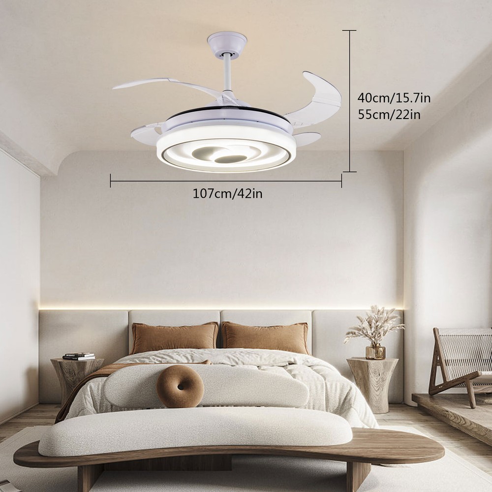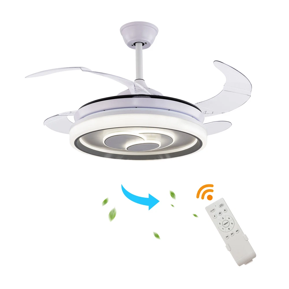 This ceiling fan light is a game-changer! The retractable design and three color options create the perfect ambiance for any mood. It’s super quiet even on the highest speed and the dimmable lights add a cozy touch. Installation was a breeze, and the remote makes adjusting settings effortless. The finish is sleek and modern, blending beautifully with any decor. Love how durable and high-quality it feels—totally worth it for both style and function!