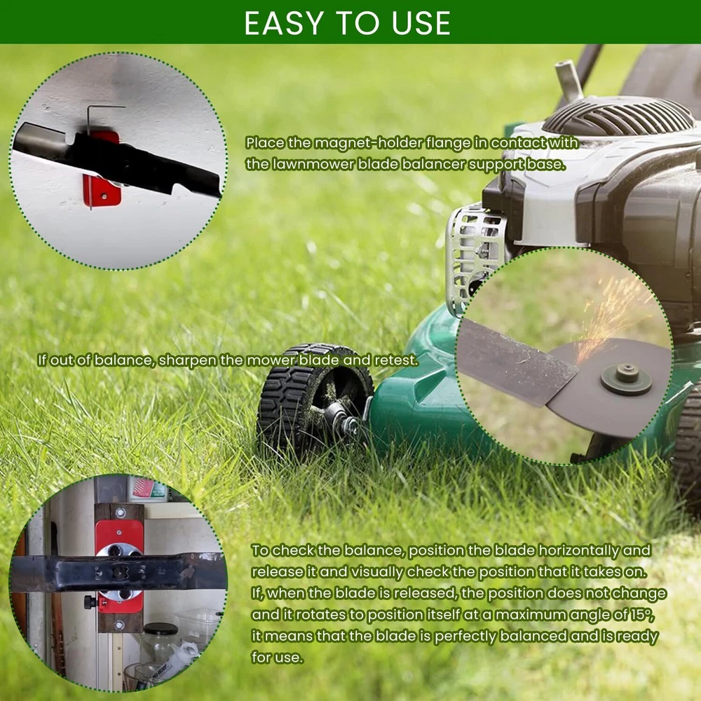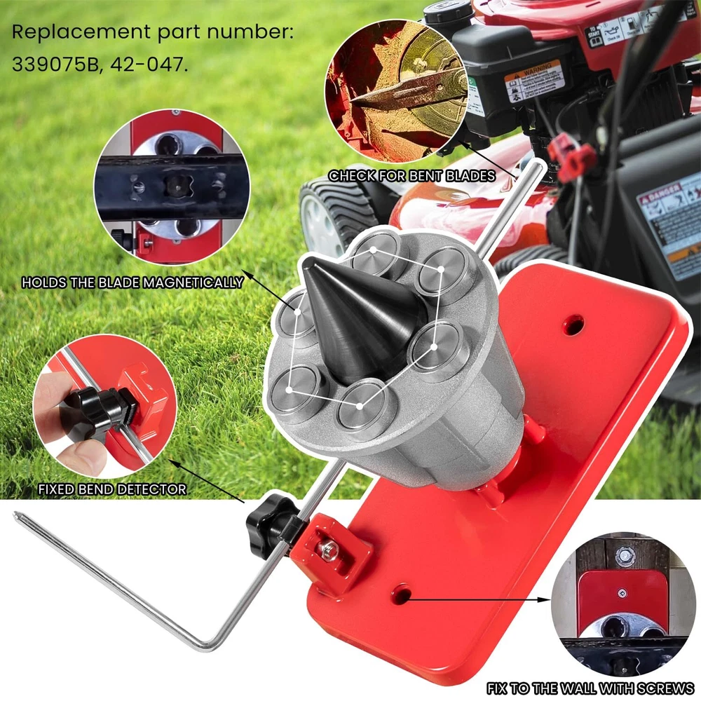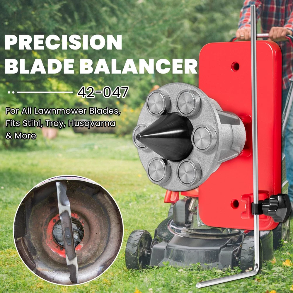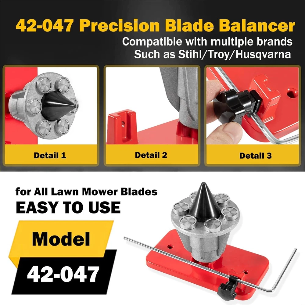 42-047 Blade Balancer, Magnetic Wall Mount Lawn Mower Blades Balancer, Compatible with Stihl/Troy/Husqvarna Lawn Mower Blades, Replace 42-047 339075B 【Perfect Fiment】 This Magnetic Wall Mount Blade Balancer fit for All Lawnmower Blades, Fits for Stihl, Troy, Husqvarna & More. Replace for part number #42-047 #339075B. Prefessional manufacture, meet or exceed for original specification and and requirement. 【Balances Lawnmower Blades】 This precision blade balancer is designed to balance mower blades after sharpening. Provides precise blade balancing and verifies unbalanced and bent blades, reduce vibration and avoid engine wear, extend mower life. 【Premium Quality】 The universal precision blade balancer is made of premium steel and aluminum alloy, high strength METAL material for durability and long lifespan. With 6 powerful magnets for better stability. Features durable, good wear and rust resistance. A long rod works on measuring the bend of the blade. 【What You Will Get】 Comes with 1x Wall Mount Blade Balancer and 1x rod. Easy to use, secure the balancer to the wall in advance, just put your blade onto the cone, pull the middle part forward, then the magnets will attach themseleves to the blade. CONTACT US: If you meet any problem after receiving our product, please feel free to contact us. We will try our best to solve your problem. SHIPPING POLICY: Orders will be ship out within 1-2 business days after payment has cleared. Orders from Saturdays, Sundays or holidays will process on next business day and will be ship within 24 hours. Please allow 10-30 days for international deliveries. Some shipments could take longer subject to your local customs authorities. RETURE & WARRANTY: 1 We accept 30 days return guarantee for all Items If you are unsatisfied with something you bought from us, you may send it back within 30 days of receipt, and we shall be happy to exchange or refund. 2 Leave a message note in returned box quoting your item(s) ID and buyer ID. 3 All returned products must be in their original condition and packaging. Unfortunately, if products have been assembled or modified, we cannot take them as returns. 4 It is important that we know when your return is expected. Please save your return tracking number or post receipt, and email it to us. We need this in case there are any issues during transit. 5 Refund will only be issued upon our receipt of the returned parcel. Please allow 2 working days for us to process with your return. ABOUT REPLY: If you have any questions, please feel free to email our service specialists 24 Hours a Day, 7 Days a Week, and we will reply you ASAP. If no response within 24 Hours, please check the spam of mail box or kindly re-send it to us. ABOUT FEEDBACK: Please contact us before leaving Netural or Negative feedback if you are not satisfied our service or products. Good communication is helpful for both of us to resolve any problems and issues. We work hard to make sure EVERY CUSTOMER 100% SATISFIED and resolve any problem for you and always leave positive feedback to all our customers. If you are satisfied with our service, please leave FOUR 5-Detailed Selling Rating (DSR). Thanks!