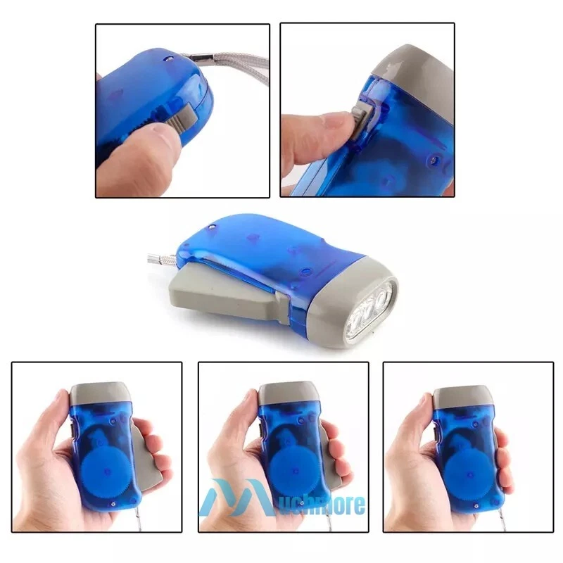 4~20x Hand Pressing Crank Power Dynamo Wind Up Flashlight Torch Night Lamp 3 LED