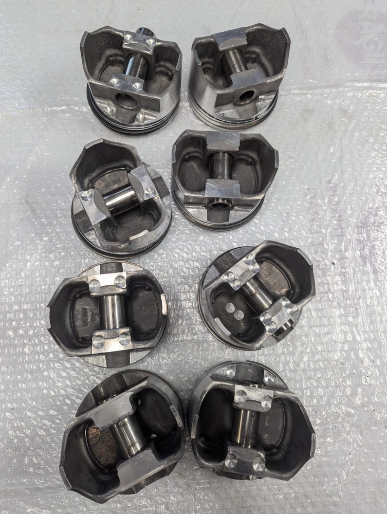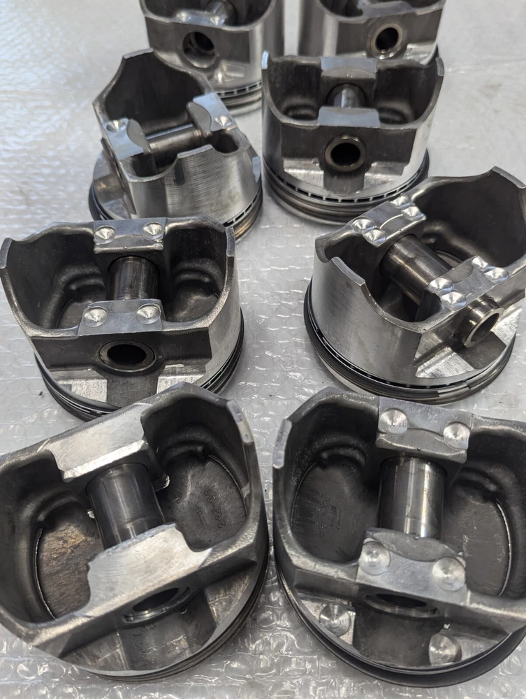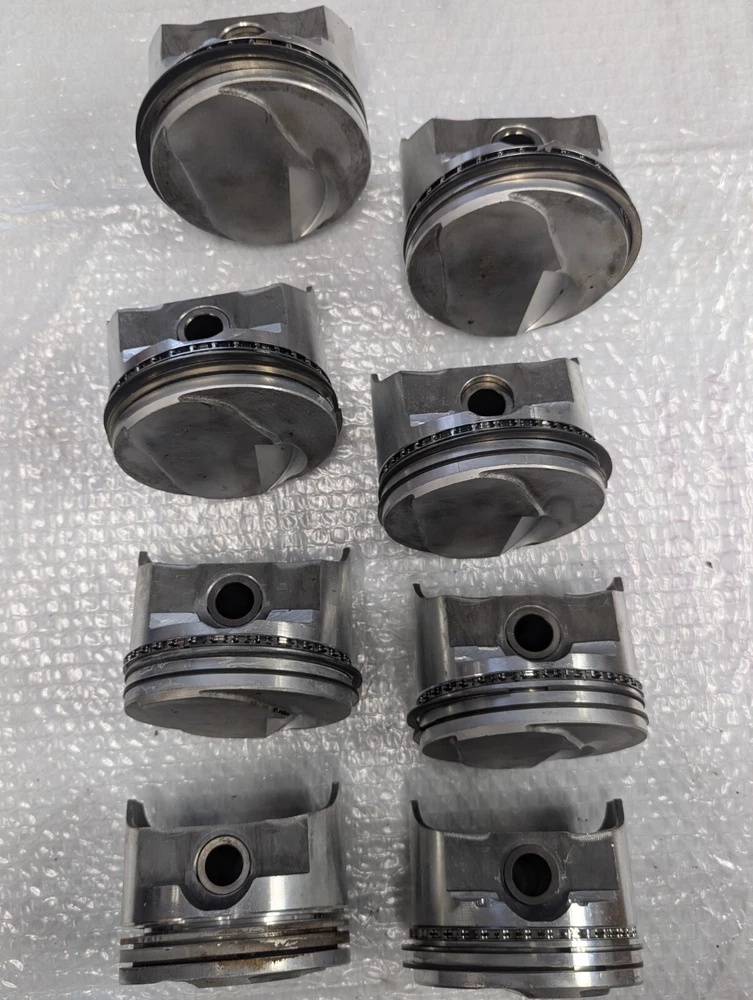 Used set of old TRW forged pistons for 427 Chevy. One piston has a small scuff on the skirt as shown in pictures. They are for 5.280" Sold as is.