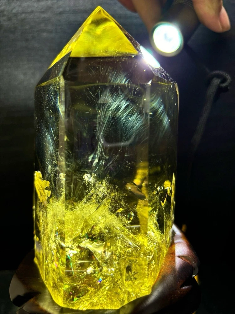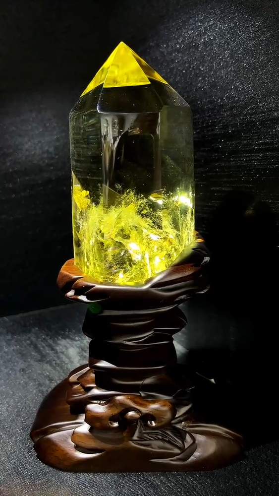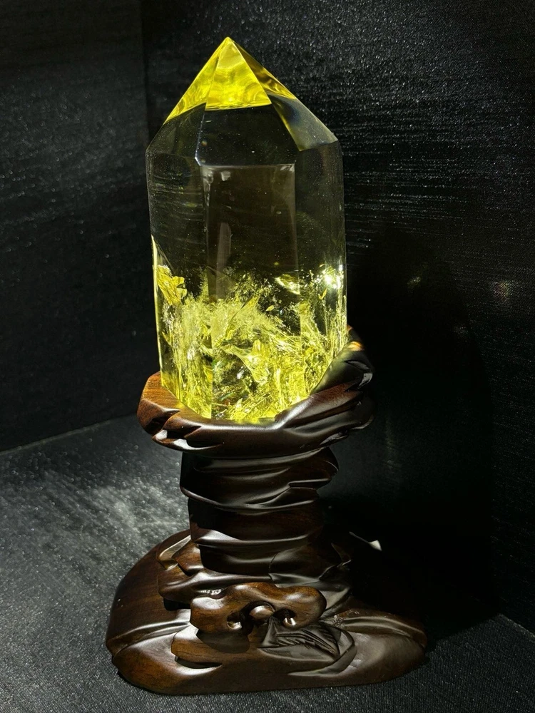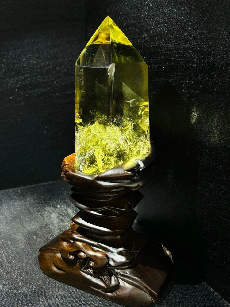 4.29LB Natural Citrine Quartz Obelisk Wand with Stand for Reiki Healing