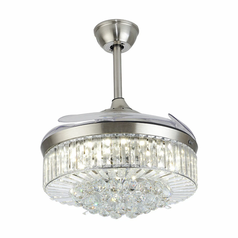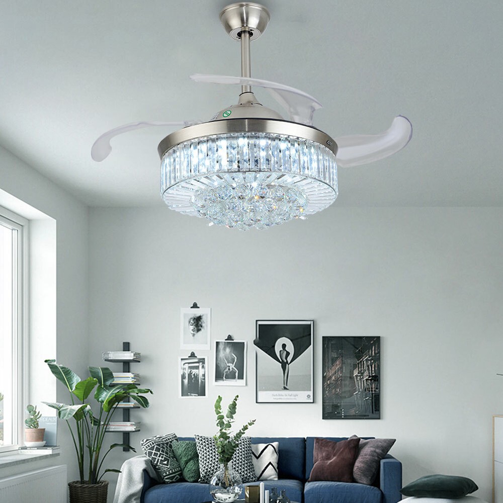 This stunning chandelier fan is a game-changer! The retractable crystal-clear blades look sleek when closed and deliver excellent airflow when open. The bright, adjustable LED panel offers perfect lighting for any mood—warm, daylight, or cool white. The premium metal body and high-quality K9 crystals add elegance, making it a gorgeous centerpiece. Remote control makes switching modes effortless. Installation is a breeze, though professional help is recommended. A perfect mix of style and function—total love!