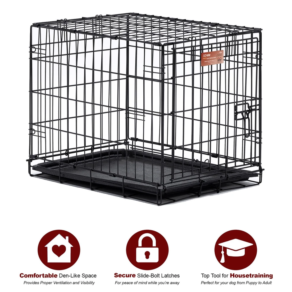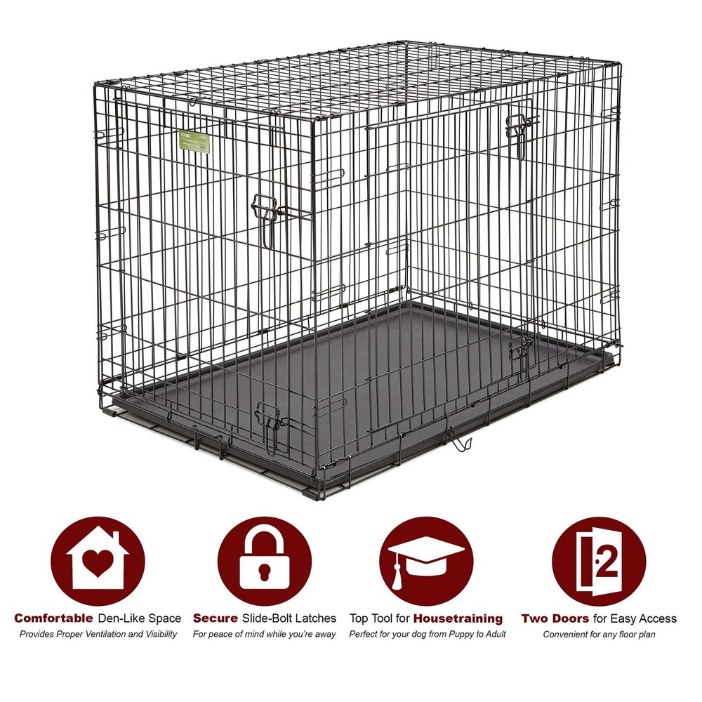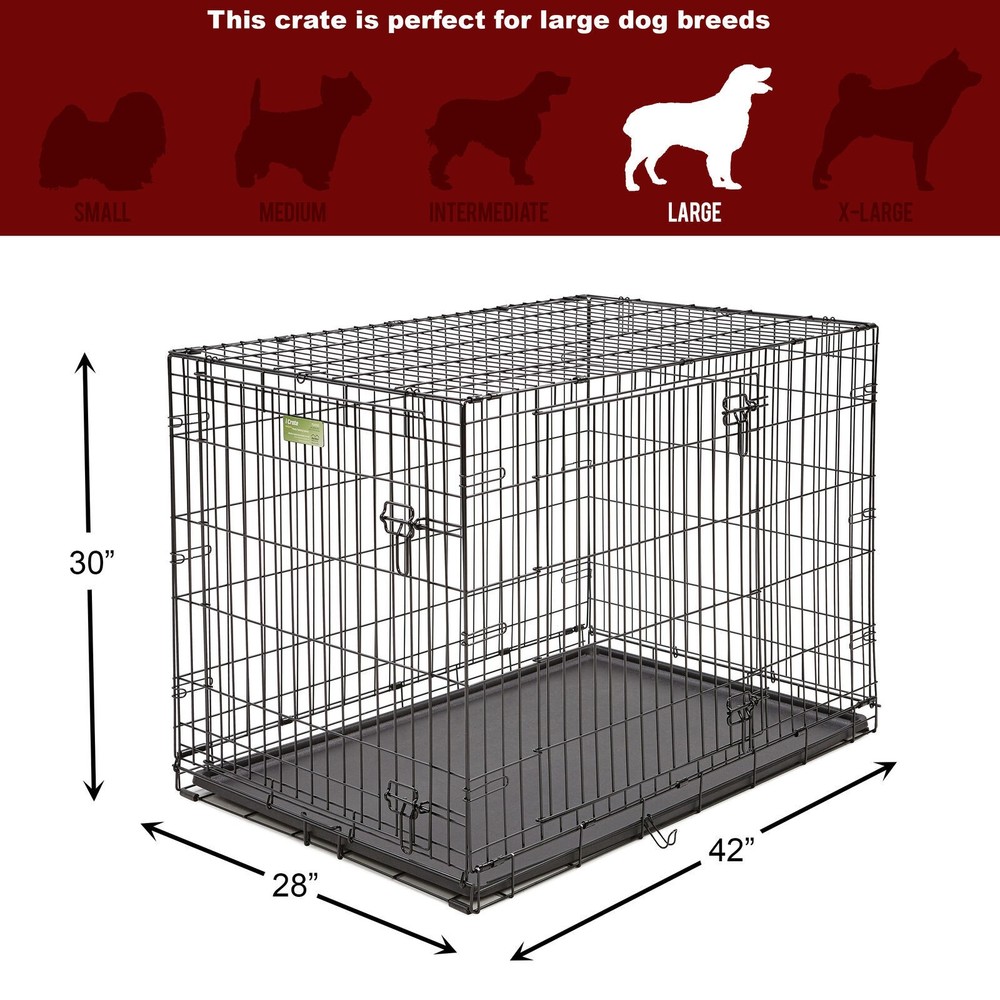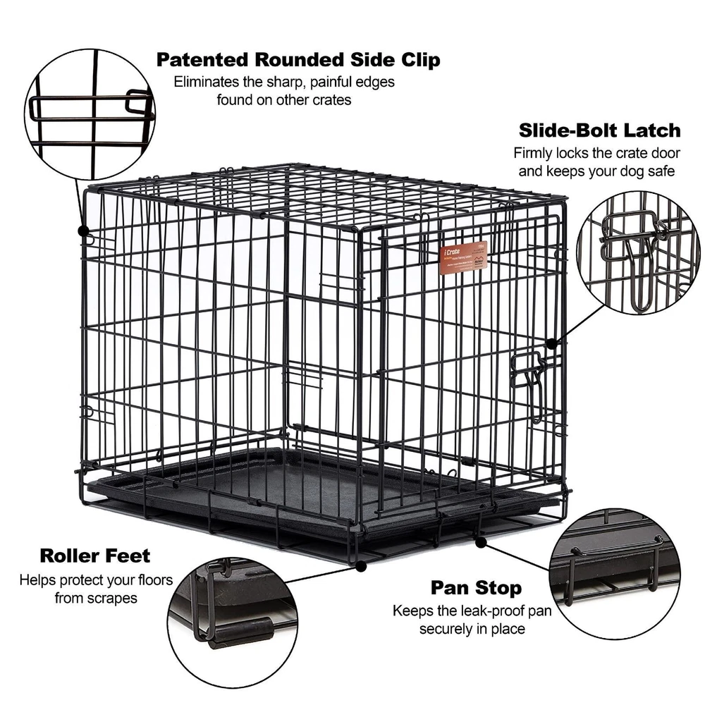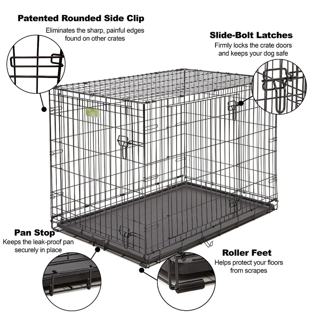 You may also like LED Aquarium Kit W/ Hidden Filtration & Day Night Lighting Aquatic Pets Durable 93.01 USD 100.46 USD Free shipping 7% off Nativity Kings Set Waterproof Durable Yard Decor Simple Assembly Christmas New 117.78 USD 123.98 USD Free shipping 5% off Wheeled Plastic Trash Can Durable 50gal Garage Garbage Bin Snap Fit Lid Durable 55.44 USD 58.36 USD Free shipping 5% off 2 Pcs Lawn Mower Tire Garden Tracto Outdoor Durable Speed Rating A3 16x6.50x8 101.39 USD 132.51 USD Free shipping 23% off Blue Flame Pitching Machine Durable Baseball Softball 18-45 MPH Manual Portable 184.01 USD 193.7 USD Free shipping 5% off 18" Electric Lawn Mower 12 Amp Push Mulching Side Discharge Steel Deck Durable 190.23 USD 200.24 USD Free shipping 5% off Nonstick Silicone Coated 1lb Loaf Pan Heavy Duty Aluminized Steel Baker Pan New 17.5 USD 18.42 USD Free shipping 5% off Electric Hedge Trimmer 20In Dual Action Blade Saw Attachment Compact Design New 99.95 USD 122.45 USD Free shipping 18% off 50,000 BTU Kerosene Forced Air Heater 1200 sq ft W/ Overheat Protection Durable 251.14 USD 285.79 USD Free shipping 12% off Non-Stick Silicone Jumbo Muffin Cups 6 Count Baking Molds Snack Crafts Safe New 13.6 USD 14.32 USD Free shipping 5% off Sturdy Kraft Cake Box W/ Window Baked Goods Muffins Cookies & Brownies New 14.49 USD 15.25 USD Free shipping 5% off 9 Person Instant Cabin Tent W/ Screen Room Easy Setup Weather Resistant Durable 218.9 USD 236.42 USD Free shipping 7% off Product details The iCrate folding metal dog crate by MidWest Homes for Pets includes all of the features you will need to provide a convenient, safe & secure pet home for your best friend, from puppy to adulthood. This crate includes a divider panel allowing you to adjust the size of the living area as your puppy grows. The plastic leak-proof pan allows easy clean-up in the event of an accident. A strong plastic carrying handle is included for convenient portability, and rubber feet on the bottom of the crate protect the floors inside your home. We recently enhanced the safety and security of the iCrate crate by adding locking tips on the slide-bolt latches to securely lock the door and patented Paw Block, which prohibits your dog from tampering with the door lock from the inside. MidWest iCrate crates also feature patented rounded side clips that reduce possible sharp points to ensure a safe experience for you and your pet. LARGE DOUBLE DOOR FOLDING DOG CRATE: Ideal for dogs adult weight of 71 - 90 pounds. Convenient divider panel allows crate to expand as your dog grows SAFE & SECURE HOME: Two heavy duty slide-bolt latches firmly locks dog crate door in place keeping your dog safely inside their dog crate EASY ASSEMBLY & PORTABLE DESIGN: Sets up in seconds w/ no tools required for assembly & folds flat for convenient storage or travel. Roller feet protect hardwoods, make repositioning easy ICrate measures 42L x 28W x 30H inches You may also like 5 Gal Plastic Wastebasket Durable Easy Clean Geometric Design Trash Can Silver 7.33 USD 7.72 USD Free shipping 5% off Youth Golf Club Set Adjustable Length Kids Golf Equipment Learn to Play Red New 35.62 USD 37.49 USD Free shipping 5% off Armless Cushion Saddle Seat Counter Stools Solid Wood Upholstered Kitchen Dining 45.12 USD 47.49 USD Free shipping 5% off Rolling Linen Swivel Office Chair Adjustable Lever Adjustable Height 225 Lb 49.93 USD 52.56 USD Free shipping 5% off 7 Piece Reversible Floral Bed A Bag Comforter Set W/ Sheets King Size Mainstays 57.21 USD 60.22 USD Free shipping 5% off Jumbo Toilet Paper Septic Safe 2-Ply Soft Absorbent Bulk Rolls 12 Pack White New 36.14 USD 41.2 USD Free shipping 12% off 15 Piece Fixed Square Ratcheting Serpentine Belt Tool Set Alloy Steel Toolbox US 79.9 USD 122.9 USD Free shipping 35% off Shooting Rest Rifle Convenient Height Adjustment W/ Front & Rear Rest Bag New 95.69 USD 100.73 USD Free shipping 5% off Floral Makeup Bag Zipper Cosmetic Pouch Travel Organizer Portable Waterproof New 20.29 USD 21.36 USD Free shipping 5% off Iconic Movie Poster 20oz Plastic Cold Cup W/ Lid Straw Perfect Gift Fans New 11.68 USD 12.29 USD Free shipping 5% off 4 Amp 12V Waterproof Battery Charger Automotive Marine Maintainer Smart Charge 57.11 USD 61.69 USD Free shipping 7% off 6 Inch White Paper Cookie Sticks 20 Count Food Safe Dessert Baking Supplies New 9.19 USD 9.67 USD Free shipping 5% off
