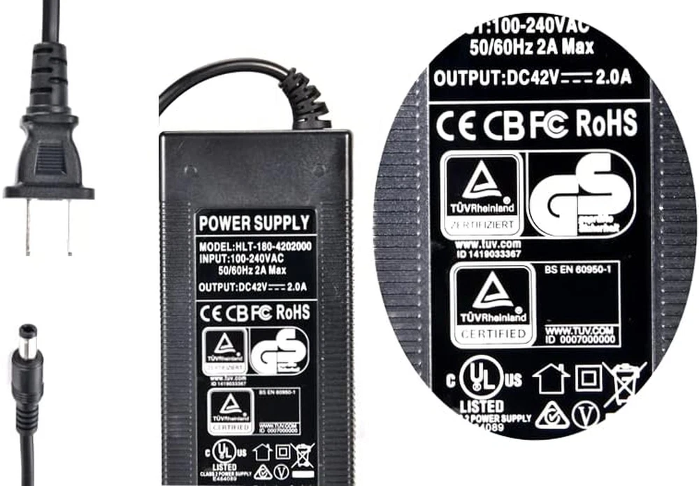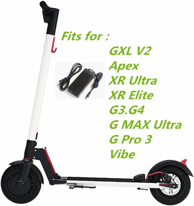 1.PARAMETER; 42V,2A.Note that the scooter with a battery voltage of 36V.The charger uses 42V voltage,The charger voltage must be greater than the battery voltage to charge normally. High current charge fast and short time. 2A>1.8A>1.5A. 2.SAFETY FRIST:If the charging is abnormal, please do not disassemble the charger without authorization.Please do not disassemble the charger without authorization.You should stop using it immediately And contact us. 3.DISPLAY: Indicates charging status with dual LED display. Red light means charging. Green light means charged/disconnect. Blinking light means start voltage is lower than the output start voltage. 4.HIGH QUALITY:Made of only the highest quality materials and built to last! Our chargers are gauranteed to match the original brand name chargers' quality. 5.QUALITY ASSURANCEL:100% SATISFACTION GUARANTEE: Buy with confidence, as our premium quality is built to last, and if you're not satisfied with it at anytime within Half a year of purchase, we'll provide a refund or replacement. Product Description Charger Plug Output interface: DC interface. Outside diameter of 5.5mm. Inner diameter is 2.5mm. US Cable length:1000mm. Charger Plug to Charger 1100mm. What is the purpose? Electric scooter 42V.2A Charger The charger is suitable for electric scooter with 36V Lithium battery Fits for GOTRAX and other brands Fits for GLX V2. Apex. XR Ultra. XR Elite. G3 G4. G MAX Ultra. Vibe. 1.It is normal for the charger to heat up when charging. The charger is working 2.The charger does not work for possible reasons: 1. The charger is broken 2. Poor contact 3. The battery is dead If it is not properly connected, check whether the battery port is properly connected. If the battery fails, there are conditions where it is safe to test the battery voltag.