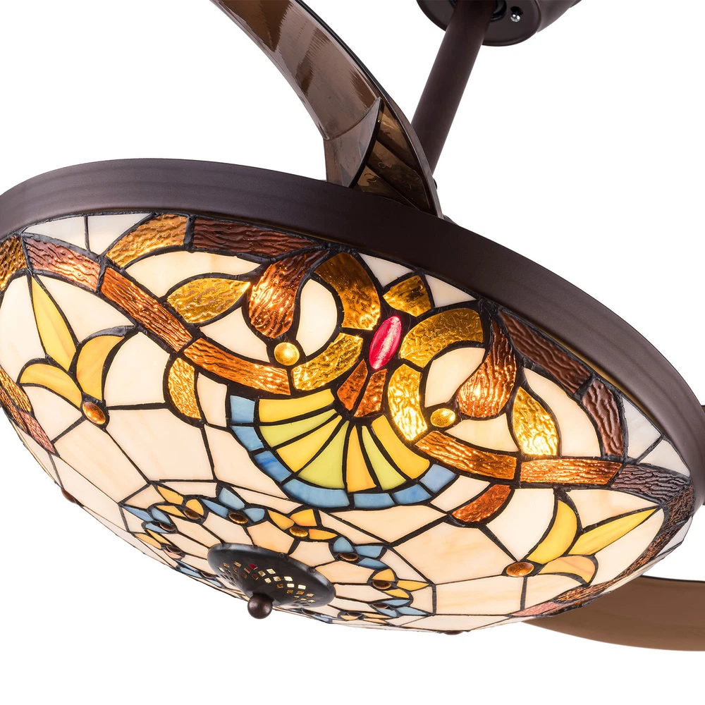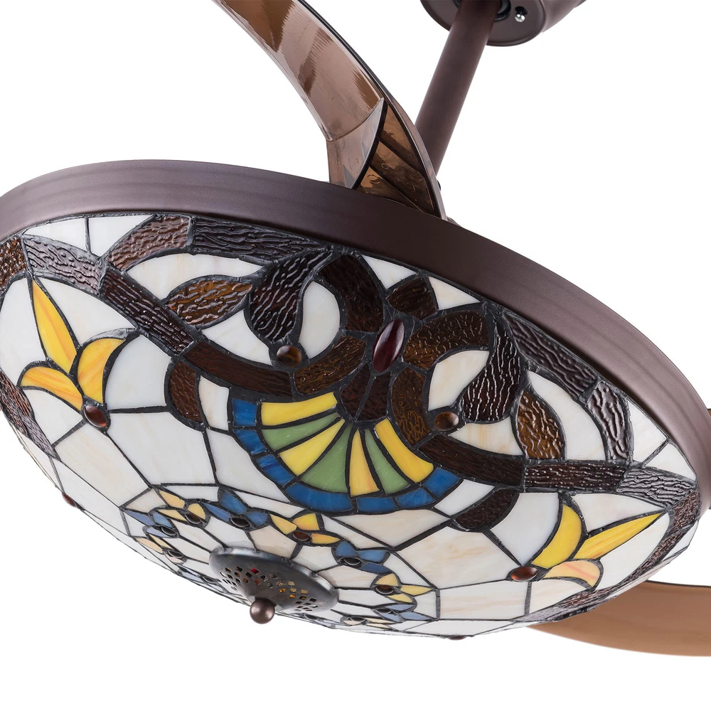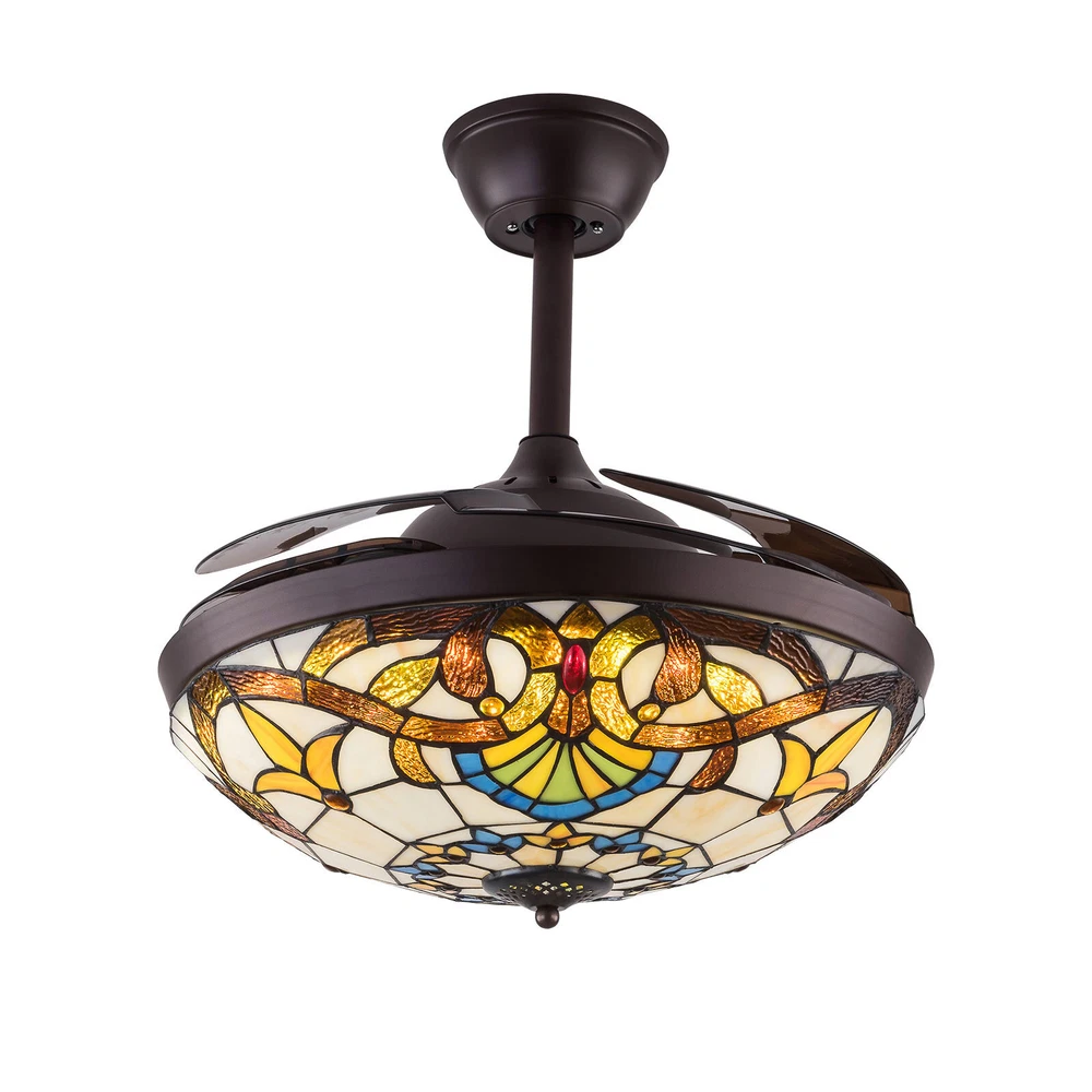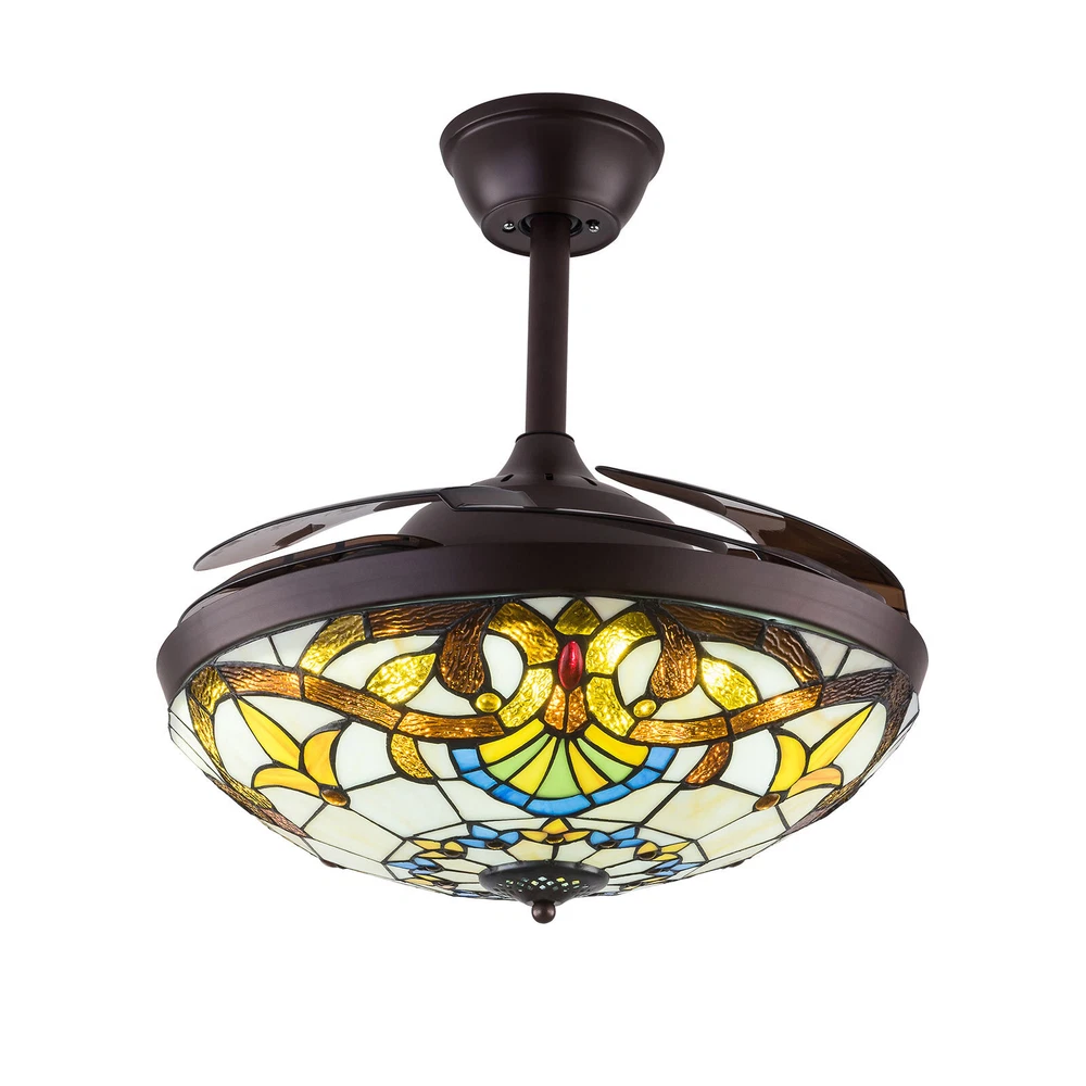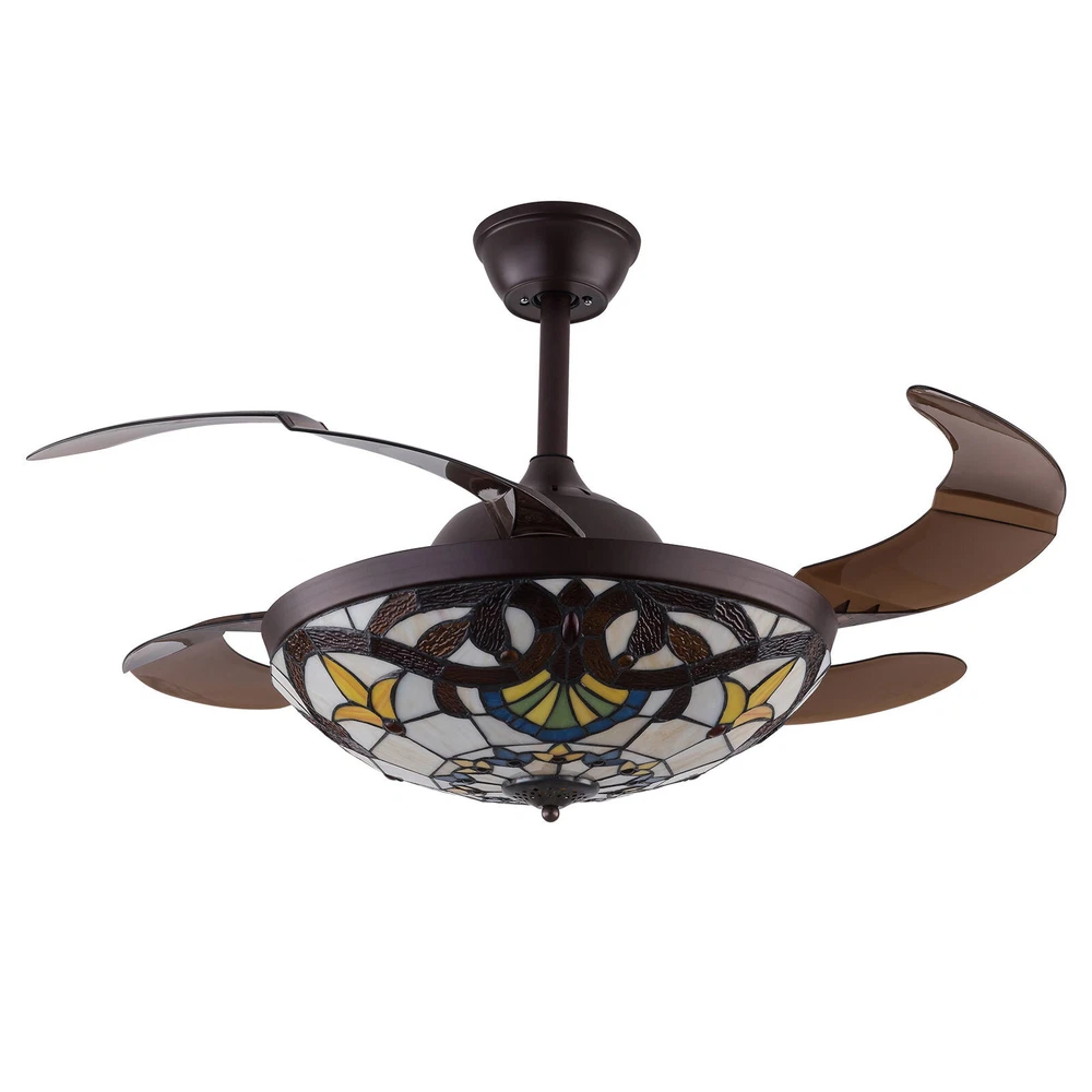 42"Vintage Ceiling Fan Light Retractable Blade LED Chandelier & Remote Control