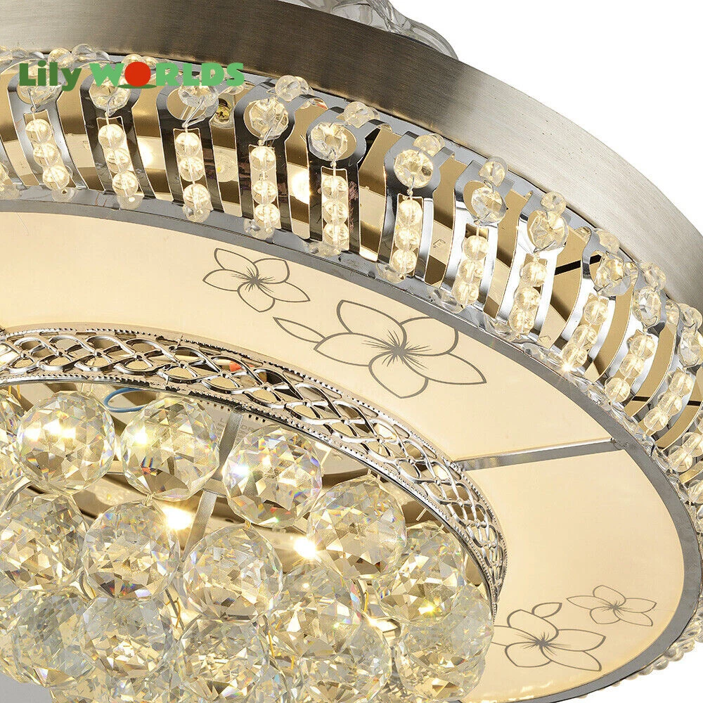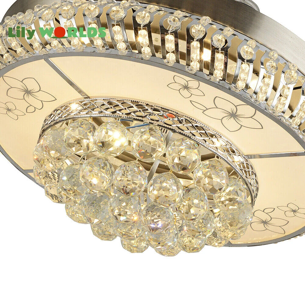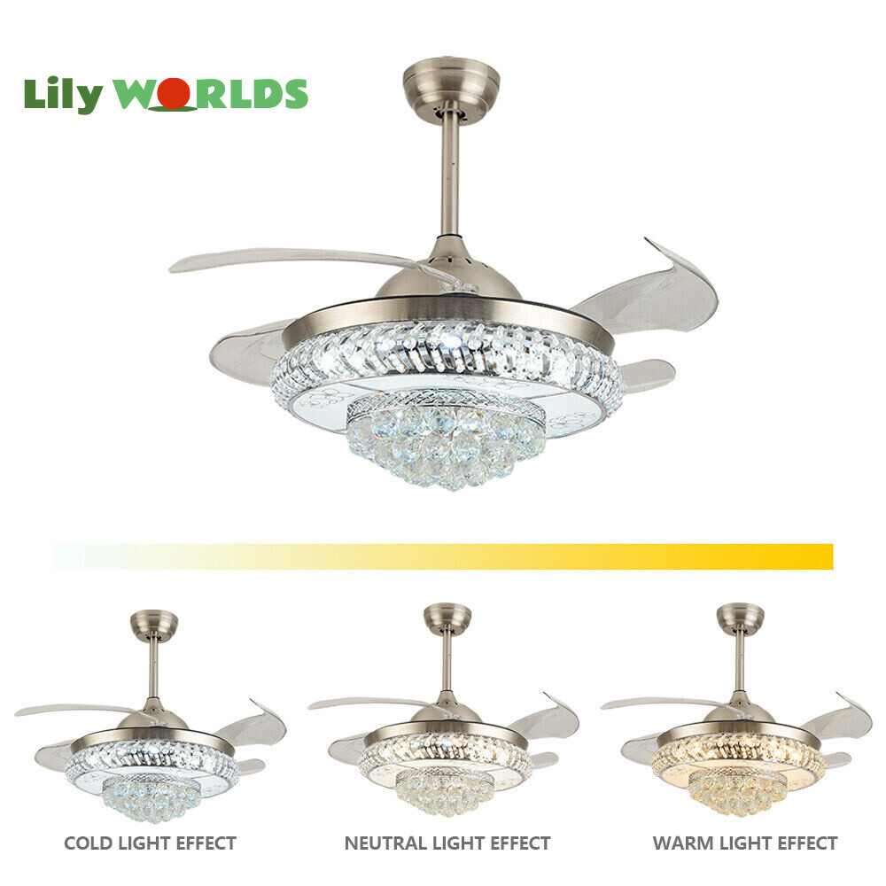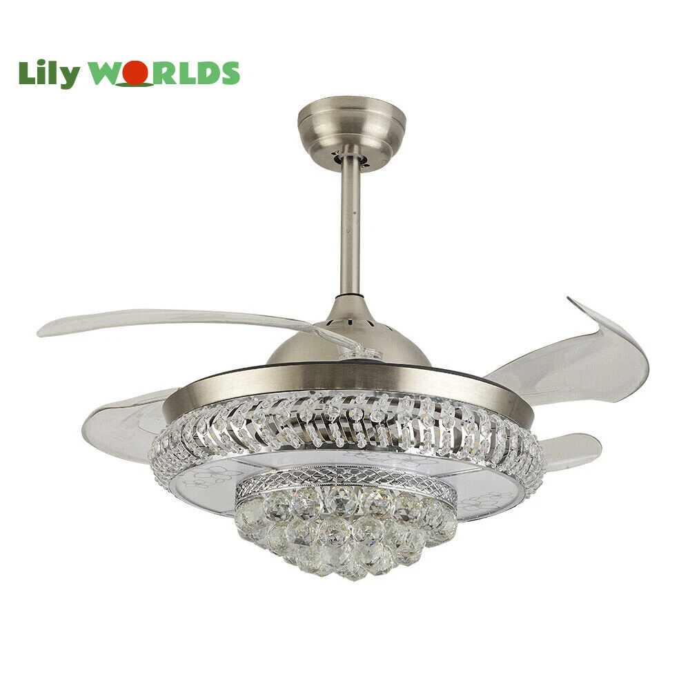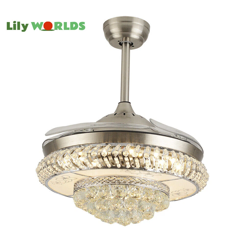 42in LED Crystal Chandelier Invisible Ceiling Fan Light Retractable Blade&Remote Welcome to our store! 42'' Invisible Ceiling Fan Light LED Crystal Chandelier Retractable Blades With RC Description A beautiful house needs a lamp that is very suitable for it. A family needs warm lighting to create an atmosphere at dinner. Light up a lamp, warm the family, you deserve the best. This crystal ceiling fan with light is designed to be elegant and light, and the style is versatile. It has a quiet fan, which allows you to enjoy deep sleep. At the same time comfortable eye protection. Soft light and bright. It is your best choice. Key Highlightss Remote Control: This item is equipped with remote control, so you don't have to stand up to change the three lights, three wind speeds or timer settings at will. This will bring a lot of convenience to your life. Timing Device: This crystal ceiling fan with light can be timed for 1 hour, 3 hours, or 6 hours with a single button. If you often forget to turn off the power, you don't have to worry about wasting electricity with this product. Great Durability: The entire light is made of copper, ABS Blade, and K9 Crystal. Under normal use, the product has a lifespan of 5-10 years or longer. Compared with ordinary lights, this crystal ceiling fan with light is more durable and you can buy it without comprehension. Wide Range: The item's lights and fans can serve an area of ten to twenty square meters. So even if your room is as big as 20 square meters, you don't have to worry about the lights being too dim or not blowing the wind. Crystal Design: You will be stunning when the lights are on, which will give your room a sense of luxury. Adjustable Total Height: The length of this crystal ceiling fan with light is 15 inches (38 cm) / 21 inches (53 cm). You can choose the right length of the pole according to your needs. Diverse Functions : With ABS blades, this crystal ceiling fan with light can be used as an electric fan and also for lighting. It can be multi-purpose and has superb cost performance. High-quality Service : We also provide you with high-quality pre-sales and after-sales services for free. If you have any problem with using it, please feel free to contact us and we will try our best to help you. Specfications 4 Retractable Acrylic Ceiling Fan Blades: This item contains 4 retractable acrylic ceiling fan blades, a material with crystal-like transparency, high surface hardness, and surface gloss. In addition, it will automatically retract and fit into the room when closed, which is a great home decoration. Fans and lights in One : This design is a great space saver while Highlightsing a sense of sophistication. ABS Blades: This material Highlightss high strength and the ABS fluid resistance is low, which makes it a low energy consumption. It is beautiful, thin, light, and durable to use. Applications This crystal ceiling fan with light is ideal for the living room, dining room, foyer, cottage, bedroom, dining room, study, and other places as a decorative lighting fixture. Specfication Light: 3 Colors (neutral white72W, warm white36W, pure white36W) Wind Speed: 3 Wind Speed (high / medium / low) Voltage: 110V Style: Modern/Luxury Switching Power Supply: Remote Control Material: Metal + ABS Blade + K9 Crystal Product Type: Crystal LED Invisible Fan Light Light Source: LED Color: Chrome Silver Switch: Remote Control Motor Material: Copper Number of Blades: 4 Diameter:42inch /107cm(blades unfolded) Long Downrod Length: 9.8" (25 cm) Short Downrod Length: 3.9" (10 cm) Total Height: 19.6" (50cm)/ 25.5" (65cm) Illuminated area: 10-25㎡/107.64-269.1ft² Installation 1. Fixed the bracket on the ceiling. 2. Install the lamp holder, and follow the correct wiring steps. (Tips: Make Sure to Cut Off the Power Supply). 3. Fixed the lamp plate on the bracket. 4. Hang the hollow metal lampshade on the lamp plate. Package Included 1* Ceiling Fan with Light 1* Remote 1* English Manual All Accessories for Assembly Notes 1. Always turn off the power before installing, servicing, repairing. 2. Be sure to securely tighten the wiring studs to prevent loosening or leakage. 3. To avoid the danger of heights, choosing a solid installation surface will be better. 4. The boom has two lengths for choosing, depending on your actual situation. 5. Floor height is greater than 102 inches, ceiling load is greater than 30kg. 6. This chandelier requires a basic simple installation (highly recommended by professional electricians). If you have any questions, please contact us. We are happy to serve you. 7. Please allow slight color difference due to shooting light, and 1-3mm error due to manual measurement, please make sure you don't mind before ordering. Dear Customer, Thank you very much for your orders. I'mpleased that you entrusted us as your supplier foryour project and am grateful that you continue toput your faith in our services. I hope our productsmet your expectations. As always, we are happy to support you with anyfuture projects you may undertake. I wish you thebest with your current project and look forward toseeing the outcome. Thank you again, and I lookforward to working with you in the future . Best regards. Payment Delivery details Terms of sales About us Contact us Payment We accept ebay payment 。 Fees such as import duties, taxes are not included in the item price or shipping costs. These charges are the buyer's responsibility. Delivery details Shipping: 2-9 working days to: USA Terms of sales We maintain high standards of excellence and strive for hundred percent customer satisfaction. Feedback is very important to us. We hope that you contact us immediately before you give neutral or negative feedback, so that we can address your concerns. It is impossible to address issues if we do not know about them! About us Your satis faction is our ultimate goal. We work hard to earn your trust and future business. Our certified technicians have tested each item before shipp