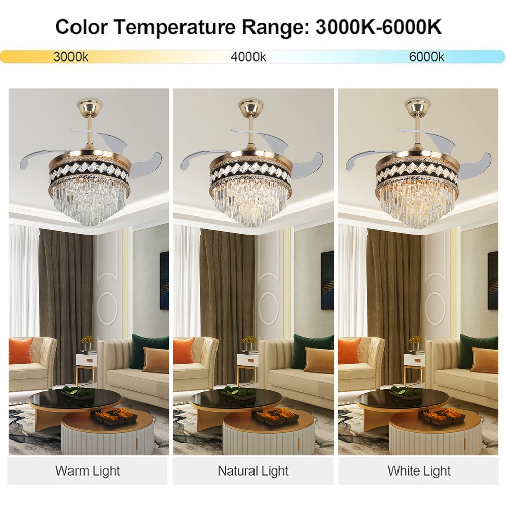 $ 72.99Modern Dimmable LED Ceiling Fan Light with Remote Crystal Chandelier
