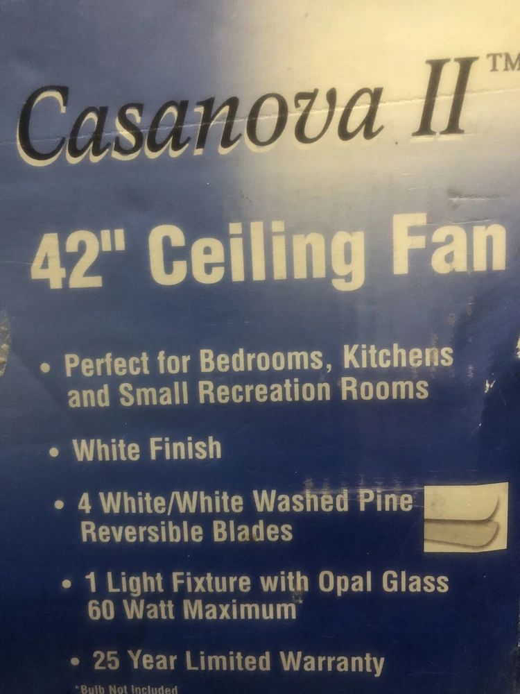 The Casanova 11-WH-SH 42 inch Ceiling Fan with Light Kit in White is a stylish and energy-efficient addition to any indoor space. With a traditional globe design and a shiny finish, this ceiling fan features 3 speeds and a pull chain control for convenience. It provides a warm white light with a color temperature of 2500 - 3000 K, making it suitable for small rooms like bedrooms, home offices, and dining rooms. The fan is designed for easy installation on the ceiling and comes with a manufacturer warranty from Casanova 11.