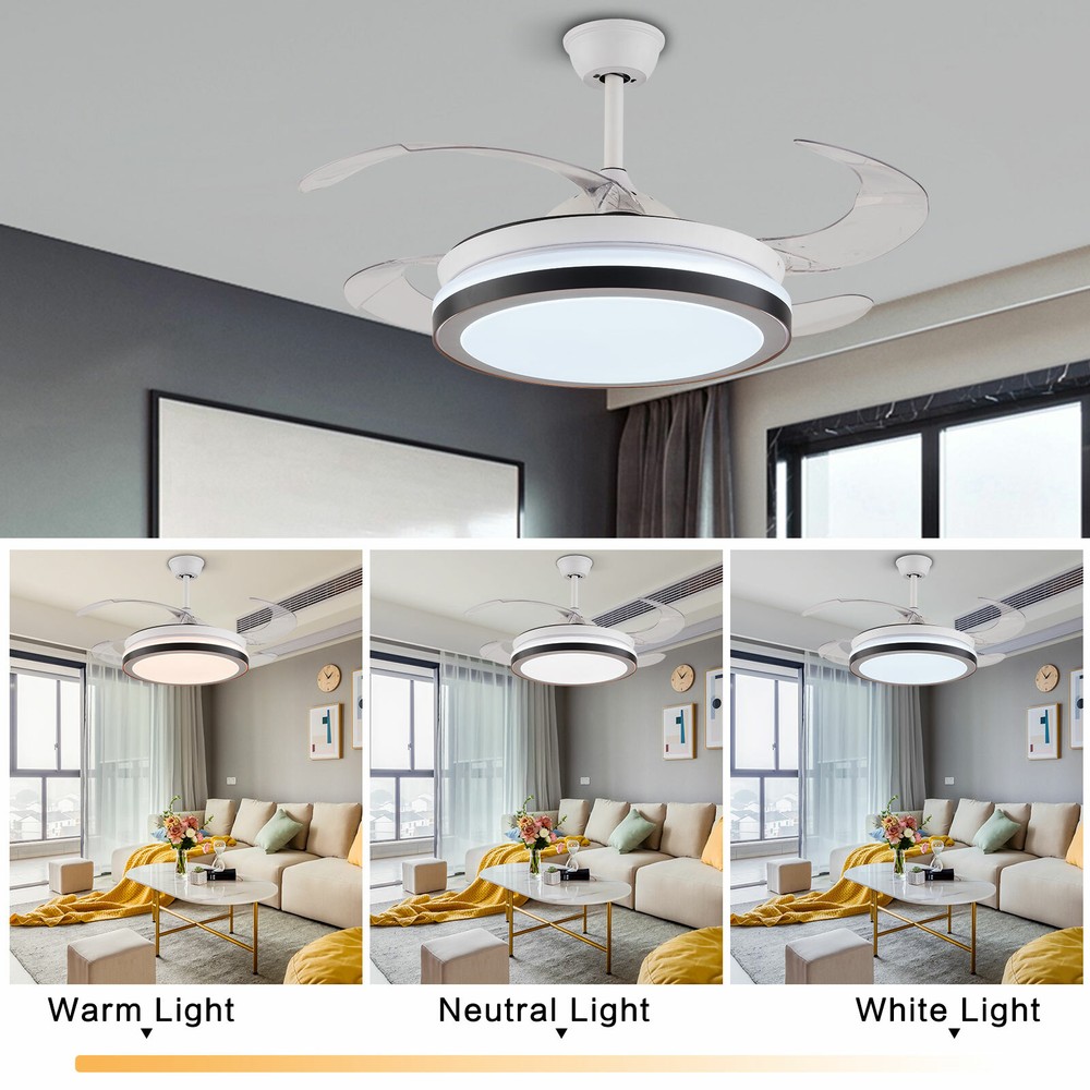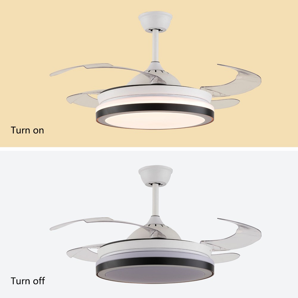 Absolutely love this ceiling fan and lamp combo! The retractable blades save so much space, and the remote makes it easy to adjust both fan speed and light color. Super quiet, stylish, and functional—perfect for any modern room. Installation was a breeze with the included hardware. Definitely a game-changer!