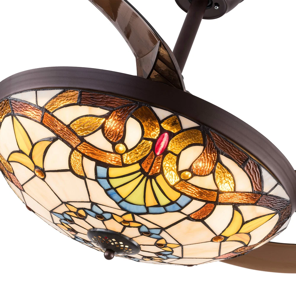 Fan Chandeliers Details Color temperature: CCT Dimmable (3 light cycles) Light source type: LED(Light Kit Included) Control: Remote Control Included, Dimensions: 42 Inch, 4 Retractable Blades Light Wattage: 36W Motor Wattage: 56W Speed: 3 Voltage: AC 110 -120 Volts 42"Tiffany Style Chandelier Retractable Ceiling Fan Remote Control Light Fixture 42'' Tiffany Silent Ceiling Fan Light LED Chandelier CCT Pendant Lamp Product description Features *Invisible fan chandelier: Fan and chandelier combined into one with remote control, automatic telescopic fan blade, LED lamp beads *Ceiling fan with remote: LED lights have 3 color changes (White-Warm-Yellow), Fan has 3 speed settings (Low-Mid-High). All these functions can be easily controlled by remote *Fan Light Chandelier: 42 inches when the fan is extended, and 19 inches when the fan blade is retracted. Includes two lower bars, one for4.87 inches and the other for 9.8 inches, you can choose one to install *Bedroom Ceiling Fans Material: metal body + acrylic lamp cover + ABS retractable blades + pure copper motor(providing powerful air flow, quiet and durable. With vents, it can reduce the internal temperature of the main unit and extend the life of the motor.) *Ceiling Fan with LED Light: Replaceable LED light will last a longtime and save you the most on your energy bills. *Ceiling Fan with Remote Control: Control the light and fan speed separately for ease and convenience. *The colored lampshade is made of pure hand-sprayed oil , it may has slight chromatic aberration and color unevenness on different fan. Fan Chandeliers Details Color temperature : CCT (3 light cycles) Light source type: LED(Light Kit Included) Control: Remote Control Included Dimensions: 42 Inch, 4 Retractable Blades Light Wattage: 36W Motor Wattage: 56W Speed: 3 Voltage: AC 110 -120 Volts Installation Instructions: Ceiling Chandelier Suitable for Flat Roof Concrete Ceiling House, for Gypsum Board and Wood Ceiling, You Need to Buy a Remodeling Bracket; Identify and Connect Electrical Wires; Ceiling height is greater than 110", Lift 110 Pounds. What you get: Retractable ceiling fan x 1 Screws sets x 1 Down rods x 2 (12CM & 25CM) Remote control x 1 Instruction Manual x 1 Payment Delivery details Terms of sales About us Contact us Payment We accept ebay payment 。 Fees such as import duties, taxes are not included in the item price or shipping costs. These charges are the buyer's responsibility. Delivery details Shipping: 2-9 working days to: USA Terms of sales We maintain high standards of excellence and strive for hundred percent customer satisfaction. Feedback is very important to us. We hope that you contact us immediately before you give neutral or negative feedback, so that we can address your concerns. It is impossible to address issues if we do not know about them! About us Your satis faction is our ultimate goal. We work hard to earn your trust and future business. Our certified technicians have tested each item before shipping. The unit comes with 1 year limited warranty on all manufacturing defects. a) If you receive a defective item, you may return it or ask for a discount. Please contact us within 14 days after you receive the package. b) What you returned must be intact and in its original packaging as re? u. Customer is responsible for shipping costs of the returned item. c) We will cover the cost of shipping back t with the shipping rate indicated in the registration page. We will send you a new unit or refund the full payment you paid. Thank you. Contact us Business Hour Business Hour: Monday To Friday: 8:30 AM to 5:00 PM (Beijing China time) Due to time zones, our reply to your questions may not be immediately. But within above working time, we will reply your email within 24 hours. If it's non-workdays, please kindly be patient and wait till Monday. Please contact us with ebay message. Please feel free to contact us if you have any questions. Monday To Friday: 8:30 AM to 5:00 PM (Beijing China time) Due to time zones, our reply to your questions may not be immediately. But within above working time, we will reply your email within 24 hours. If it's non-workdays, please kindly be patient and wait till Monday. Please contact us with ebay message. Please feel free to contact us if you have any questions.