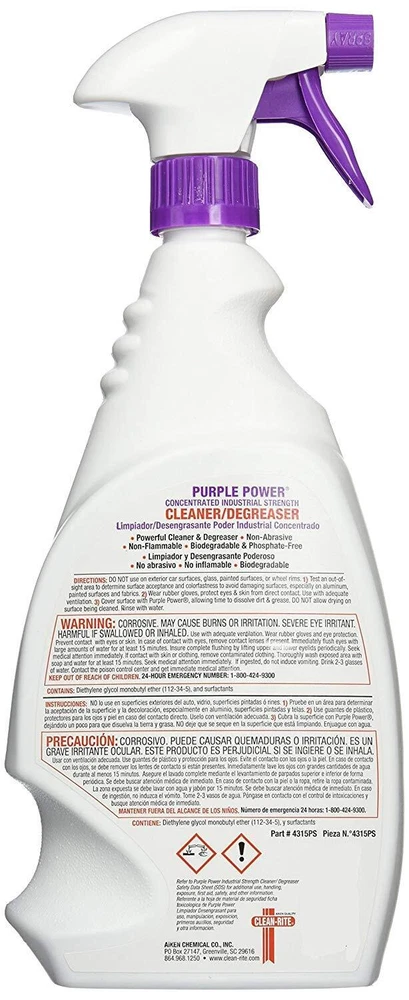 Power away dirt and grease on . Rely on for the toughest cleaning jobs. Industrial Strength Cleaner/Degreaser works great on a wide variety of surfaces in auto, farm, , home and industrial applications. The concentrated formula penetrates quickly and then creates a barrier between the stain and the surface being cleaned. Biodegradable, non- abrasive, non-flammable, and phosphate-free. Directions: Test an out-of-site area to determine surface acceptance and colorfastness to avoid damaging surfaces, especially on aluminum, painted surfaces and fabrics. Wear rubber gloves, protect eyes and skin from direct . Use with adequate ventilation. Cover surface with , allowing time to dissolve dirt and grease. Do not allow drying on surface being cleaned. Rinse with water. Do not use on exterior car surfaces, glass, painted surfaces, or wheel rims.