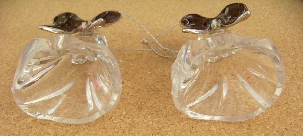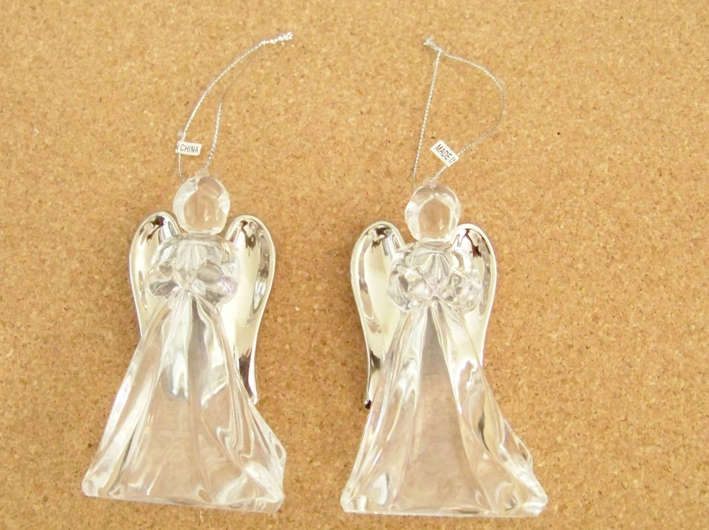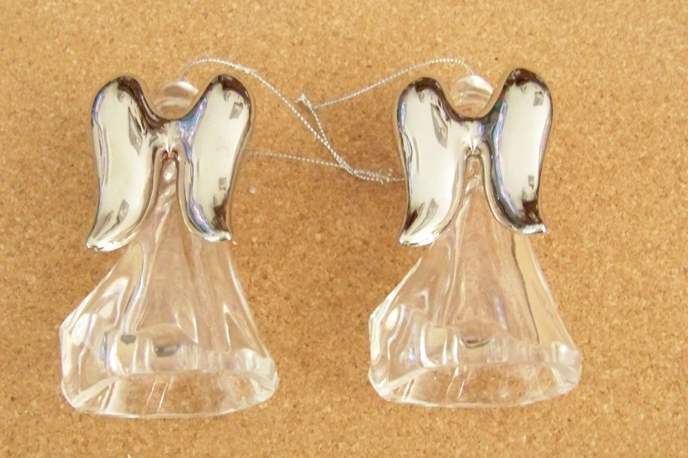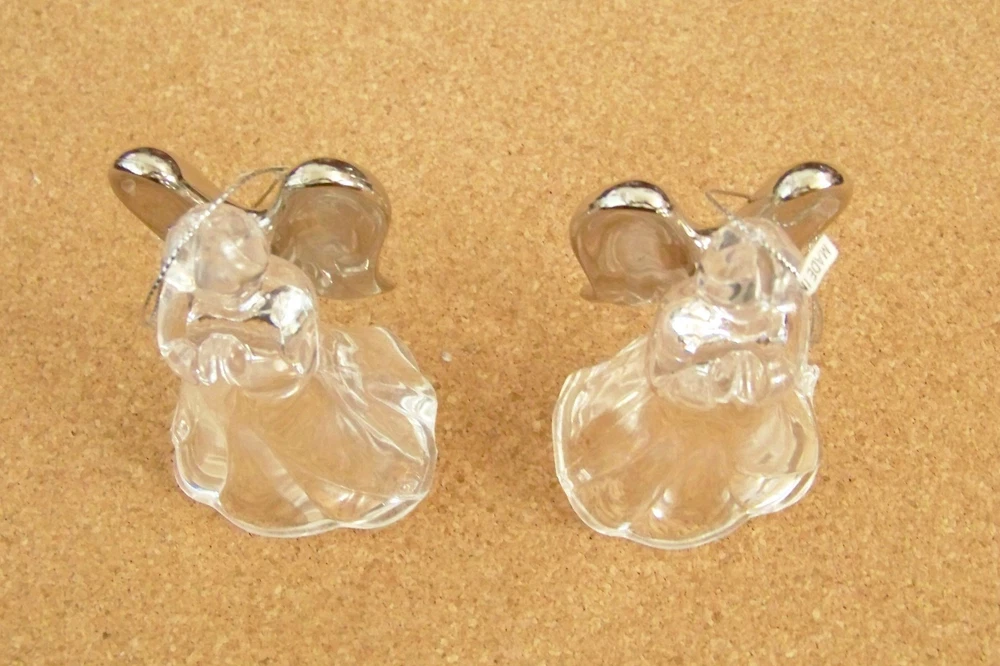 4-3/4" tall pair of clear Angels with silver tone wings ornaments