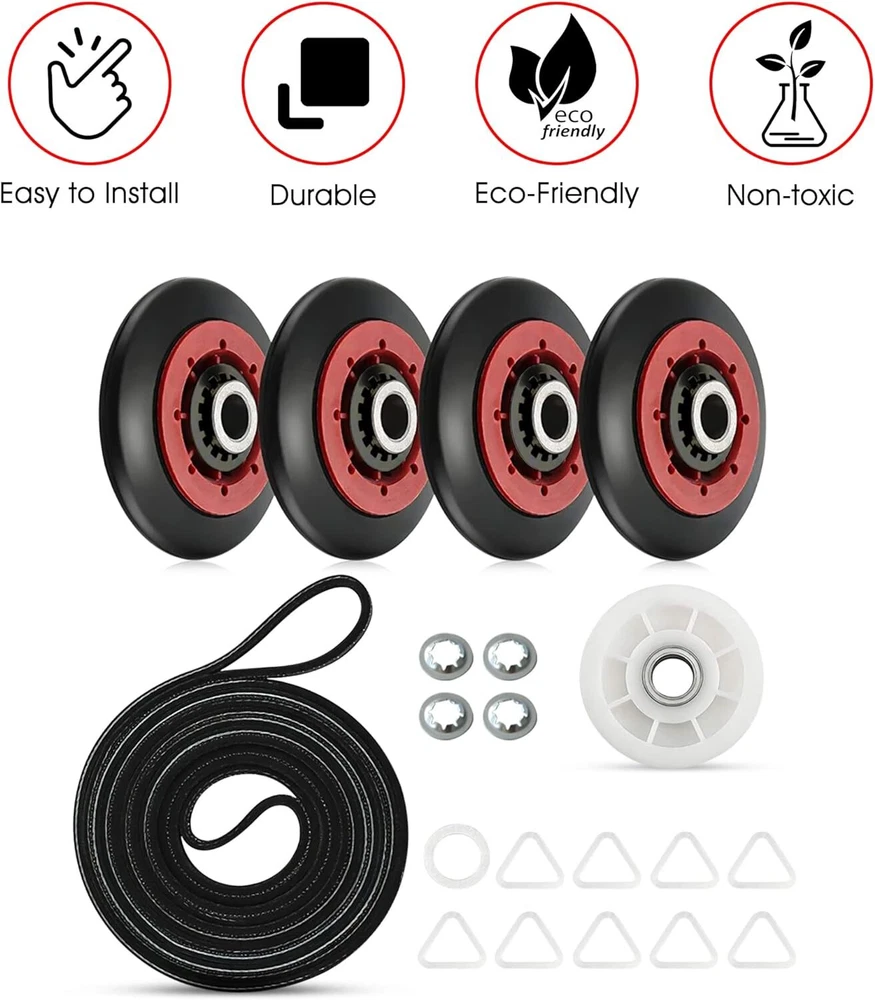 Item always Will Be Sent Out in 24 Hours From Monday to Saturday From California USA With USPS Tracking No. 【4392067 Dryer Repair Kit Includes】- 4 x 8536974(W10314171 W10314173 3388342 3401846) drum roller support wheels,1 x 279640(697692 3388672 W10468057) dryer idler pulley, 1 x 661570 (40111201, 661570V, 3387610) dryer drive belt,9 x tri-rings, and washers 【Compatible Brands & Replaces No.】- Fit for Admiral, Cro-sley, Maytag, Whirlpool, Ken-more Dryers. Replaces 2015 4392067 4392067VP 80047 587637 AP3109602 PS373088 EAP373088 【Repair Symptoms 】- Upgradely 4392067 Dryer Repair Kit is a perfect match and good choice for direct replacement of original parts and Fixes the following symptoms: Not drying properly, will not tumble, will not start, unusual noises, loud noises, takes too long to dry, this part is also known as a rebuild kit, preventative maintenance kit, repair kit 【Easy DIY Repair】- It is an easy repair if you follow along with a repair video, and we also provide installation instructions in the package, you can replace the wearable parts with its help. Helpful tools include a quarter-inch hex head nut driver, a small flathead screwdriver, and work gloves 【About Us】If you encounter any problems during the shopping process, please feel free to contact us and we will do our best to solve the problem for you. Customer satisfaction is our relentless pursuit! Payment 1.We only accept PayPal. Credit card payment can also be made via PayPal.eBay Immediate Payment via PayPal. 2.Please fill in a valid contact address. Shipment Items are usually shipped 1 business days after payment has been received. We do not ship on weekends and holidays. Sellers are not responsible for service transit time. Transit times are provided by the carrier, exclude weekends and holidays, and may vary with package origin and destination, particularly during peak periods. Return Policy Out 30-day Satisfaction Guarantee assures our customers that they will receive all orders promptly and exactly as described. In addition , it allows customers to return new and unused products in their original factory condition for any reason within 30 days from the date of purchase. Notice: 1.All returns must be pre-approved by Seller and have a return merchandise authorization (RMA) number. Any problem about item, Please Send the eBay message to us ,we will respone in 24 hours 2.Buyers are responsible for appropriate packing, returning shipping cost, insurance and returning the item in “new” condition. Used items will not be accepted for return. 3.We will replace the returning item with an identical item, issue a full refund. Contact us 1.If for some reason there is any issue with the purchase, please contact us prior to leaving any negative or netrual feedback, and we will work with you to have it resolved.