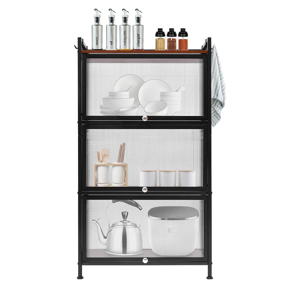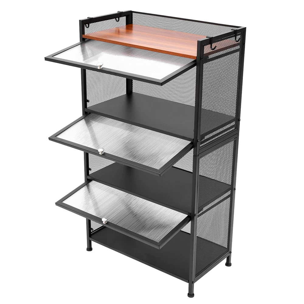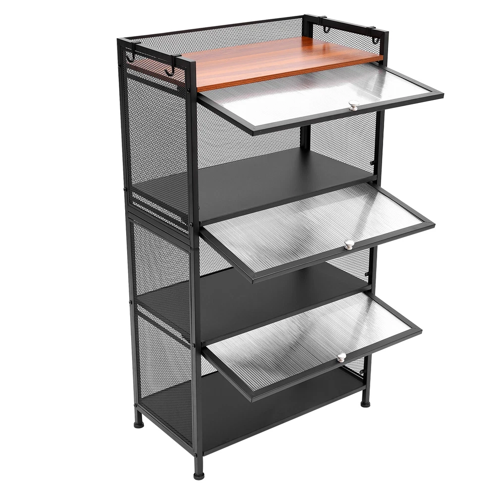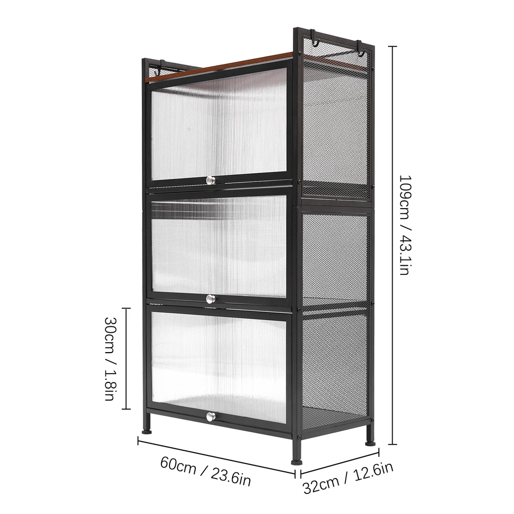 Specification Material: Carbon Steel, PC, E1 Eco-friendly Panel Process: Baking Paint Color: Black Number of Layers: 4 Layers Model: OGJ-ZWJ055 Shape: Rectangular Installation Method: Floor-mounted Door Type: Flip-top Type Assembly Required: Yes Maximum Loading Capacity ( Single Layer ): 20kg/44.09lbs Single Layer Height of Shelf: 30cm/11.8in Product Size: 60*32*109.5cm/ 23.6*12.6*43.1 in Package Included 1 * Storage Cabinet 1 * English Manual All Accessories for Installation 43"Display Cabinet 4 Tier Wine Showcase Filp Up Acrylic Door Craft Storage Shelf Description The simple storage cabinet is made of high-quality carbon steel, PC, and E1 eco-friendly panels, providing you with strong load-bearing capacity. The four-layer structure provides more options for sorting your items. The translucent wave pattern cabinet door allows you to understand the location of the items more clearly. It will be your powerful storage assistant. Number of Layers: 4 Layers Model: OGJ-ZWJ055 Shape: Rectangular Installation Method: Floor-mounted Door Type: Flip-top Type Assembly Required: Yes Maximum Loading Capacity ( Single Layer ): 20kg/44.09lbs Single Layer Height of Shelf: 30cm/11.8in Product Size: 60*32*109.5cm/ 23.6*12.6*43.1 in Specification Material: Carbon Steel, PC, E1 Eco-friendly Panel Process: Baking Paint Color: Black Package Included 1 * Storage Cabinet 1 * English Manual All Accessories for Installation Features&Highlights Easy to Install: The simple structure, enough required parts and an English instruction can help you complete the installation more quickly and accurately. Storage Assistant: The four-layer structure allows you to plan the classification of items more clearly. You can use it to store dishes, bags, shoes, or books to meet almost all your storage needs. User-friendly Design: The flip-top door is easy to open and close. At the same time, the magnetic latch on the door makes it more airtight, insect-proof and rat-proof. Strong Load-bearing Capacity: The sturdy quadrilateral structure and high-quality carbon steel frame make it have a strong load-bearing capacity (maximum 44.09 lbs for a single layer). You can store heavy objects in it with confidence. High-quality Material: This product is made of high-hardness carbon steel, PC, and E1 eco-friendly plates. The performance of high-temperature resistance , water resistance, and scratch resistance can extend the service life of the product. Large Capacity: Three layers of storage (23.6*12.6*11.8 inch per layer) and 1 layer of open shelf make it possible to store many objects, such as microwave ovens, ovens, etc. Good Air Permeability: The removable back panel and grid side panels provide good air permeability for the storage cabinet and keep the interior items away from odor. Stylish Appearance: The simple lines and classic black can make it a timeless decoration for rooms with different decoration styles, making your room more modern and beautiful. Easy to Clean: The smooth baked paint surface is stain resistant and easy to clean. All you need to do is wipe it gently with a damp rag to clean it. Details 4 Hooks: The four hooks provide more choices and convenience for your storage. You can hang towels, scarves, or other kitchen utensils on them. Semi-transparent Cabinet Door: The wavy PC semi-transparent cabinet door allows you to understand the location of items more clearly, providing more convenience for your search. Safety Guardrail : The top shelf with a safety guardrail provides higher security for the placement of items. Adjustable Foot Pads: Adjustable foot pads provide balance and strong stability on uneven ground. You can easily adjust their height by rotating them. Application This product can be used as a cabinet, bookcase, shoe rack, snack rack, flower rack, etc., and is applicable to the kitchen, dining room, living room, study, etc. Notes It is recommended to place heavy objects evenly to achieve a balanced load-bearing effect. Please allow the slight color difference caused by the shooting light and the 1-3 cm error due to manual measurement, and make sure you do not mind before ordering. Payment Delivery details Terms of sales About us Contact us Payment We accept ebay payment 。 Fees such as import duties, taxes are not included in the item price or shipping costs. These charges are the buyer's responsibility. Delivery details Shipping: 2-9 working days to: USA Terms of sales We maintain high standards of excellence and strive for hundred percent customer satisfaction. Feedback is very important to us. We hope that you contact us immediately before you give neutral or negative feedback, so that we can address your concerns. It is impossible to address issues if we do not know about them! About us Your satis faction is our ultimate goal. We work hard to earn your trust and future business. Our certified technicians have tested each item before shipping. The unit comes with 1 year limited warranty on all manufacturing defects. a) If you receive a defective item, you may return it or ask for a discount. Please contact us within 14 days after you receive the package. b) What you returned must be intact and in its original packaging as re? u. Customer is responsible for shipping costs of the returned item. c) We will cover the cost of shipping back t with the shipping rate indicated in the registration page. We will send you a new unit or refund the full payment you paid. Thank you. Contact us Business Hour Business Hour: Monday To Friday: 8:30 AM to 5:00 PM (Beijing China time) Due to time zones, our reply to your questions may not be immediately. But within above working time, we will reply your email within 24 hours. If it's non-workdays, please kindly be patient and wait till Monday. Please contact us with ebay message. Please feel free to contact us if you have any questions. Monday To Friday: 8:30 AM to 5:00 PM (Beijing China time) Due to time zones, our reply to your questions may not be immediately. But with