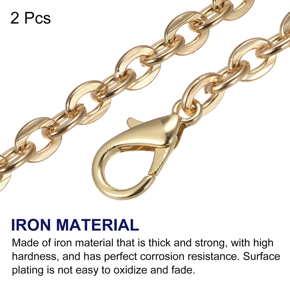 Document Descriptions:The chain strap with a suitable size for you to match with your bag. The length of the chain is 1100mm (43.31 inch), the width of the chain is 5.5mm (0.22 inch), and the weight is 87g.Made of iron material that is thick and strong, with high hardness, and has perfect corrosion resistance. Surface plating is not easy to oxidize and fade.Contains two sturdy and removable metal buckles on both sides of this chain. You just easily clamp the buckles to your bags' D-ring. If you don't need this chain, you also can easily remove it from your bag.This classic chain strap can be used as a bag strap for bag accessories and decorations such as tote bags, handbags, purses, cross body bags, shoulder bags, etc. Instead of a one-size-fits-all style, you can design new bags with different looks and styles.Product Specifications:Material: IronColor: Gold ToneFinish: ElectroplatingLength: 1100mm/43.31"Width: 5.5mm/0.22"Weight: 87gUsed for: Bag Replacement StrapPackage Included:2Pcs x Iron Flat Chain StrapWarm Tips:Because the connection between the chains is too thin, it may catch hair. Beware of it and buy it with caution. Also, please check that our chain length is the right size for your bag before ordering. 43"x0.22" Purse Chain Strap, 2Pcs Purse Handle Shoulder Replacement Strap Gold Descriptions: The chain strap with a suitable size for you to match with your bag. The length of the chain is 1100mm (43.31 inch), the width of the chain is 5.5mm (0.22 inch), and the weight is 87g. Made of iron material that is thick and strong, with high hardness, and has perfect corrosion resistance. Surface plating is not easy to oxidize and fade. Contains two sturdy and removable metal buckles on both sides of this chain. You just easily clamp the buckles to your bags' D-ring. If you don't need this chain, you also can easily remove it from your bag. This classic chain strap can be used as a bag strap for bag accessories and decorations such as tote bags, handbags, purses, cross body bags, shoulder bags, etc. Instead of a one-size-fits-all style, you can design new bags with different looks and styles. Product Specifications: Material: Iron Color: Gold Tone Finish: Electroplating Length: 1100mm/43.31" Width: 5.5mm/0.22" Weight: 87g Used for: Bag Replacement Strap Package Included: 2Pcs x Iron Flat Chain Strap Warm Tips: Because the connection between the chains is too thin, it may catch hair. Beware of it and buy it with caution. Also, please check that our chain length is the right size for your bag before ordering. Hot Item Payment 1.We accept eBay payment . 2.Payment must be received within 7 business days of auction closing. Shipping 1.We ship to your eBay or Paypal address. Please make sure your eBay and Paypal address is correct before you pay. 2.Items will be shipped within 1-3 business day when we received payment. 3.Delivery time depends on destination and other factors. Description Policy 43"x0.22" Purse Chain Strap, 2Pcs Purse Handle Shoulder Replacement Strap Gold Descriptions: The chain strap with a suitable size for you to match with your bag. The length of the chain is 1100mm (43.31 inch), the width of the chain is 5.5mm (0.22 inch), and the weight is 87g. Made of iron material that is thick and strong, with high hardness, and has perfect corrosion resistance. Surface plating is not easy to oxidize and fade. Contains two sturdy and removable metal buckles on both sides of this chain. You just easily clamp the buckles to your bags' D-ring. If you don't need this chain, you also can easily remove it from your bag. This classic chain strap can be used as a bag strap for bag accessories and decorations such as tote bags, handbags, purses, cross body bags, shoulder bags, etc. Instead of a one-size-fits-all style, you can design new bags with different looks and styles. Product Specifications: Material: Iron Color: Gold Tone Finish: Electroplating Length: 1100mm/43.31" Width: 5.5mm/0.22" Weight: 87g Used for: Bag Replacement Strap Package Included: 2Pcs x Iron Flat Chain Strap Warm Tips: Because the connection between the chains is too thin, it may catch hair. Beware of it and buy it with caution. Also, please check that our chain length is the right size for your bag before ordering. Hot Item Payment 1.We accept eBay payment . 2.Payment must be received within 7 business days of auction closing. Shipping 1.We ship to your eBay or Paypal address. Please make sure your eBay and Paypal address is correct before you pay. 2.Items will be shipped within 1-3 business day when we received payment. 3.Delivery time depends on destination and other factors.