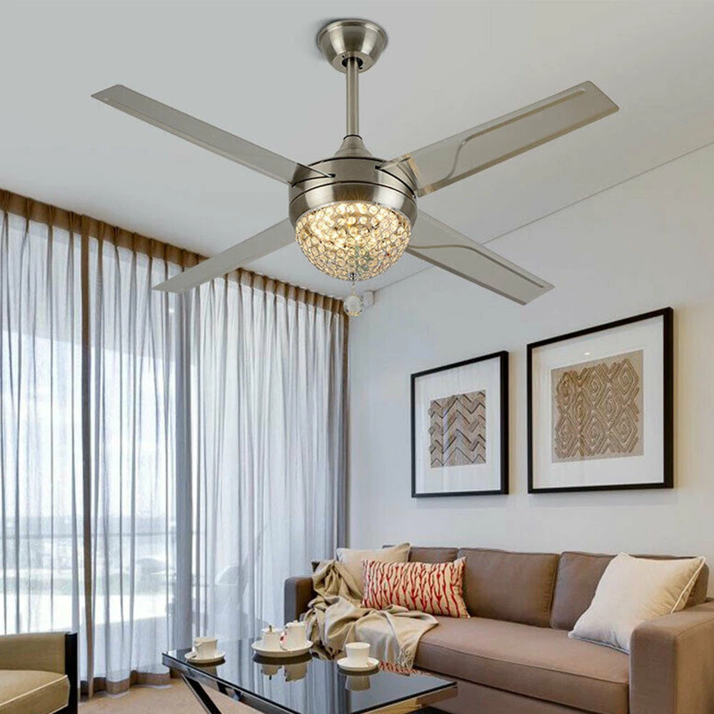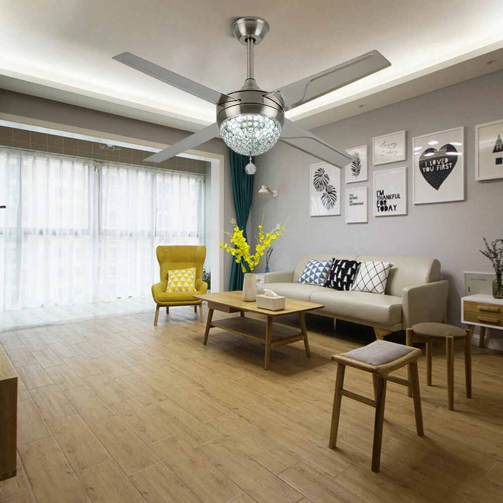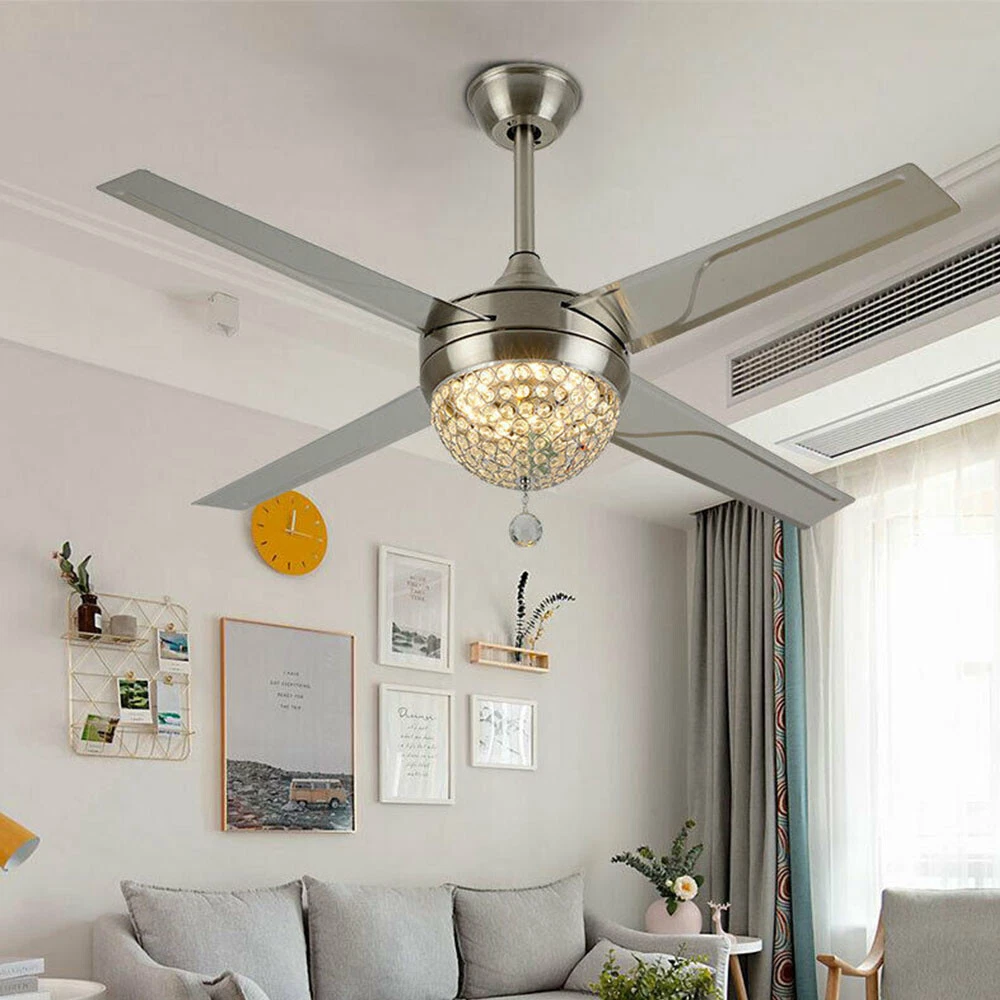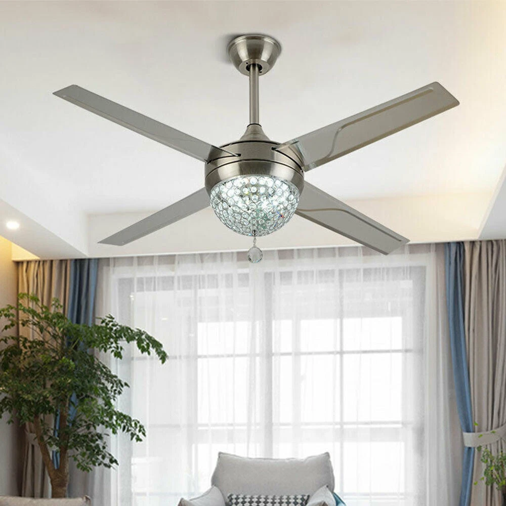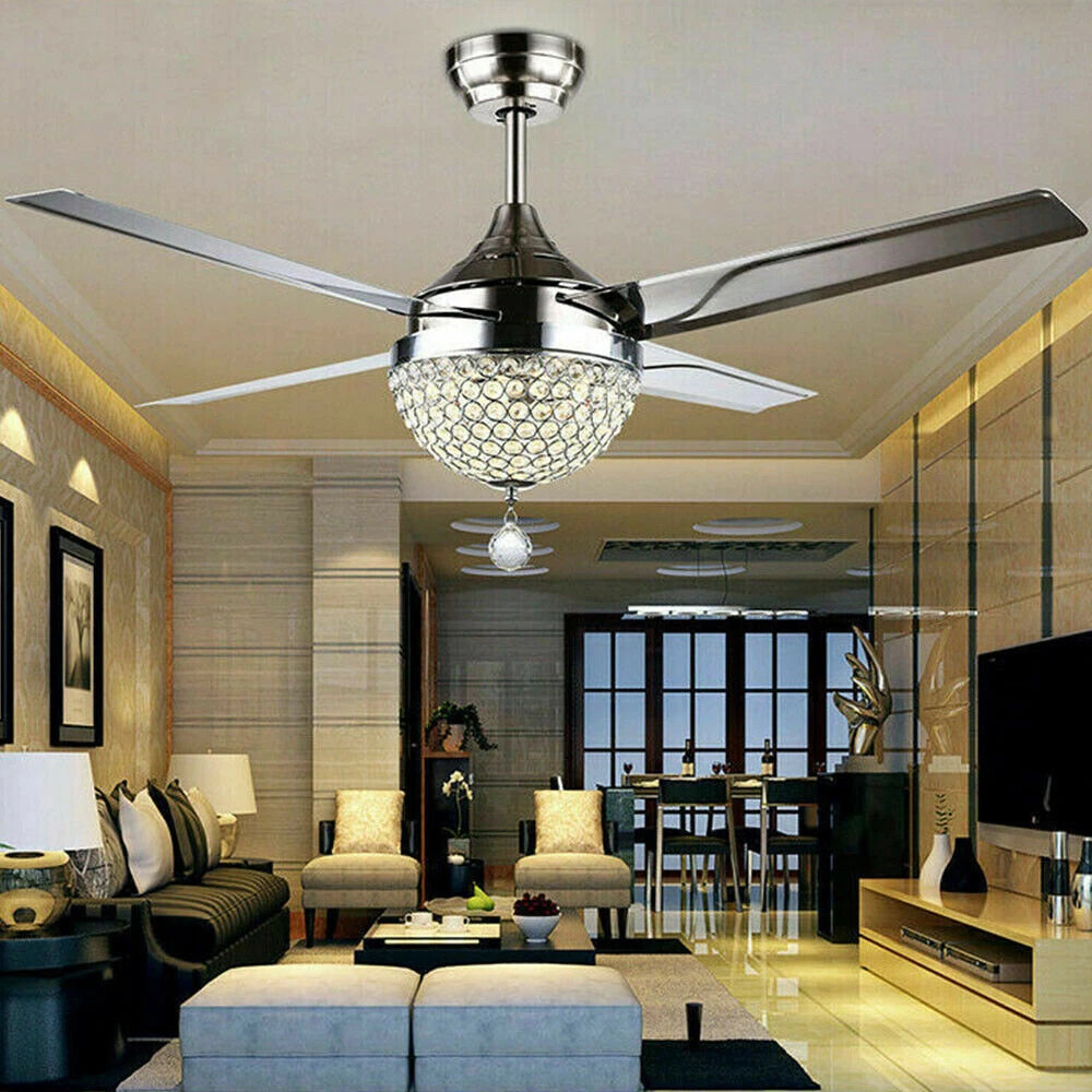 Ceiling Fans HCX185-US simple chandelier fan made of premium materials for stable operation and longer life windward ceiling fan use metal decoration dull clock, more tight security and pursuit the excellence quality for you About this item 【Premium Material】 : A unique metal round arched lampshade is used, bright crystal decoration is placed on the outside. simple but elegant, 4-Stainless Steel Blades, for great air movement. 2 downrod provide 【Great Looking】: Ceiling fan with remote: LED lights have 3 color changes (3000K-4500K-6000K), Fan has 3 speed settings (Low-Mid-High). All these functions can be easily controlled by remote 【Motor】with metal body is designed the imported silicon steel sheet and imported premium bearings, It can extend longer life and smooth operation Ceiling Fa 44" Crystal Fan Ceiling Light LED Chandelier 3 Speed Fan Lamp + Remote Control Modern Crystal Ceiling Fan Light w/ Remote Control 3-speed Chandelier Lamp 44" Features: Premium Material: A unique metal round arched lampshade is used, bright crystal decoration is placed on the outside. simple but elegant, 4-Stainless Steel Blades, for great air movement. 2 downrod provide Great Looking: Ceiling fan with remote: LED lights have 3 color changes (3000K-4500K-6000K), Fan has 3 speed settings (Low-Mid-High). All these functions can be easily controlled by remote Motor: with metal body is designed the imported silicon steel sheet and imported premium bearings, It can extend longer life and smooth operation Ceiling Fan with LED Light : Replaceable LED light will last a longtime and save you the most on your energy bills. Ceiling Fan with Remote Control : Control the light and fan speed separately for ease and convenience. Specification Size: 44inch Blade Material: Stainless Steel Color temperature: CCT 3 light cycles Light source type: LED(Light Kit Included) Control: Remote Control Included Fixture Finish: Crystal Lampshade Voltage: Voltage: 110-120V Fan Mounting Type: Ceiling Mount, Downrod Mount Downrod Length: 2 downrod of3.87 and 7.87inch (included) Remote battery: (Included) Applicable Space:107-312square feet Applicable Place: living room/ bedroom /office and restaurant Installation Instruction For your safety, Please turn off the power before installation Please check parts against the packing list to see if the accessories are available. We provide install instructions for you. please referred to install manual or have a professional electrician. If need any help, please contact us. What you get: 1x Ceiling fan 1x Screws sets 2x Down rods (10CM & 20CM) 1x Remote control 1x nstruction Manual Payment Delivery details Terms of sales About us Contact us Payment We accept ebay payment 。 Fees such as import duties, taxes are not included in the item price or shipping costs. These charges are the buyer's responsibility. Delivery details Shipping: 2-9 working days to: USA Terms of sales We maintain high standards of excellence and strive for hundred percent customer satisfaction. Feedback is very important to us. We hope that you contact us immediately before you give neutral or negative feedback, so that we can address your concerns. It is impossible to address issues if we do not know about them! About us Your satis faction is our ultimate goal. We work hard to earn your trust and future business. Our certified technicians have tested each item before shipping. The unit comes with 1 year limited warranty on all manufacturing defects. a) If you receive a defective item, you may return it or ask for a discount. Please contact us within 14 days after you receive the package. b) What you returned must be intact and in its original packaging as re? u. Customer is responsible for shipping costs of the returned item. c) We will cover the cost of shipping back t with the shipping rate indicated in the registration page. We will send you a new unit or refund the full payment you paid. Thank you. Contact us Business Hour Business Hour: Monday To Friday: 8:30 AM to 5:00 PM (Beijing China time) Due to time zones, our reply to your questions may not be immediately. But within above working time, we will reply your email within 24 hours. If it's non-workdays, please kindly be patient and wait till Monday. Please contact us with ebay message. Please feel free to contact us if you have any questions. Monday To Friday: 8:30 AM to 5:00 PM (Beijing China time) Due to time zones, our reply to your questions may not be immediately. But within above working time, we will reply your email within 24 hours. If it's non-workdays, please kindly be patient and wait till Monday. Please contact us with ebay message. Please feel free to contact us if you have any questions. On Jan 6, 2025 at 21:44:39 PST, seller added the following information: