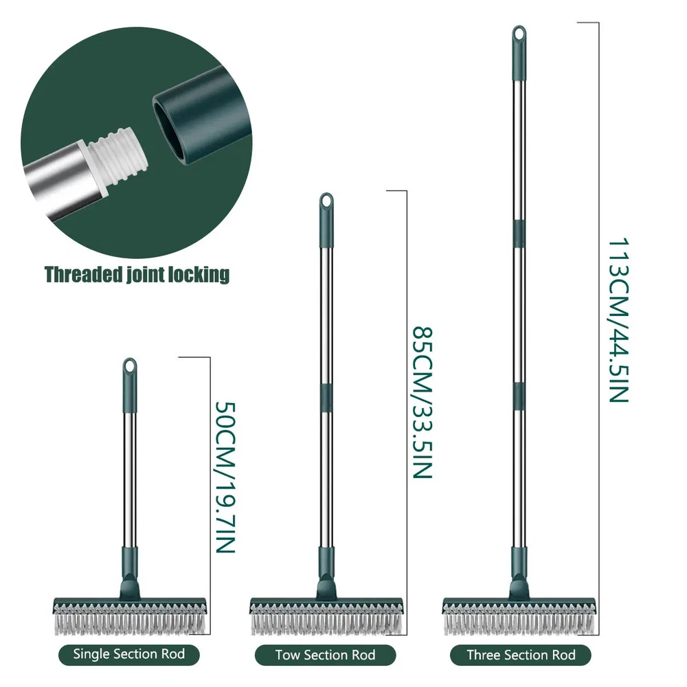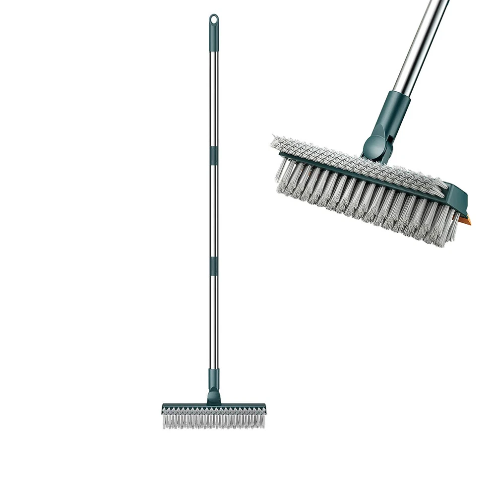 Features: [3 in 1 Multifunctional] Our floor scrubbing brush is composed of upper rod, handle, lower rod, brush head and other hidden parts, with 3 in 1 multifunctional, can be used as a brush and scraper [44Inch Adjustable Long Handle] The main long handle tile scrubbing brush is adjustable, ranging from 19" to 44" 3 rods, you can adjust the floor scrubber handle according to the cleaning task. Makes you more comfortable and sweeps without bending over. [45° Rotation Design] Our rotating bathroom kitchen floor crevice cleaning brush is designed with a 45 degree effort saving angle between the grout brush head and handle to reach corners, grooves and grout lines. [Easy to Use and Clean]Our cleaning long-handled brushes can use the back of the scraper bar to scrub sewage, wipe, and scrub floors after sweeping with just one wipe to clean and dry! Get your cleaning done quickly. Specification: Materials: Stainless Steel Stainless Steel, PP and TPR Color: green and yellow Overall length: 113cm/44.5inch Brush width: 24cm/9.4inch Design: Triangular brush head/soft rubber scraper/brush head can be rotated 180 degrees Application: corners, crevices, windows, glass Applicable occasions: home, kitchen, restaurant Components: Upper rod, handle, lower rod, brush head Package included: 1x Floor Scrub Brush