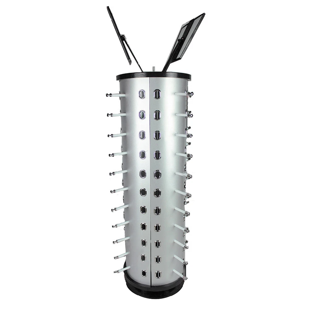 44 Pair Sunglasses Display 360° Rotating Rack Glasses Holder Stand w/ Mirror Features: 360° Rotating Show - You Could Show Your Glasses in All Directions Without Moving the Shelf. Stable and Reliable Base - Small Footprint, Not Easy to Shake or Drop, and Can Hold up 44 Pairs of Glasses. With Hooks and Holes, You Can Flexibly Display a Variety of Glasses, Sunglasses, Reading Glasses, Small Accessories, Etc., Helping to Attract the Attention of Your Customers. With Two Adjustable Mirrors - Eyeglasses Can Be More Convenient and Easily to Tried on. Stylish & Elegant Appearance: the Sunglasses Stand Comes with Elegant Silver and Simple Style. Suitable for Exhibition Display, Shop Display, Home Ornament, Personal Storage and Sunglasses Collector. Specifications: Shape:Round Material: Aluminum +Plastic+ Mirror Size:see Picture Package Include: 1 X Glass Display Rack Payment Delivery details Terms of sales About us Contact us Payment We accept ebay payment 。 Fees such as import duties, taxes are not included in the item price or shipping costs. These charges are the buyer's responsibility. Delivery details Shipping: 2-9 working days to: USA Terms of sales We maintain high standards of excellence and strive for hundred percent customer satisfaction. Feedback is very important to us. We hope that you contact us immediately before you give neutral or negative feedback, so that we can address your concerns. It is impossible to address issues if we do not know about them! About us Your satis faction is our ultimate goal. We work hard to earn your trust and future business. Our certified technicians have tested each item before shipping. The unit comes with 1 year limited warranty on all manufacturing defects. a) If you receive a defective item, you may return it or ask for a discount. Please contact us within 14 days after you receive the package. b) What you returned must be intact and in its original packaging as re? u. Customer is responsible for shipping costs of the returned item. c) We will cover the cost of shipping back t with the shipping rate indicated in the registration page. We will send you a new unit or refund the full payment you paid. Thank you. Contact us Business Hour Business Hour: Monday To Friday: 8:30 AM to 5:00 PM (Beijing China time) Due to time zones, our reply to your questions may not be immediately. But within above working time, we will reply your email within 24 hours. If it's non-workdays, please kindly be patient and wait till Monday. Please contact us with ebay message. Please feel free to contact us if you have any questions. Monday To Friday: 8:30 AM to 5:00 PM (Beijing China time) Due to time zones, our reply to your questions may not be immediately. But within above working time, we will reply your email within 24 hours. If it's non-workdays, please kindly be patient and wait till Monday. Please contact us with ebay message. Please feel free to contact us if you have any questions.