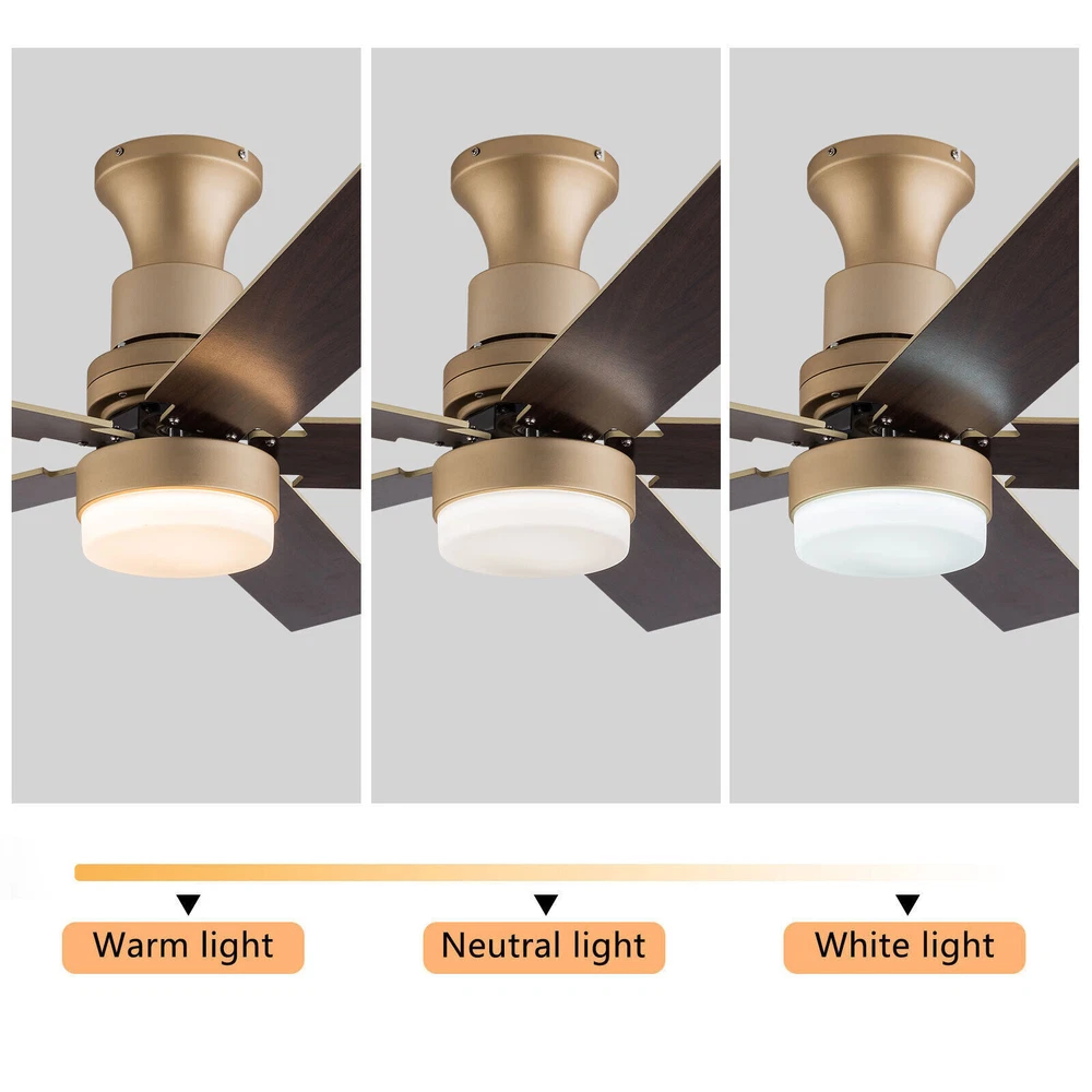 Dimensions: 44Inch, 5 Retractable Blades Light Wattage: 36W-48W 1.Features`: Easy installation,Compact Design Warranty.: 3 Years Control: Remote Control Included Light source type: LED(Light Kit Included) *Feature*: Creative Design,Durable Material,Beautiful Color Temperature: CCT 3 light cycles Average Service Life: 5~10 Years Type: Ceiling Fan Motor Wattage: 56W Brand: Unbranded Speed: 6 Characteristic: Convenient Use,Easy Operation,Easy installation Color: Gold Voltage: DC 110 -220V