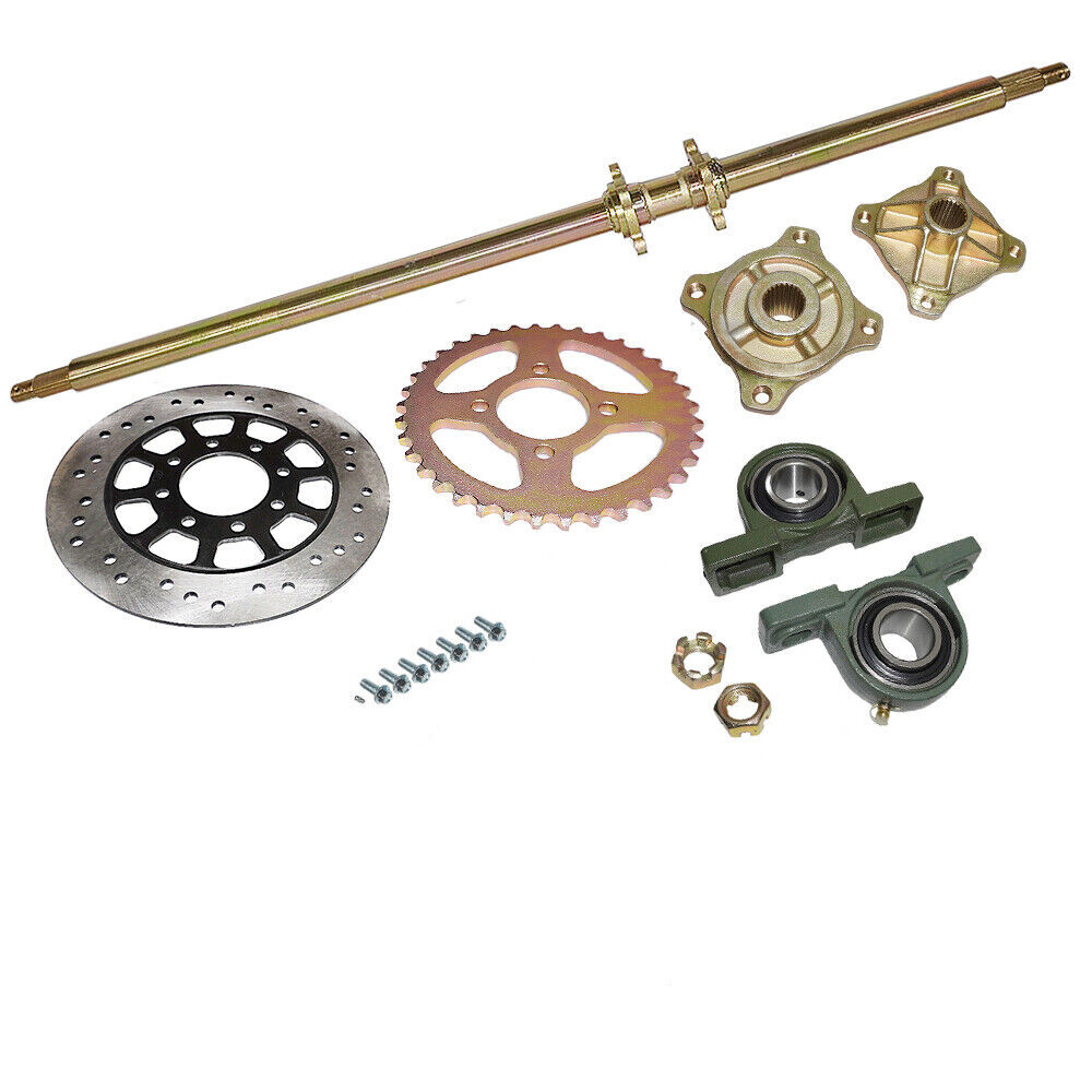 44" ATV Quad Go Kart Rear Live Axle Kit Sprocket Brake Disc Wheel Hub Golf Cart Product function description: NOTE: Installation Manual Is NOT Included Professional Installation Is Highly Recommended Description: This is a live axle kit for DIY rebuild Go Kart, ATV, Quad and Drift Trikes Axle Overall length (from end to end): 1120mm (44") The thickest part of the axle is 33mm (1.3") Chain Sprocket: 530 37 Tooth 58mm Brake Disc Diameter: 220mm(8.66") Spline teeth: 24T Fits (For the reference): Perfect for DIY gokart projects or rebuilds Fit for quad ATV buggy go kart Fit many atv quads, go karts such as atomik , motowork, DHZ , LEI etc Package includes : Rear Axle + Pair of pillow blocks + Sprocket + Brake Disc + Pair of 4 bolt wheel hubs 44" Go Kart Rear Live Axle Kit Shaft Sprocket Pillow Block ATV Quad Golf Cart 44" ATV Quad Go Kart Rear Live Axle Kit Sprocket Brake Disc Wheel Hub for Golf Cart Product function description: NOTE: Installation Manual Is NOT Included Professional Installation Is Highly Recommended Description: This is a live axle kit for DIY rebuild Go Kart, ATV, Quad and Drift Trikes Axle Overall length (from end to end): 1120mm (44") The thickest part of the axle is 33mm (1.3") Chain Sprocket: 530 37 Tooth 58mm Brake Disc Diameter: 220mm(8.66") Spline teeth: 24T Fits (For the reference): Perfect for DIY gokart projects or rebuilds Fit for quad ATV buggy go kart Fit many atv quads, go karts such as atomik , motowork, DHZ , LEI etc Package includes: Rear Axle + Pair of pillow blocks + Sprocket + Brake Disc + Pair of 4 bolt wheel hubs Payment Delivery details Terms of sales About us Contact us Payment We accept ebay payment 。 Fees such as import duties, taxes are not included in the item price or shipping costs. These charges are the buyer's responsibility. Delivery details Shipping: 2-9 working days to: USA Terms of sales We maintain high standards of excellence and strive for hundred percent customer satisfaction. Feedback is very important to us. We hope that you contact us immediately before you give neutral or negative feedback, so that we can address your concerns. It is impossible to address issues if we do not know about them! About us Your satis faction is our ultimate goal. We work hard to earn your trust and future business. Our certified technicians have tested each item before shipping. The unit comes with 1 year limited warranty on all manufacturing defects. a) If you receive a defective item, you may return it or ask for a discount. Please contact us within 14 days after you receive the package. b) What you returned must be intact and in its original packaging as re? u. Customer is responsible for shipping costs of the returned item. c) We will cover the cost of shipping back t with the shipping rate indicated in the registration page. We will send you a new unit or refund the full payment you paid. Thank you. Contact us Business Hour Business Hour: Monday To Friday: 8:30 AM to 5:00 PM (Beijing China time) Due to time zones, our reply to your questions may not be immediately. But within above working time, we will reply your email within 24 hours. If it's non-workdays, please kindly be patient and wait till Monday. Please contact us with ebay message. Please feel free to contact us if you have any questions. Monday To Friday: 8:30 AM to 5:00 PM (Beijing China time) Due to time zones, our reply to your questions may not be immediately. But within above working time, we will reply your email within 24 hours. If it's non-workdays, please kindly be patient and wait till Monday. Please contact us with ebay message. Please feel free to contact us if you have any questions. On Feb 24, 2025 at 00:04:57 PST, seller added the following information: