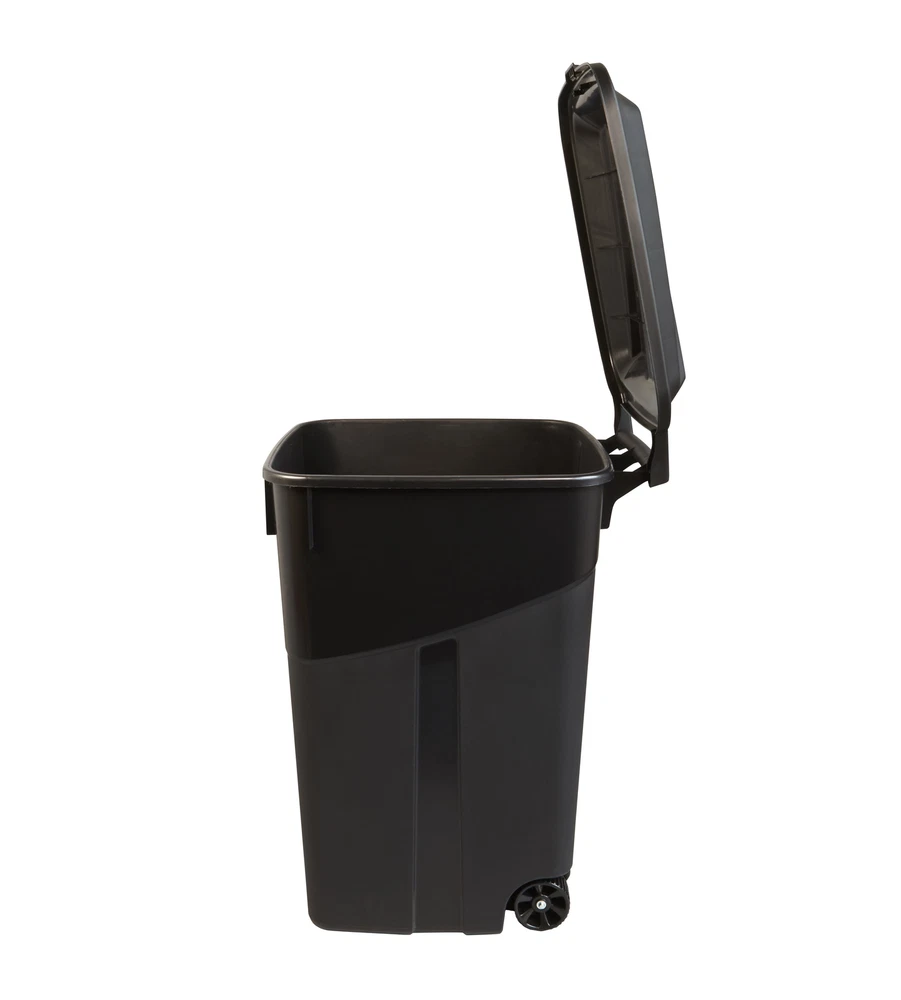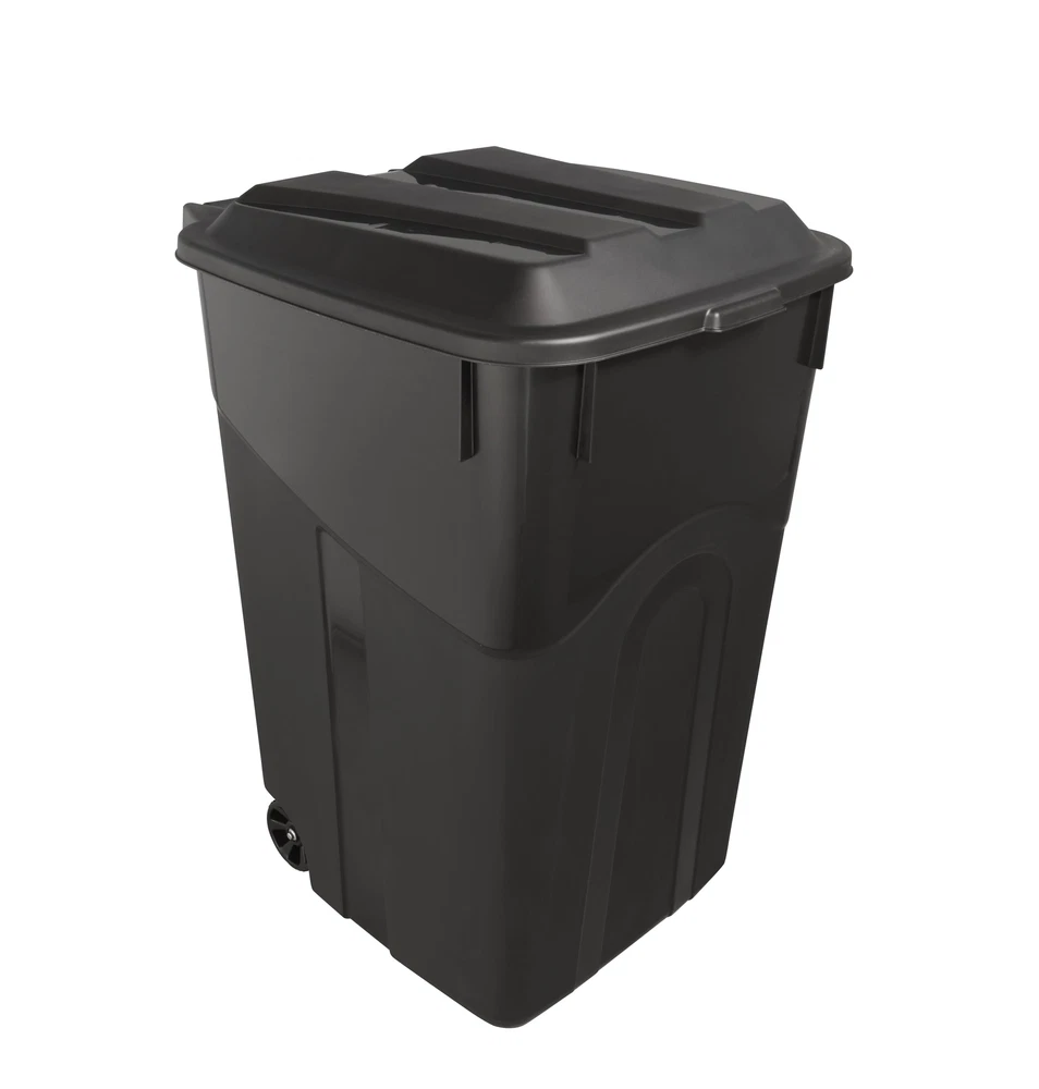 The 45 Gallon Wheeled Heavy Duty Plastic Garbage Can comes with a strongly secured lid attached with a convenient hinge. The attached lid clicks into place, ensuring the lid stays securely closed when not in use. Never worry about losing the lid in windy conditions. The easy grip handle with pass through divided handle design and the rugged wheels makes transporting your trash from the curb and back effortless. This heavy duty trash can is suitable for both indoor and outdoor storage. On Dec 22, 2024 at 17:41:45 PST, seller added the following information: