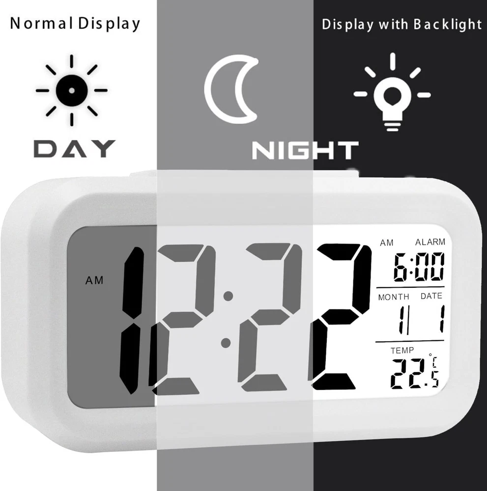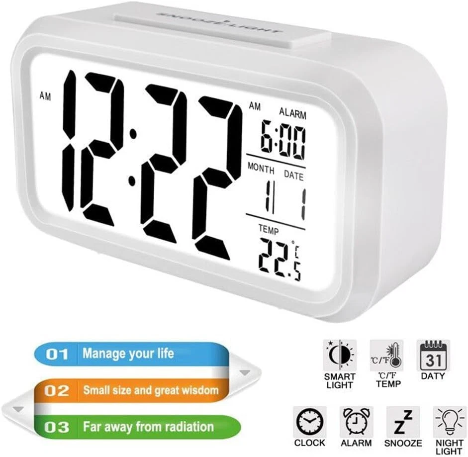 The battery for battery clock can last about 46 months,cordless ,you can take it anywhere,such as bathroom,bookshelf,nightstand, don't have to worry about whether there's a plug or not. We clock store aim to supply affordable, durable and good-looking alarm clocks. BS clock Small Alarm Clock for Kids Classic clock for bedroom,living room,bathroom,kitchen It's round corner shape,really cute and nice.It's suitable for your bedroom and furniture. It’s not only an daily clock, but also a nice room thermometer for your beside clock. Bathroom Clock For bathroom clock,you could keep the time of the morning. Bookshelf Clock Bookshelf Clock Kitchen Clock Great size, you could put in at kitchen table,easy to hold time. 12/24 Hr You could choose 12Hr or 24Hr. Why choose our battery operated clock? Battery opearted, no any cable,you can set it anywhere. Easy read,great for kids who are not very good at reading a clock with hands. Many colors, everyone could have your own color. Easy to set, you could easy to set time, date and clock Enjoy the time with your family ,and make your girls and boys know how to stay with time,the clock you may need it 【Larger Numbers】The 4.5" LED digital display has large 2.1" tall numbers, can be read easily. 【Alarm Clock Battery Operated】This basic alarm clock is powered by 3 xAAA batteries only (not included), which can keep Constantly Big 4.5'' LED digit time display for more than 12 months. Battery operated (no cords) allows it to be used anywhere you need a clock! 【Smart Nightlight 】The small clock features a night light and can be freely to choose three dimmers for LOW - HIGH - OFF as desired. This simple alarm clock can not only be used as a night light to help parents take care of their children better and makes the room cozy, but also make it easier to check the time in the dark. 【Extra Loud Alarm Clock】 This alarm clock has a gradually faster beep noise which continues for 90 seconds. Before the alarm stops itself, top snooze button can be continually pressed to get an extra 8-minute nap.It doesn’t matter how much of a heavy sleeper you are. 【Regular Features】Includes snooze time (5 minutes), 12/24 hour time format, calendar, and Indoor Temperature(C or F), easy for kids, teens to use, basic bedroom bedside table desk gift alarm clock.