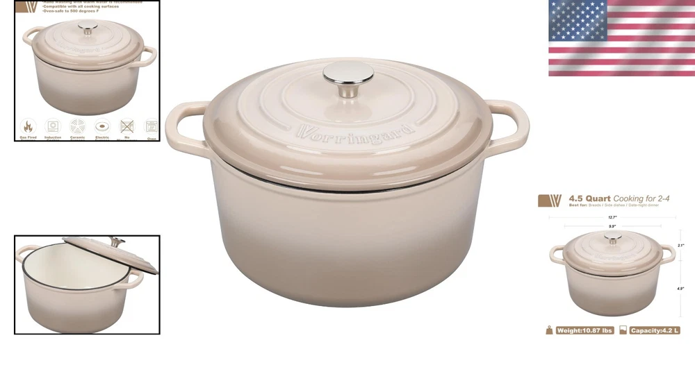 4.5 Quart Enameled Cast Iron Dutch Oven for Perfect Sourdough Baking - Latte ‹ › ‹ › ‹ › ‹ › ‹ › ‹ › ‹ › ‹ › ‹ › 4.5 Quart Enameled Cast Iron Dutch Oven Color: Latte Versatile Use Perfectly crafted for slow-cooking, simmering, braising, baking, and roasting a diverse range of delectable recipes. Seamlessly transitions from refrigerator to stovetop, oven to table. Compatibility Compatible with all cook top types including gas, electric, ceramic, and induction. Oven safe up to 500°F, ensuring a range of culinary experiments. High-Quality Construction Heavy-duty cast iron ensures exceptional heat retention and even distribution, reducing energy consumption. Constructed with non-toxic, PFOA & PTFE free materials for safe cooking. Personalize Your Kitchen Available in a variety of stunning colors: red, blue, green, latte, and white to beautifully complement your kitchen décor. Dimensions: 12.7 x 7 inches for classic versatility. A Thoughtful Present This Dutch oven makes a perfect gift choice for birthdays, housewarmings, and weddings, combining elegance and functionality. Why Choose Our Enameled Cast Iron Dutch Oven? Experience the beauty of classic design coupled with advanced craftsmanship. Our enameled cast iron Dutch oven is not only a stunning centerpiece for your kitchen but also a durable companion for all your culinary adventures. Engineered with ergonomic looped handles and a snug-fitting lid adorned with a stainless steel knob, it meets all your professional and home cooking needs. With proper care, this resilient cookware will stand the test of time, becoming an integral part of your family’s culinary legacy. Care Instructions Wash with warm soapy water using a nylon scrub brush to preserve the enamel finish. Dry promptly and thoroughly while the cookware is still warm. Store in a dry, ventilated space to maintain optimal condition. Invest in a kitchen essential that promises performance, aesthetics, and heirloom durability - your journey to perfect sourdough baking starts here! Shipping Free & Fast Shipping - We offer free shipping to most of the USA with a normal delivery time of 3-7 days. However, due to the current situation, additional delivery time (up to 3 weeks) may be required for some items. Alternative Carriers - We may use alternative carriers (e.g. USPS, FedEx, UPS, etc.) to ensure your package arrives safely and on time. Due to the use of multiple carriers, we are unable to provide a tracking number automatically. Handling Time - Orders are processed and shipped within 1-2 business days of receiving cleared payment. Shipping Restrictions - Shipping to Alaska, Hawaii, Puerto Rico, Guam, and other US territories may incur shipping charges or delivery restrictions. Please contact us before ordering, or your order can be refunded/cancelled. State Restrictions - There may be restrictions based on your state of purchase. For example, certain items may not be shipped to California due to state regulations. Contact for Tracking Updates - If you require tracking updates or have any concerns about the delivery of your order, please feel free to contact us, and we will be happy to assist you. Return 30-Day Hassle-Free Returns - We want you to be completely satisfied with your purchase. If you are not, you can return the item within 30 days of receiving it for a full refund or exchange. Easy Return Process - To start a return, simply contact us and we will provide you with a prepaid return shipping label and detailed instructions. Restocking Fee - There are no restocking fees for returns. However, the buyer is responsible for return shipping costs if the return is not due to a seller's error. Refund Processing Time - Refunds will be processed within 5 business days of receiving the returned item in its original condition. Payment We accept all major credit cards, PayPal, and Apple Pay for your convenience. Your payment information is secure and encrypted to ensure a safe and seamless transaction. Please complete your payment within 3 days of purchase to avoid any delays in shipping. Feedback Your feedback is extremely important to us. We strive to provide the best products and customer service possible. If you are satisfied with your purchase, please take a moment to leave us a positive review. If you have any concerns or issues with your order, please contact us before leaving negative feedback. We are committed to resolving any problems and ensuring your satisfaction. Contact Us If you have any questions or concerns, please feel free to reach out to our customer support team. You can contact us through the eBay messaging system. We are available Monday to Friday, 9:00 am to 5:00 pm EST, and we will do our best to respond to your inquiry within 24 hours. Buy it now and enjoy a pleasant shopping experience! UPC: Not Set Capacity: 4.5 Quart Item Diameter: 12.7 inches Item Width: Not Set Item Length: Not Set Model: Not Set Item Weight: 10.5 pounds Heat Resistance: 500 degrees Fahrenheit Item Depth: 7 inches Item Height: Not Set Unit Quantity: 1 Stove Type Compatibility: Electric,Gas,Induction,Ceramic Set Includes: Lid Material: Cast Iron Features: Easy Clean,Oven-Safe,With Lid Type of Oven: Electric,Gas,Induction Brand: Unbranded Type: Dutch Oven Color: Latte Surface Coating: Enameled Shape: Round Country/Region of Manufacture: Not Set Time Period Manufactured: Not Set Number of Items in Set: One-Piece Unit Type: lb Vintage: Not Set Antique: Not Set Original/Licensed Reproduction: Not Set