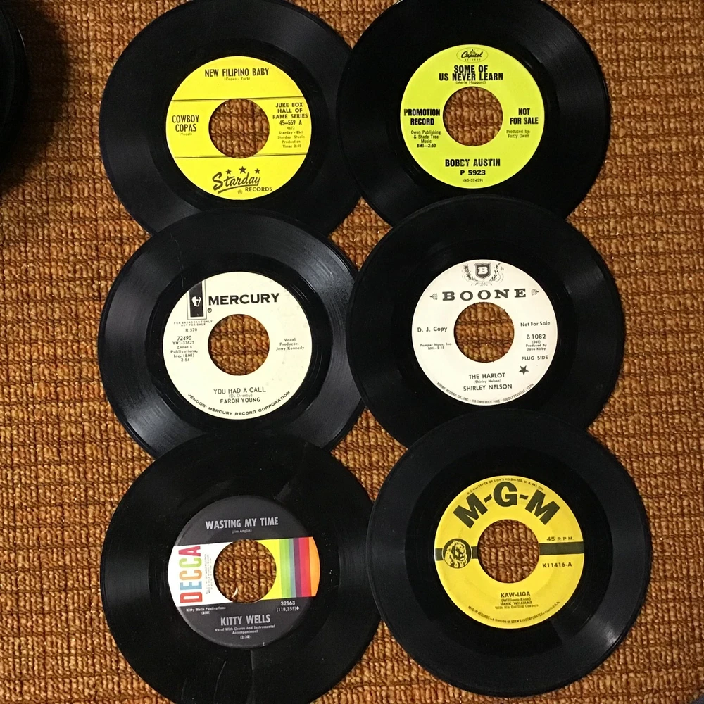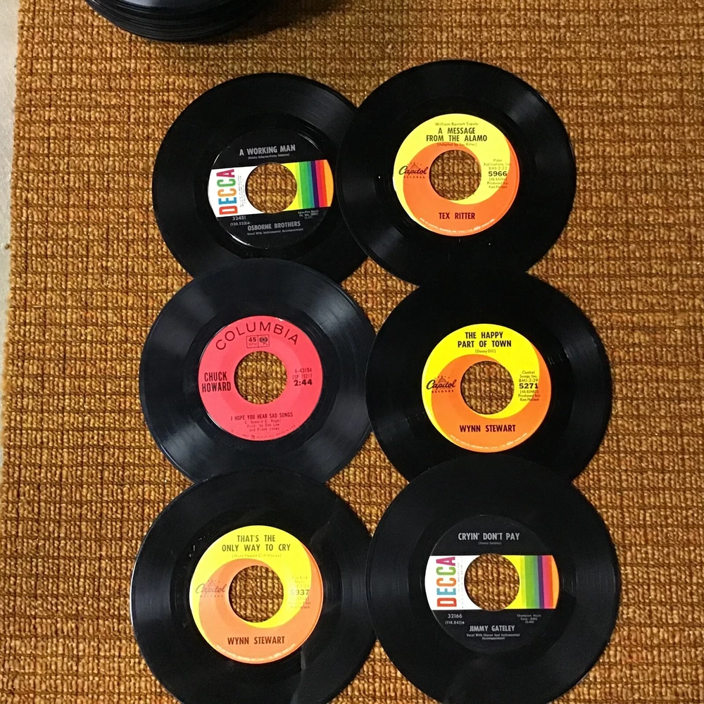 45 RPM 80 + Job Lot-50s-60s Country / Honky Tonkers # 3 NO POP STUFF VG to M- OKay-- This is the third batch of 45s ( no longer listing ramdom collections ) 80+ 45s. I have sleeved them all--easier to show unsleeved. All are CLASSIC country from the 50s and 60s-- I may have put one or two 70s in there BUT NO 80s--todays cra.....stuff-- NO Kenny, Milsap , Mandrell , Urban Cowchip , Denver , ONJ Tay Tay or the dude who made fun of all the artists that are in these piles .. you will find nice Starday , King , some small label -- and DECCA , RCA , CAPITOL and COLUMBIA Hey it's only a buck opening bid -- so you flippers and have a go and maybe get a few goodies for yourselves!!! Postage will be $ 8 USD Overseas TBD On May-01-16 at 09:08:42 PDT, seller added the following information: Revision- my shipping policies are as stated in the description - ignore anything saying local pick up only-- I do ship worldwide ALL GLOBAL SHIPPING HAS BEEN REMOVED-- ALL OVERSEAS CUSTOMERS CAN NOW CHOOSE 1st CLASS SHIPPING record