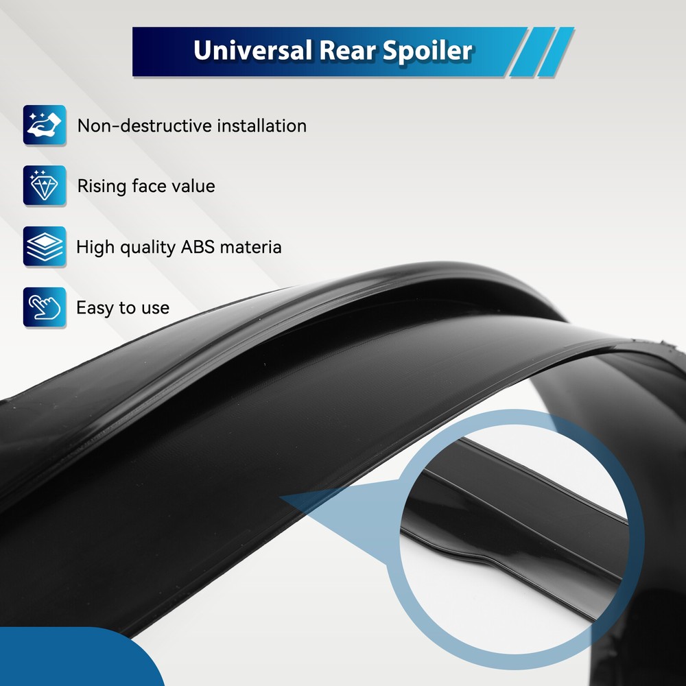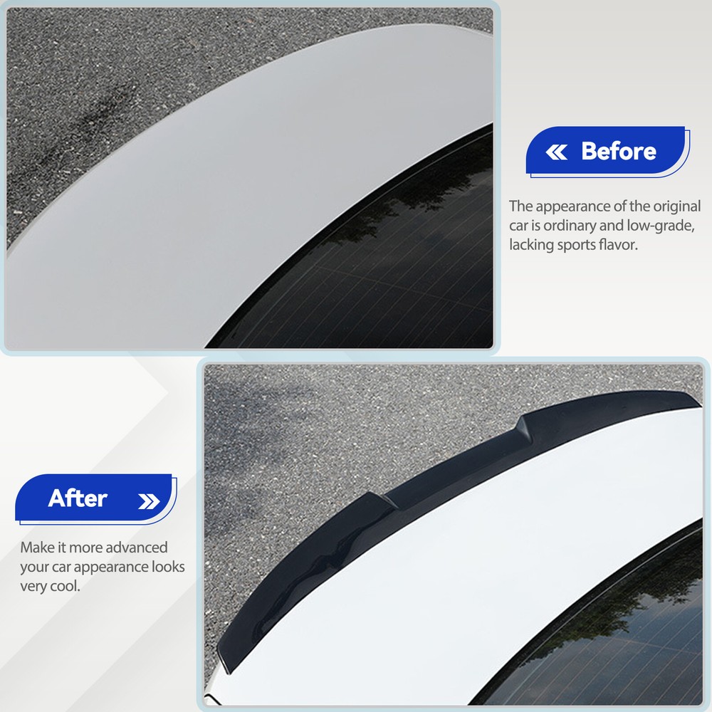 This spoiler gives my car a sleek, sporty look without being over the top. The black finish is clean and matches perfectly. It was easy to install with basic tools, and even though it arrived slightly bent, leaving it in the sun fixed it right up. Great value for the price—definitely upgrades the car’s appearance!