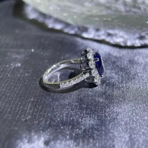 4.05 Ct Cushion Cut Natural Sapphire & Diamond Wedding Ring 14K White Gold Solid