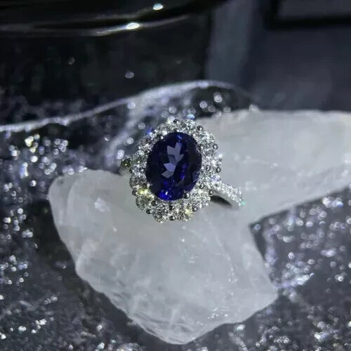 $ 157.096.10 Ct Oval Cut Natural Sapphire Diamond Engagement Ring 14K Solid White Gold