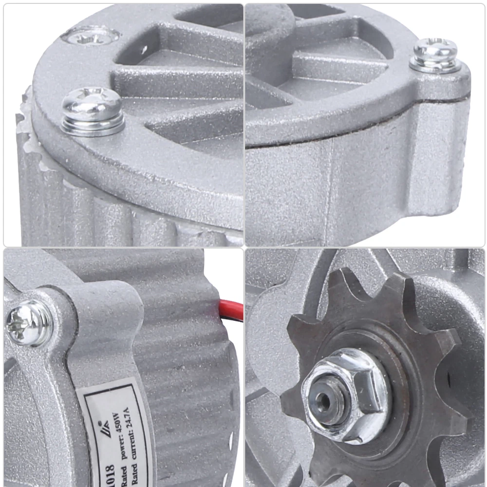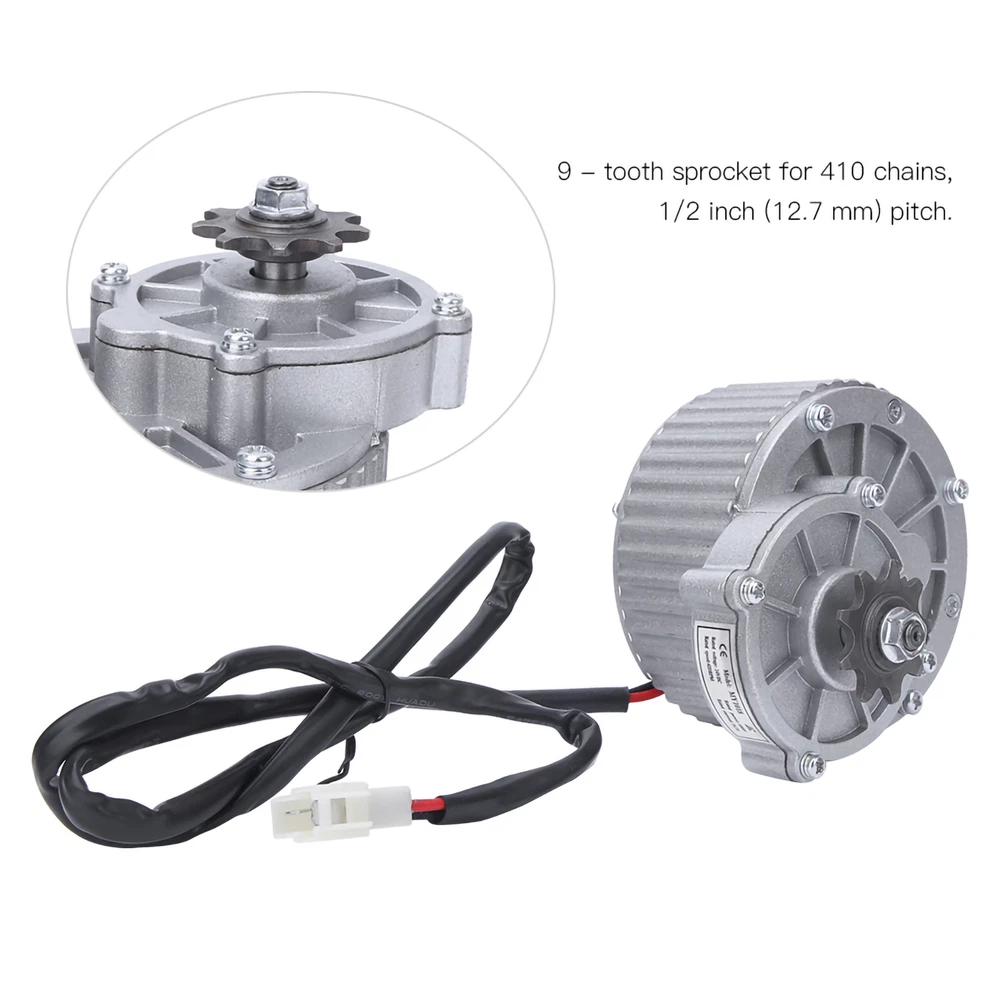 Feature: 1. DC brush motor, easy to control, can provide stable speed, sensitive braking and steering control. 2. The motor shell is made of durable metal material, strong and reliable, protect the internal circuit, good for heat dissipation and avoid thermal overload. 3. 9 - tooth sprocket for 410 chains, 1/2 inch (12.7 mm) pitch. 4. Suitable for DIY bike lover, the drive compatible with the standard bike chain (1/2 inch separation distance ). 5. Professional manufacturing, directly replace your old or broken one. 6. Equipped with 12# power cord, easy to install and operate Specification: Item type: Electric Motor Material: aluminum alloy Weight: Approx. 2210g Color: As picture shown Type: Brush. Rated voltage: 24V DC Output power: 450W Rated speed:420 RPM Rated current: 25A Chain wheel: 410-9T Transmission ratio: 7.18:1 Sprocket output : 1.43 N.m Package List: 1 x Electric Motor 1. Our listing price includes the value of goods,packaging cost,and export taxes,not including international duties. 2. duties,taxes,and charges are not included in the item price or shipping fee. 3. T he duties are buyers' responsibility .Please check with your country's customs office determine what these additional costs will be prior to your purchase. 4. All disputes arising from the duties will be submitted to ebay for solution. 1. Any questions, pls. contact us via ebay message or email us. We will reply your message within 48 hours. If you do not receive our reply within 48 hours, pls. post a message again because sometimes our message system may block some emails. 2. If you are satisfied with our service, pls. kindly leave us a positive feedback and give us the Detailed Seller Rating with all " 5 " in very area 3. Our aim is to provide Level Customer Service, your recognition will encourage us greatly and serve you better. We strive to keep all our customers satisfy. We will do our up most to exceed your expectations in customer service, communication and dispatching of your orders. On Jan 9, 2025 at 09:58:42 PST, seller added the following information: