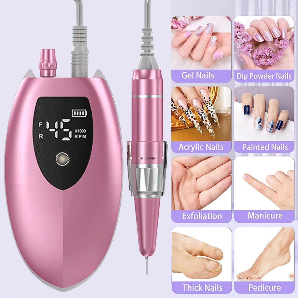 45000RPM Electric Nail Drill Machine Portable Manicure Machine File US Stock BK