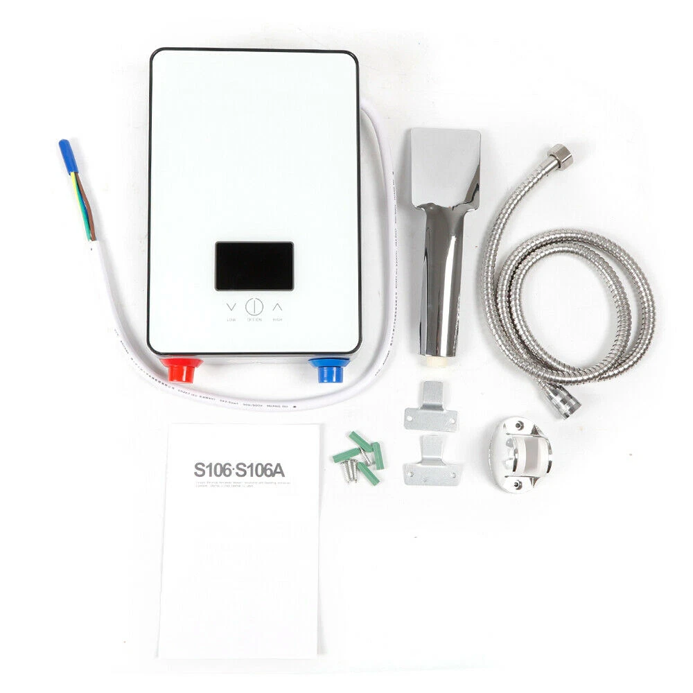 Description Are you still bothered by the constant lack of hot water in the shower? Or still annoyed that your water heater is too slow to get hot water? If you buy this instant water heater from us, then all these worries will be solved, and it can also bring you a comfortable bathing experience. Specifications Condition: 100% Brand New Material: Tempered Glass Panel, Stainless Steel Color: white, blue, gold Style: Vertical Product Type: All-in-one Installation Method: Wall-mounted Control Mode: Touch Control Support Thermostat: Yes Display Screen: LED Rated Voltage: AC 110V / 50 HZ Rated Power: 4500W Rated Current: 40.9A Rated Water Pressure: 0.6Mpa Waterproof Level: IPX4 Temperature: 30-55℃/86-131°F(Water Flow Adjustable) Maximum Temperature: 55°C/131°F Water Heater L ❤❤❤Welcome to royalfeatured ❤❤❤ 13 Description Are you still bothered by the constant lack of hot water in the shower? Or still annoyed that your water heater is too slow to get hot water? If you buy this instant water heater from us, then all these worries will be solved, and it can also bring you a comfortable bathing experience. Specifications Condition: 100% Brand New Material: Tempered Glass Panel, Stainless Steel Color: white, blue, gold Style: Vertical Product Type: All-in-one Installation Method: Wall-mounted Control Mode: Touch Control Support Thermostat: Yes Display Screen: LED Rated Voltage: AC 110V / 50 HZ Rated Power: 4500W Rated Current: 40.9A Rated Water Pressure: 0.6Mpa Waterproof Level: IPX4 Temperature: 30-55℃/86-131°F(Water Flow Adjustable) Maximum Temperature: 55°C/131°F Water Heater Lift: Unlimited Over Temperature Protection: Yes, Over Temperature and Automatic Shutdown Power Protection: Yes, Automatic Shutdown when Water is Turned Off Wire Diameter: ≥4mm/0.157inch Magnetic Card Table: 10 (40) A Mechanical Watch: ≥5(20)A Air Switch: ≥40A Suitable Water Pressure: 0.02-0.6Mpa Wire Requirements ≥ 4 Square Copper Core Wire Hot Outlet Pipe Connector Diameter: Inner 0.7cm / 0.3inch; Outer 2cm / 0.8inch Cold Inlet Pipe Connector Diameter: Inner 1.2cm / 0.5inch ; Outer 2cm / 0.8inch Package Size: 43*13*28cm/16.93*5.12*11.02inch Product Size: 18.6*5.7*27.7cm /7.32*2.24*10.91inch Gross Weight: 2.1kg/4.63lb Net Weight: 2kg/4.41lb Package Included 1 x Instant Water Heater 1 x Shower Head 1 x Outlet Pipe 1 x Shower Bracket 1 x English Manual Other Accessories for Installation Key Features High-quality Material: It uses tempered glass panels and stainless steel heating materials with a built-in anti-electricity wall, which has the advantages of durability, corrosion resistance, high-temperature resistance, power isolation, and long service life. Constant Hot Water : It is equipped with a high precision thermostat, which can continuously lock the water temperature and the water temperature can be adjusted (86-131°F) to bring you stable and comfortable hot water even in the case of water pressure fluctuations. And the machine with power-off memory function for your convenient use. Efficient: It has an instant heating function, even in winter you can get hot water in three seconds and it is especially suitable for big families. Low Rated Pressure : The starting water pressure is from 0.02Mpa to 0.6Mpa, so it can provide you with hot water continuously and steadily no matter whether you live in a high-rise or old neighborhood or use it during peak water consumption. High Safety: It has automatic power-off and over-temperature protection to give you a safe user experience. Energy-saving: It uses live water that doesn't need to be stored, so it's less likely to harbor bacteria and healthier. And the instant-on design allows you to precisely control the amount of water used, saving electricity and water. Waterproof : It has a waterproof rating of IPX4, which can effectively protect the product from water. You can install it in wet places such as bathrooms, and kitchens with confidence. Hot and Cold: This product provides you with a hot and cold design, which is very thoughtful and practical. Hot water can effectively remove grease and stains from your dishes. Warm water will not only take care of your mouth and skin but also make you feel warm when washing your hands in winter. Instant Temperature Display: This product provides you with a real-time display of the water temperature, so you can stop measuring the temperature by hand. And the large LED display makes the temperature clear and easy to read, so even the elderly can easily identify it. Space Saving: Our product is like an 11.02*7.48*2.56-inch small box and wall-mounted design can save space in your home. Easy Installation : The domestic water heater has a mini body for easy vertical installation in bathrooms, kitchens and under sinks. A standard 1/2 connection (inlet or outlet) allows direct connection to a conventional domestic hose fitting. Details Shower and Bracket: Our product is equipped with a shower and bracket, so you do not have to buy another, more economical. Touch Botton : You can start it with a single button, which makes it easier to operate when you showering. Water Labeling: At the bottom of the product there are two hot and cold sockets labeled with red and blue to indicate hot and cold water respectively, very convenient for you to distinguish and install. Application It is suitable for use in kitchens, bathrooms, toilets, etc. How to Install Drill into the wall with an electric drill(not included). Fixing the water heater with screws. Connecting hot water outlet & cold water inlet, and let cold water go through the water heater. Connecting water heater to electricity. Testing water heater and finished. Notes Please note that the water heater must be installed ground electrode, and it needs to be connected to the water before powering on. It is forbidden to heat the water heater without water or on frozen weather. Before use, please use your hand to test the water temperature to avoid scalding. Before sales, in