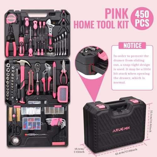 Return Policy Fast Delivery Trusted seller 450-Piece Pink Tool Kit Home Set,Mechanics Tool Set with Drawer Toolbox Storage Case Home Repair Tool Kit Combo Kits Storage Organizer Drawer Case for Men & Women-04 Product Description 【450-PIECE PINK TOOL SET】: Complete tool box with tools, you can have whatever you want. Includes: wrenches, sockets, screwdrivers, pliers, bits, scissors, torpedo level, tape measure, knife, hammer, wire stripper, etc. 【PREMIUM QUALITY TOOLS】: Crafted from heat-treated chrome-vanadium steel, all sockets and wrenches feature a chrome-plated finish for enhanced rust and corrosion resistance. Built to last, these tools meet international standards and ensure long-lasting performance. 【PROFESSIONAL PINK TOOLBOX】: This mechanic tool set contains most necessary tools for mechanics or household projects. Whether it's for home maintenance or all the assembly and repair projects in the workshop, this tool sets will last for years without replacement. Ideal tool kit for home, garage, workshop and DIY enthusiasts. 【CONVENIENT STORAGE & PORTABILITY】: The sturdy toolbox features a drawer for additional storage space, allowing for better organization than traditional tool cases. It makes it easy to store and transport your tools, ensuring quick and easy access when you need them most.In order to prevent the drawer from sliding out, a snap-tight design is used. It may be a little bit stuck when opening the drawer, which is normal. 【RELIABLE TOOLS】:Ideal for women seeking both utility and aesthetic appeal, this pink toolkit blends functionality with a charming feminine flair, making it perfect for home use or as a thoughtful gift. offers you professional customer support and service, if you have any problem, don’t hesitate to contact us anytime! Shipping Returns Payment Shipping Shipping is FREE to all addresses other than APO/PO boxes in the lower 48 states. All our stock ships from US-based warehouses. Shipped via USPS or UPS (depending on location and package weight) Unless stated otherwise, all orders will ship within 24-72 hours of your payment being processed. Check our feedback to see the great reviews of FAST shipping we offer. Returns Seller does not accept returns Payment We currently accept payment via eBay managed payments only. Once payment is cleared, we will dispatch your shipment within 1-3 business days. Please refer to the "Shipping" tab for more information regarding shipping speed to your destination.