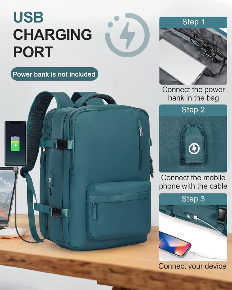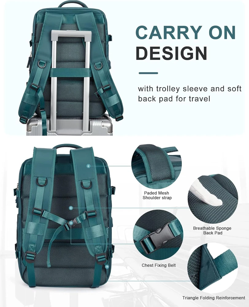 1. This backpack is a game-changer for travel and work! The spacious design fits everything I need, including my laptop, without feeling bulky. The quality materials and comfortable straps make it perfect for long trips, and it easily fits under plane seats. Love the sleek dark blue color—it looks professional yet stylish. Highly recommend for anyone who needs a durable, functional, and flight-approved bag!