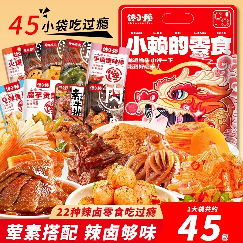45PCS Chinese Snack box Asian korean japanese local specialty duck neck Snack box 45 pieces Chinese local specialty Asian food secret box appetizer duck neck Total 45 pieces delicious snacks with gift box wrap All you can eat in one time Directly from the origin, enjoy local taste !! v acuum packed, fresh arrived