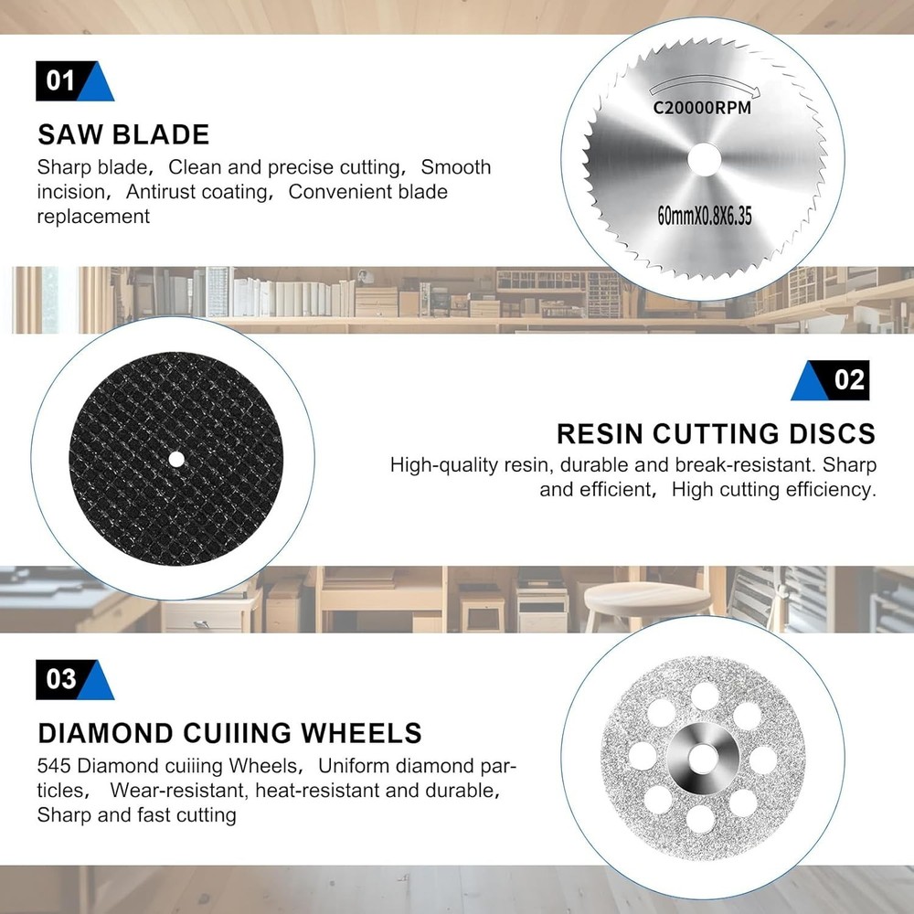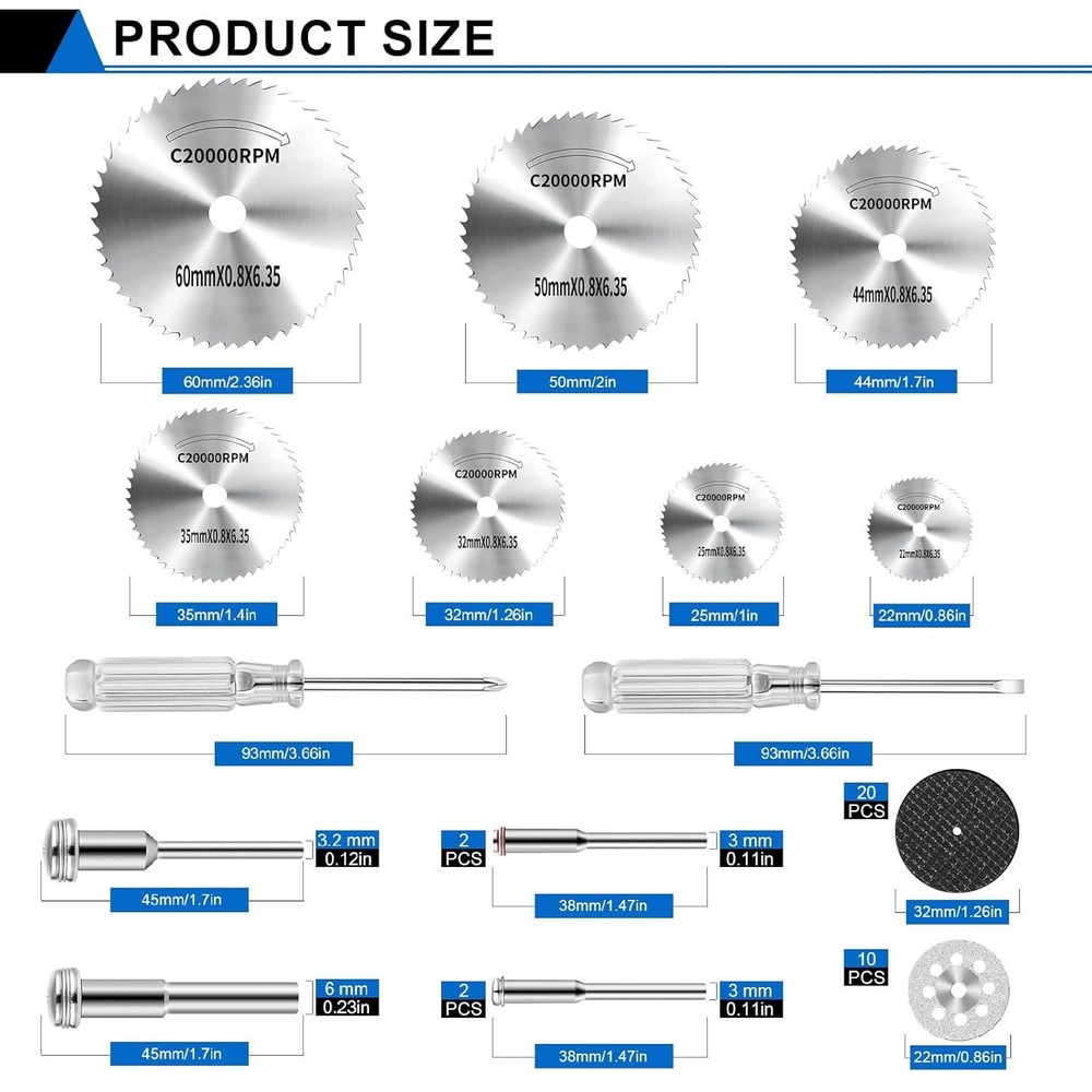 45Pcs gupawix Cutting Wheel Kit for Dremel Rotary Tools,Diamond Cutting Discs,HSS Circular Saw, Fiberglass Cut-Off Wheels with 6Pcs Mandrels Rotary Tool Accessories for Cutting Metal, Wood, Stone, PVC Unique Personality: gupawix provide awesome set of 45-piece cutting wheels for amazing value,you will get including 7 HSS saw blades,20 resin cutting wheels,10 diamond cutting discs,6 mandrels, and 2 screwdrivers,offer speed and efficiency for all your cutting tasks High-Performance Diamond Cutting Wheels: The diamond cutting wheels are designed for precision and durability, offering exceptional performance when cutting through gems, jade, and glass. These high-quality tools ensure smooth cuts and efficient work, making them essential for any DIY projects or professional needs Efficient Resin Cutting Discs: With low heat generation and a thin cutting line, our resin cutting discs are perfect for cutting metals, plastics, and even chassis modifications. These cutting wheel accessories are suitable for use with electric drills and hanging grinders Versatile Cutting Wheel Set: Compatible with most power rotary tools. ,the cutting wheel set for rotary tool is suitable for cutting wood, pvc,gem, glass, aluminum alloyand even ceramics.they are a great tool as well as perfect gift for DIY hobbyists Easy to Install: These cutting wheel set for rotary tool are easy to install and replace. Perfect Match the sharp, durable blades ensure smooth, clean cuts every time