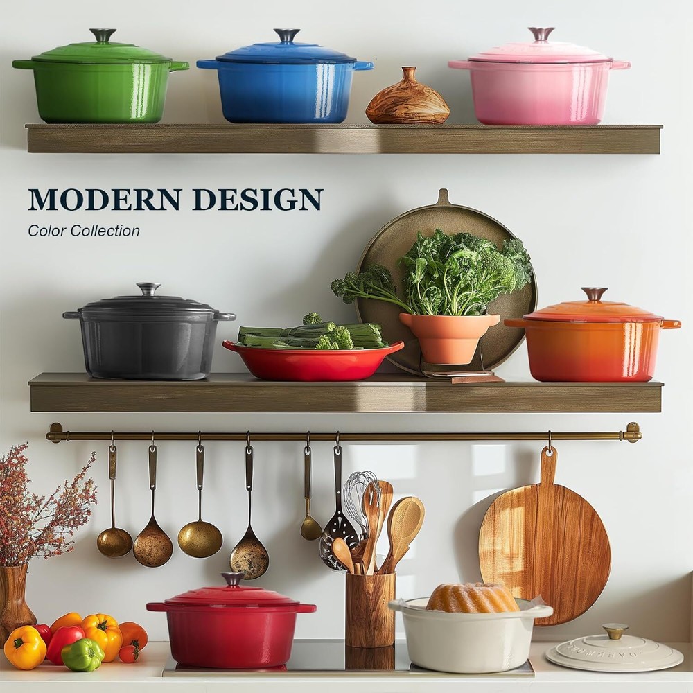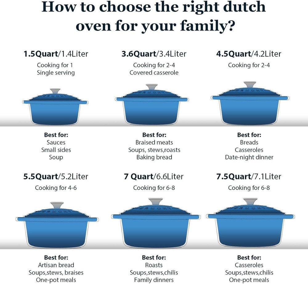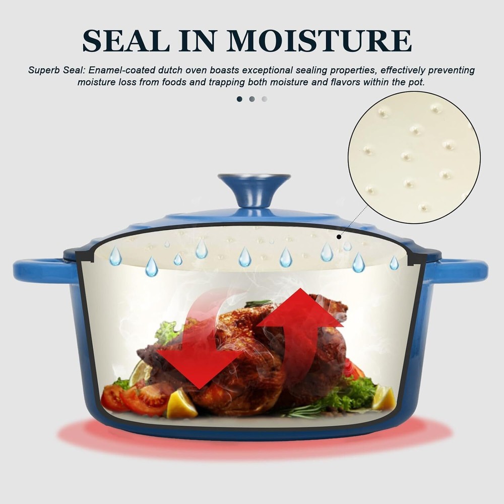 Overmont Enameled Cast Iron Dutch Oven - 4.5QT Pot with Lid Cookbook & Cotton Potholders - Heavy-Duty Cookware for Braising, Stews, Roasting, Bread Baking blue Item Description About this item Outstanding Heat Mastery: Crafted with precision, Overmont premium enamel cast iron ensures exceptional heat distribution and retention. Its solid integral molding guarantees unmatched durability, keeping your cooking experiences seamless. Perfectly Preserved Flavors: Say goodbye to dry and overcooked meals! With our innovative design, water vapor condenses evenly on the lid, preserving the ideal humidity and flavors. Unlike traditional pot covers where condensation runs down the sides, our lid keeps your dishes succulent. Versatile Culinary Wonder: From stewing and boiling to roasting and frying, this single cookware does it all! Discover endless culinary possibilities and simplify your kitchen with Overmont. Universal Compatibility: Our premium enamel Dutch oven is designed to shine on various stovetops, including gas, electric, ceramic, and even induction. Plus, it's oven safe up to 500℉, offering an exceptional range of cooking options. Effortless Cleaning & Safety First: The flat and smooth enamel surface not only delivers a superior cooking experience but also makes cleaning a breeze. Easily remove food residues with a gentle wipe from a soft sponge or cloth. Additionally, we've included a cotton heat-resistant cap, ensuring a comfortable grip and safeguarding you from burns when handling the pot's handles and lid. › See more product details Payment Fast and Free Shipping Shipping safe payment via eBay . Return 30 Day's returns