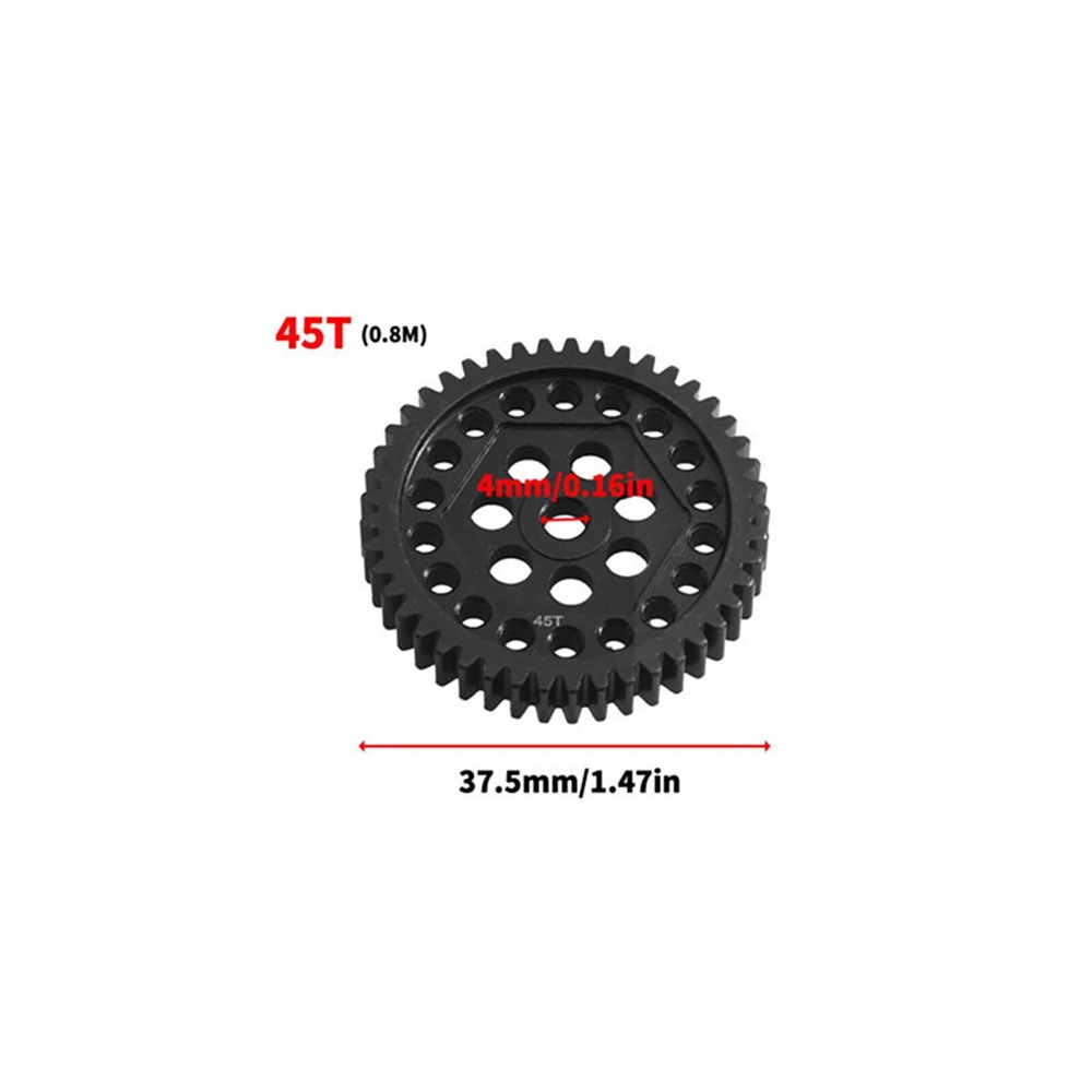NEW-00023 1 PC 45T Steel Spur Gear For Traxxas TRX4 TRX6 1/10 RC Car Crawler Repair Part PRODUCT DESCRIPTION Features: Made of high-quality steel structural steel material, wear-resistant, corrosion-resistant, and not easy to rust Compact and lightweight design exquisite workmanship and long service life Easy to install, replace the original one directly and fit the car perfectly It can help you repair your RC car and improve control performance. Nice upgrade part to modify your RC model car Specifications: Material: 45# Steel Quantity: 1Pc Color: Black Gear Size: 45T Suitable for TRAXXAS TRX-4 TRX-6 1/10 RC Crawler Car Package include: 1Pc Gear Note: The transmission is not included, FYI only. Shipping Contact Us Our products have been sent to the US warehouse. All items will be shipped via WINIT CORPORATION. In 2-5 working days, you will receive your items. Thank you and have a nice day. If you have any question about us or items, please contact us, we will reply it as soon as possible. Shipping Our products have been sent to the US warehouse. All items will be shipped via WINIT CORPORATION. In 2-5 working days, you will receive your items. Thank you and have a nice day. Contact Us If you have any question about us or items, please contact us, we will reply it as soon as possible. PaymentShippingReturn policyAbout usContact us Copyright © - Tongtool All rights reserved | Design:Tongtool