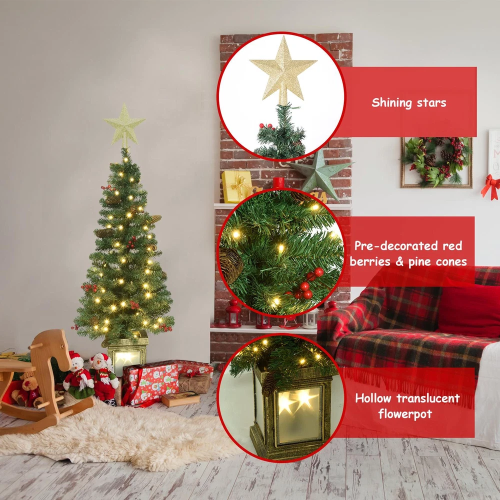 Store category Sign Up Now ! You may also like Product Description Bullet Points: Impress Your Guests: Our potted Christmas trees for front porch add a festive touch with their 105 lights (4ft) or 75 lights (4.5ft), pine cone berries, and 166-207 branch tips. Available in 2 sizes for a natural, full-bodied look, these trees are topped with stars for a complete holiday display. 8 Light Modes: Seamlessly transitions through 8 lighting patterns, from a gentle slow fade to an energetic chasing flash, ensuring your front porch is always dressed in holiday cheer. Christmas Elegance: Elevate your home's holiday charm with our Potted Christmas Trees for Front Porch. These stylish trees create a warm and inviting atmosphere at your doorstep, adding a Christmas atmosphere that's perfect for indoor or outdoor decoration. Sturdy and Safe: Crafted with metal hinges and PVC branches, this fake potted Christmas tree ensures a flame retardant and non-allergenic holiday season. Effortless Assembling: Achieve full trees for your front porch decor with ease! Fluff and shape the branches correctly for the lushest look, attach the base, and voila, a perfect festive centerpiece. Bring the festive cheer into your home with our Artificial Potted Christmas Tree! Topped and complete with stars, this tree twinkles and flashes adding a perfect Christmas decoration to your home. Made with sturdy materials, easily shape the tree correctly for the lushest, fullest look. Perfect for any space. Specification Material: Flame retardant PVC Battery box: Requires 3 AA batteries (not included) 4ft Height: about 121.92cm/48 inches Diameter: about 45cm/17.72 inches Number of Branch Tips: 166 Number of Light Beads: 75 Light String Pattern: 8 Patterns; IP44 waterproof Leaves Width: 6+5cm/2.36+1.97 inches Leaves Thickness: 0.12mm+0.1mm (Will not drop leaves, and will not be easily deformed during transportation) Intermediate Tube Diameter: about 1.6cm/0.63 inches Base Size: about 17.78cm/7 inches 13 Pine Cones, 13 Berries 4.5ft. Height: about 137.16cm/54 inches Diameter: about 50.8cm/20 inches Branch Tip: 207 Number of Light Beads: 105 Light String Pattern: 8 Patterns; IP44 waterproof Leaves Width: 6+5cm/2.36+1.97 inches Leaves Thickness: 0.12mm+0.1mm (Will not drop leaves, and will not be easily deformed during transportation) Intermediate Tube Diameter: about 1.6cm/0.63 inches Base Size: about 17.78cm/7 inches 15 Pine Cones, 15 Berries Pack List: 1 x Artificial Christmas Tree 1 x Base 1 x String Light Note: Due to different lighting and screen settings, the item color may be slightly different from the picture. Due to different manual measurements, please allow a 1-2cm difference in size. Payment Delivery details Terms of sales About us Feedback & DSRs Payment Before you palce an order, please kindly make sure that you have a paypal account. We accept PAYPAL payment only. Payment should be completed within 2 days after auction closed, or unpaid dispute will be filed for an closing auction. An unpaid case will be filled after 4 days. Delivery details We ship to your eBay address. Each package will be shipped to US by UPS Regular Parcel with tracking number. Please check your shipping address carefully before checkout, it can't be changed if order completed. All items will be shipped within 1-2 business day upon receipt of payment.Orders placed on weekend will be shipped within 3 days. If you do not receive your item in 7-10 business days.please contact us immediately for further assistance. We will be responsible for any damages or losses incurred in the shipping process. About us We maintain high standards of excellence FIVE STAR and strive for 100% customer satisfaction! Positive Feedback is very important to us. We hope that you contact us immediately Before you give us neutral or negative feedback, so that we can satisfactorily address your concerns. We promise to offer the lowest price and high quality produce. Our working time: From Monday to Friday(9:30 am to 18:00pm), we don't working on holidays ,hope you can understand and know that , thank you. Please always talk to us via ebay Message. We appreciate your business and look forward to growing our e-Bay sales with satisfied customers. Feedback Contact us If you have any questions, please feel free to contact with us by ebay Message during our business hours ( 9:30a.m. to 5:30 p.m.), or email us through eBay, we will try our best to help you to resolve it. For any presale or after-sale questions,please do feel free to email us! Due to the time difference, each email will be replied within 1 working day,and weekend will be delayed a bit. Feedback