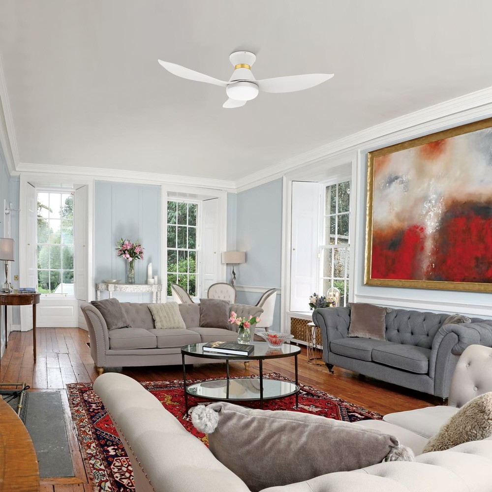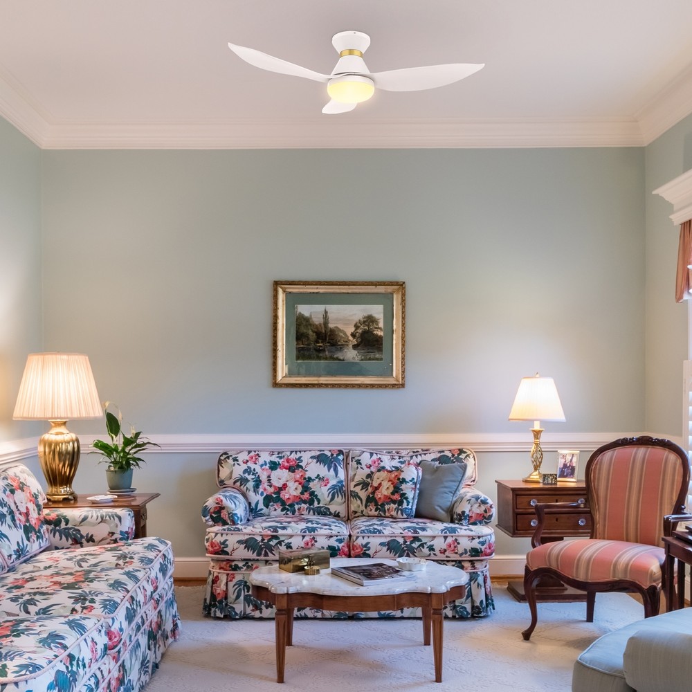 Step into sophistication with our Chamomile Smart Ceiling Fana charming blend of simplicity and elegance in a refined white or black finish, accented by a stylish golden ring. Ideal for snug spaces with its 3 blades and 45-inch sweep, it's a chic addition to smaller bedrooms. Crafted from durable ABS material, it exudes a playful uniqueness. Tailor your comfort with adjustable 4000k LED light, remote, Wi-Fi apps, and Voice control compatibility (compatible with Amazon Alexa and Google Home Assistant).Key attributes Smart Compatibility: Works with Wi-Fi apps and Voice control via Google Assistant, Amazon Alexa, and Siri Shortcut. Complete Remote Control: Adjust fan speed, light (on/off/dimming), and reverse function effortlessly. Whisper-Quiet Efficiency: Features incredibly efficient Free Shipping Over $49.99* Details Chamomile 45-inch Indoor Smart Ceiling Fan, Dimmable LED Light Kit and Remote, Product Description: Step into sophistication with our Chamomile Smart Ceiling Fana charming blend of simplicity and elegance in a refined white or black finish, accented by a stylish golden ring. Ideal for snug spaces with its 3 blades and 45-inch sweep, it's a chic addition to smaller bedrooms. Crafted from durable ABS material, it exudes a playful uniqueness. Tailor your comfort with adjustable 4000k LED light, remote, Wi-Fi apps, and Voice control compatibility (compatible with Amazon Alexa and Google Home Assistant). Key attributes Smart Compatibility Works with Wi-Fi apps and Voice control via Google Assistant, Amazon Alexa, and Siri Shortcut. Complete Remote Control Adjust fan speed, light (on/off/dimming), and reverse function effortlessly. Whisper-Quiet Efficiency: Features incredibly efficient and completely silent DC motors for a peaceful environment. Seasonal Adaptability 10-speed reversible motor easily switches between summer downdraft and winter updraft mode. Integrated LED Lighting Offers warm and daylight options, reducing energy usage and extending lifespan. Standard Mounting Equipped with a standard mounting system for convenience. Hassle-Free Installation: Simple setup facilitated by step-by-step instructions for ease. Certified Safety ETL certification ensures product safety and reliability. Indoor Use Only: Designed specifically for indoor use for optimal performance.