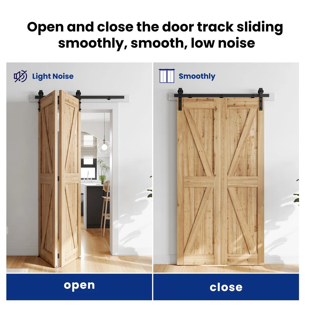 This bifold barn door hardware kit is fantastic! The carbon steel construction feels sturdy and durable, while the waterproof and corrosion-resistant finish ensures long-lasting use. The nylon rollers glide smoothly and quietly, making operation effortless. Installation was a breeze thanks to the well-organized packaging with clear graphics and helpful instructions. The customer service team is responsive and ready to assist if needed—no need to hire a carpenter! Everything you need comes in the package, making it a great value for the quality. Highly recommend for a stylish and functional upgrade!